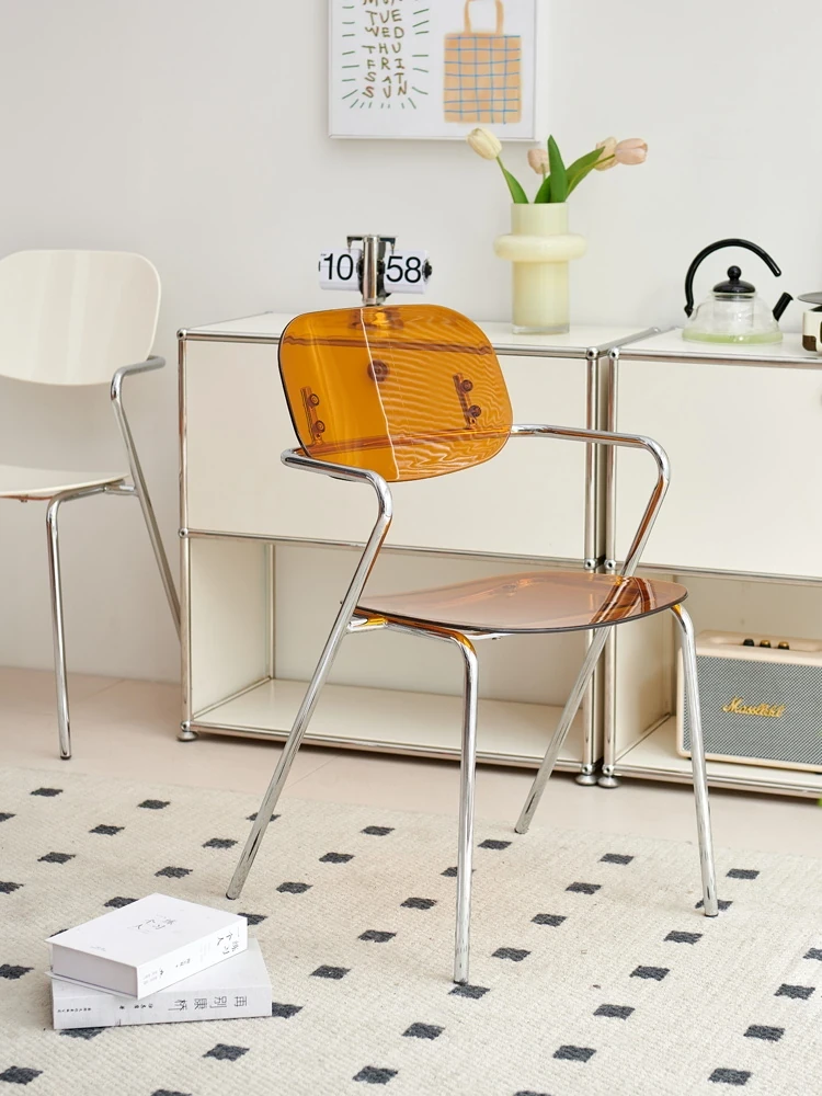 エイセンラント透明ダイニングチェア|北欧スタイルのアクリル製クリエイティブアームチェア|デザイナーセイバンチェア|おしゃれで快適な書斎用背もたれ付きチェア【お家での快適なひとときを】