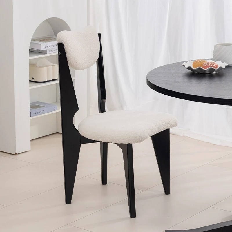 中古のラムファー実木製ブラックダイニングチェア|レトロな寝室やメイクアップに最適!クリーム色の背もたれで、快適さとスタイルを両立。おしゃれな空間を演出するアイテムです!