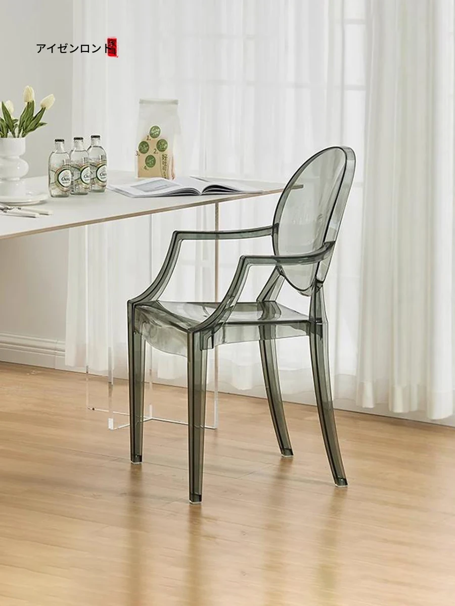 アイセンランテ アクリルクリスタルダイニングチェア 北欧風 透明アームレスト 背もたれ付き 化粧用 小型スペースに最適 人気のゴーストチェア