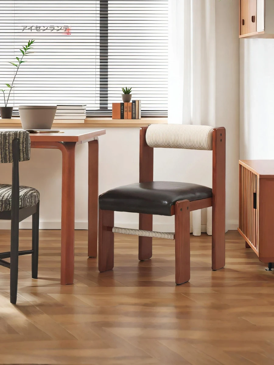 アイセンラント中古無垢材ダイニングチェア|家庭用デザイナーによるラグジュアリーなレトロ和風スタイル|背もたれ付きで快適さと高級感を提供!
