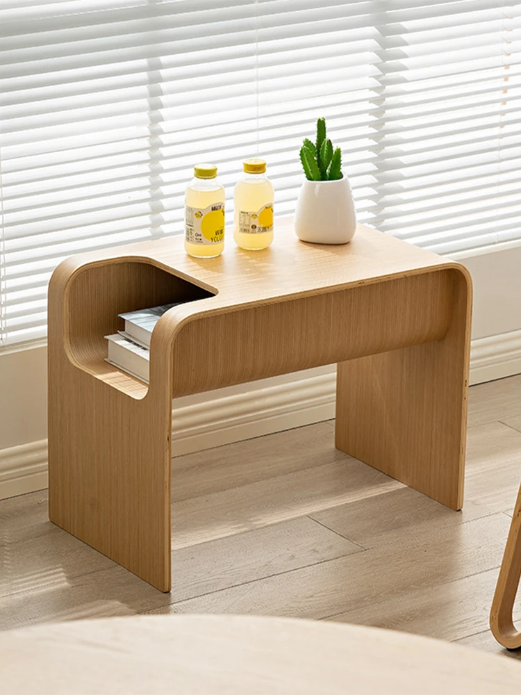 北欧スタイルの無垢材ソファサイドテーブル|デンマークデザイン・雑誌スタンド付き|侘寂風モダンINSスタイルC型小テーブル|おしゃれなリビング空間にピッタリ!