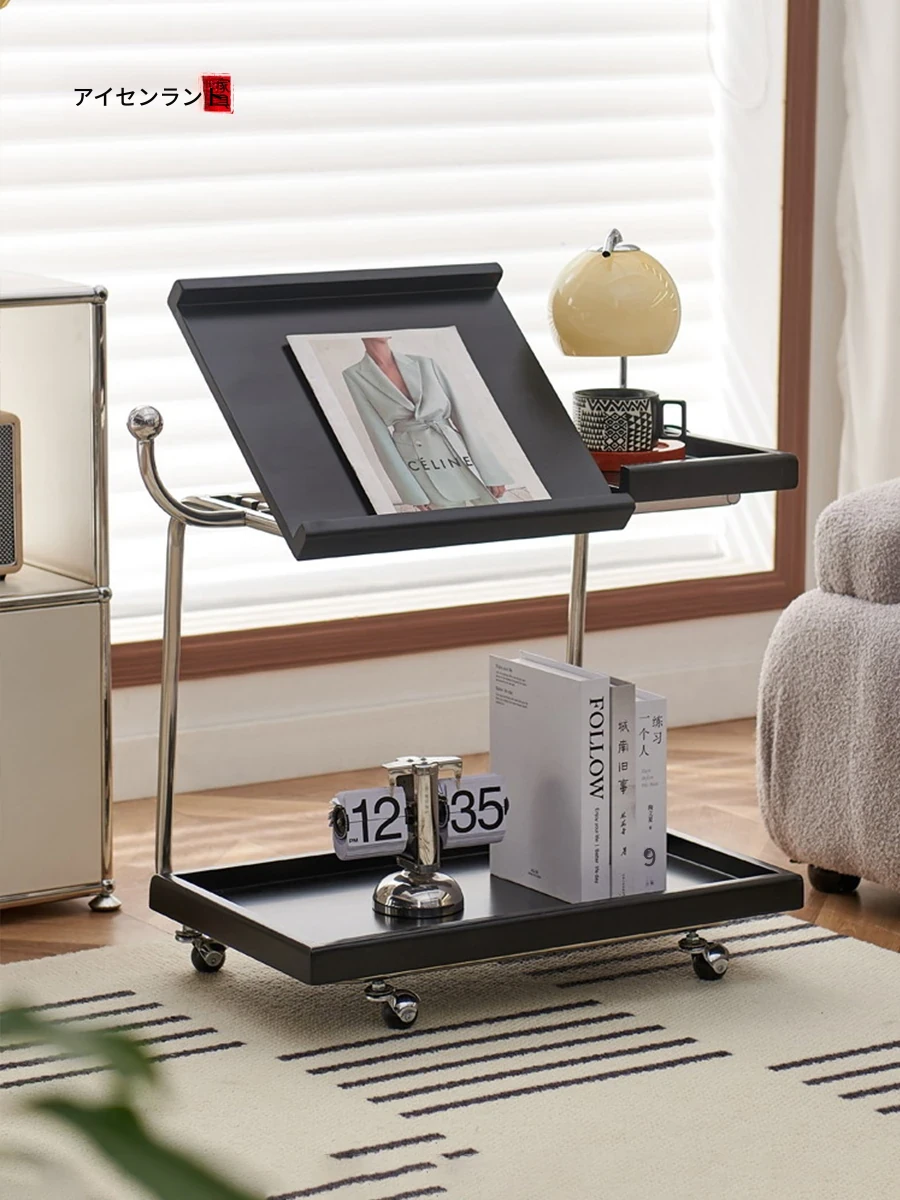中古風の移動式サイドテーブル - モダンシンプルデザインのリビング用おしゃれなティーテーブル!お菓子や小物置きにも便利なカート型ベッドサイドテーブル。おしゃれで使い勝手抜群の一品です!