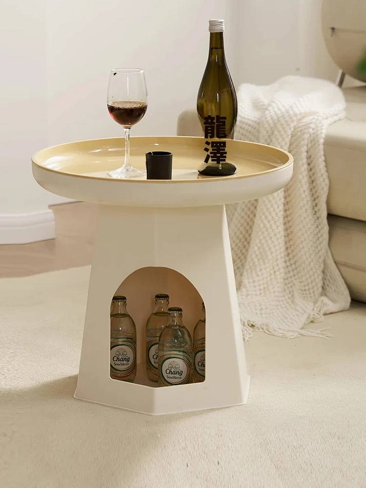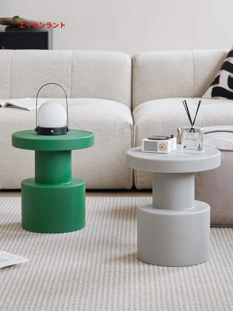 北欧スタイルのシンプルでモダンなリビング用ソファテーブル|創造的なプラスチック製の円形サイドテーブル|おしゃれなデザインの角テーブルで、居心地の良い空間を演出!