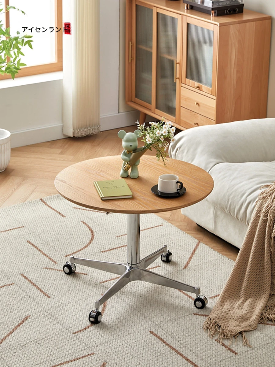 中古風の昇降式円テーブル|北欧シンプルモダンのデザイン|小型住宅にも最適な丸型コーヒーテーブル|ソファ兼用|移動可能なコンパクトテーブル!あなたの空間をおしゃれに演出します!