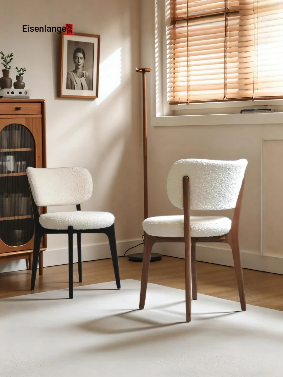 Aisenlong French Vintage Dining Chair - Luxurious Lambswool Upholstered Backrest for Home Use, Comfortable Solid Wood Design Perfect for Hotels and Elegant Dining Spaces.