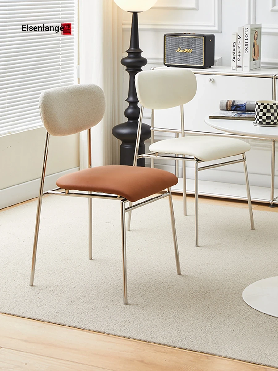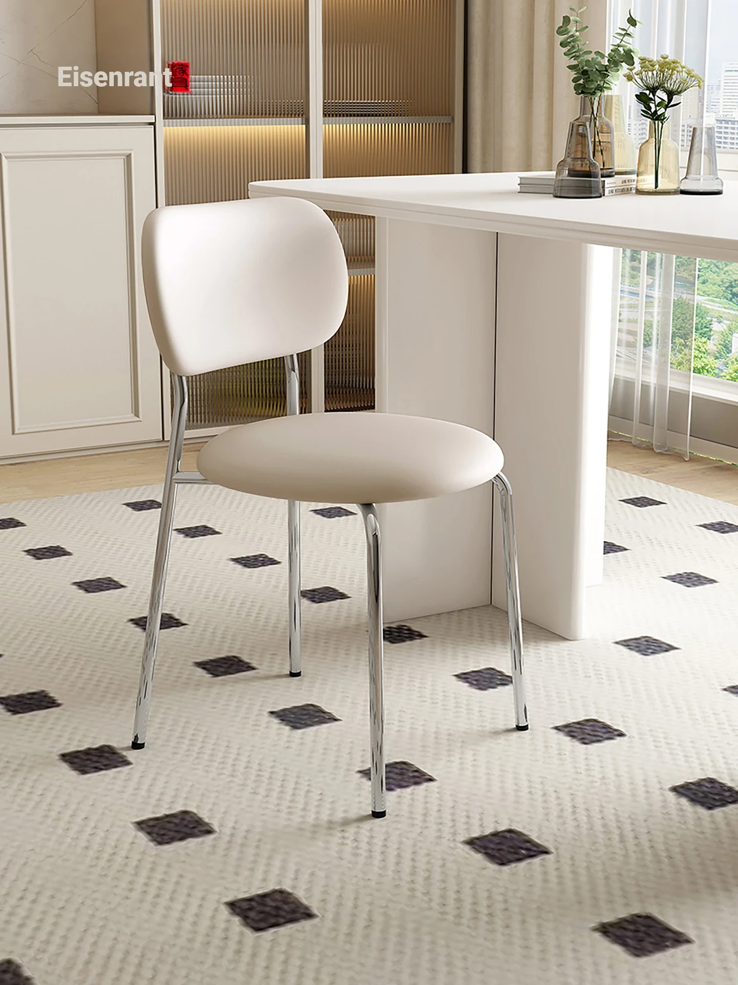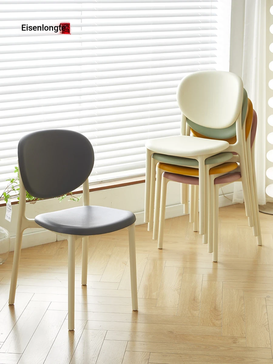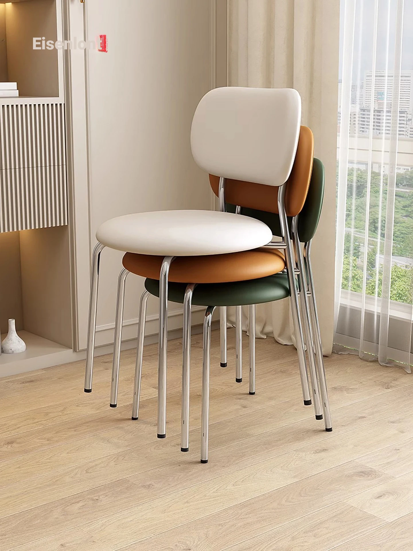 Eisenlangte Creamy Wind Dining Chair - Modern Minimalist Stackable Leather Stool with Backrest for Small Spaces, Soft-Padded Dining Chair for Home Use