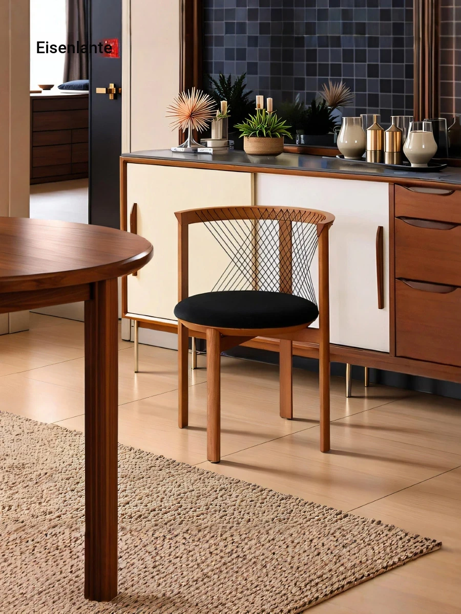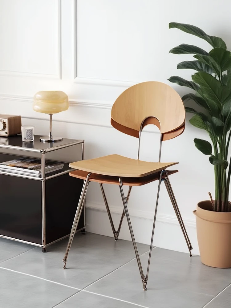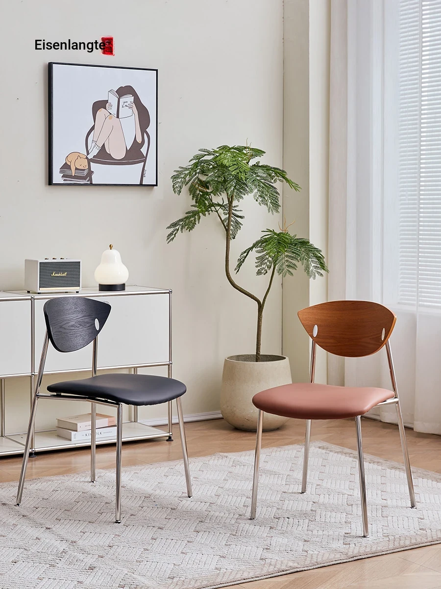 Eisenlong Nordic Vintage Dining Chair - Solid Wood Backrest for Home Use, Designer Stainless Steel Light Luxury Dining Table and Chair Set, Perfect for Cafés and Modern Interiors