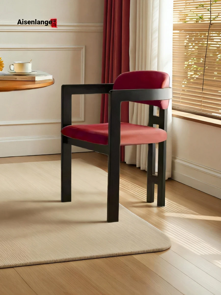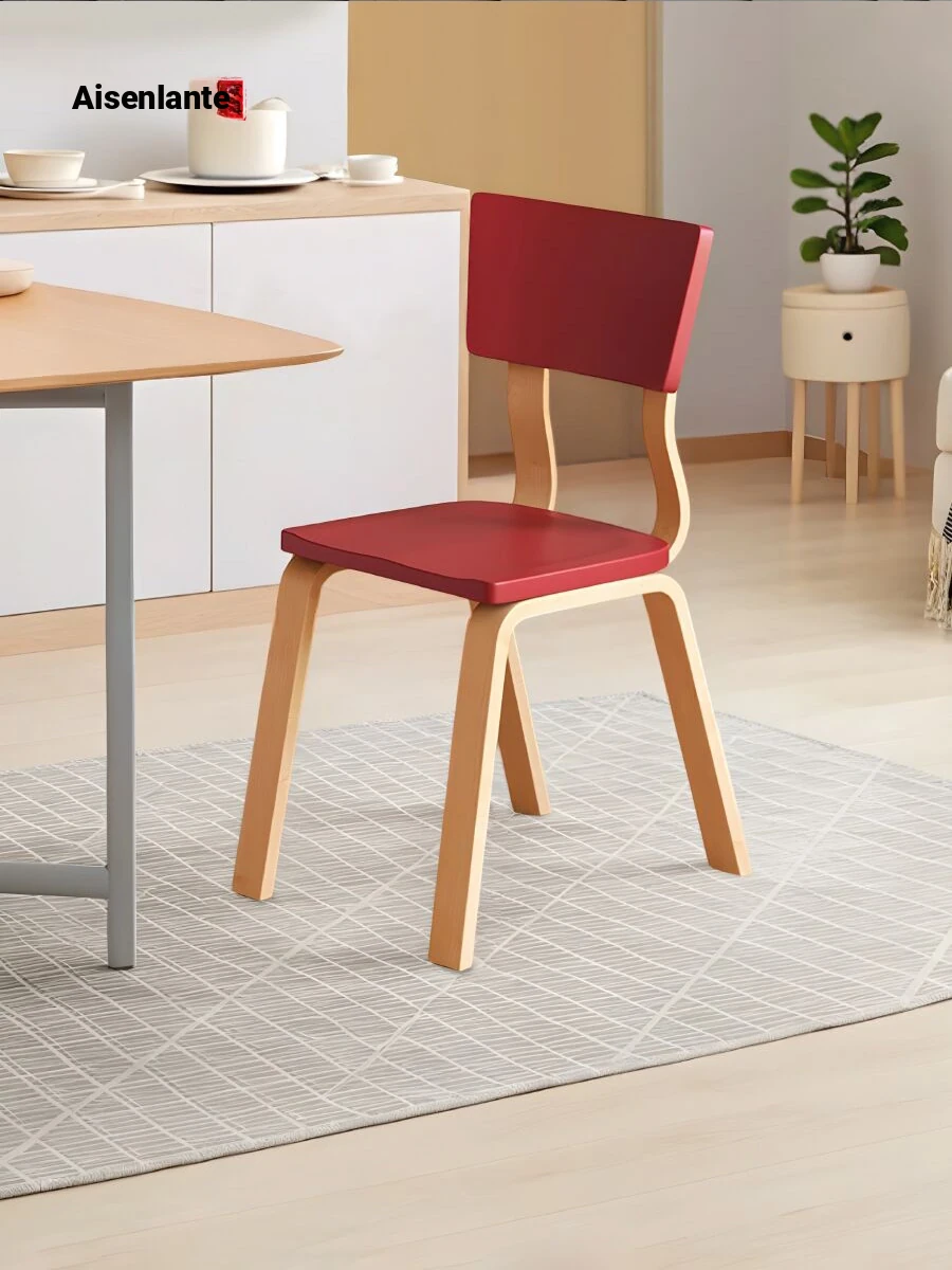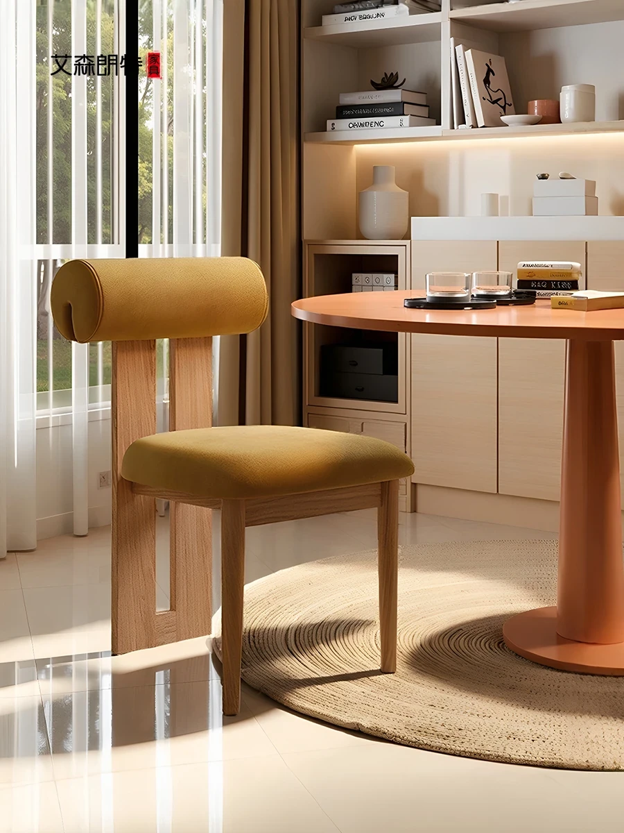 Aisentrant Vintage Solid Wood Dining Chair - Stylish Designer Dopamine Color Desk with Backrest for Home and Milk Tea Shop - Perfect for Cozy Dining Spaces