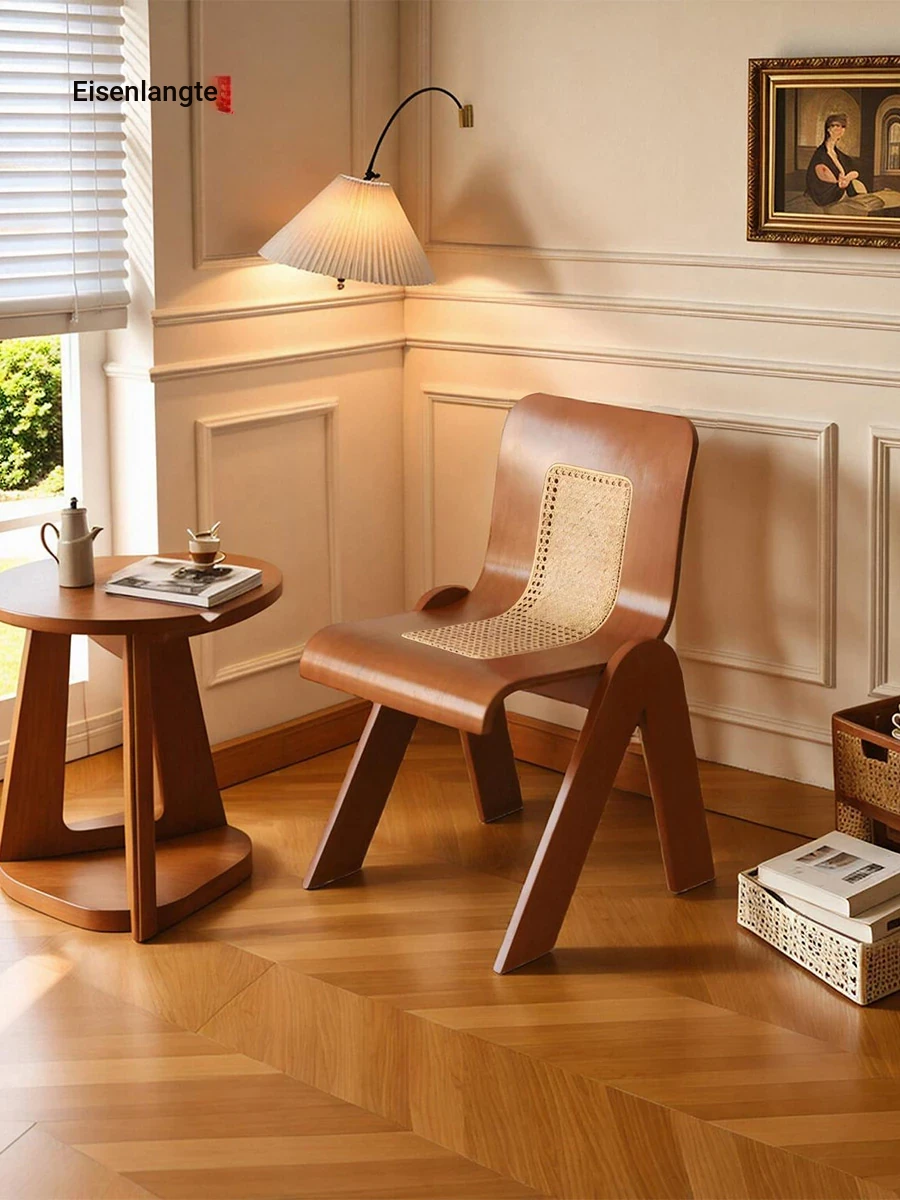 Aisenlange Solid Wood Rattan Dining Chair - French Vintage Wabi-Sabi Style Retro Desk Chair with Backrest - Perfect for Home and Designer Spaces