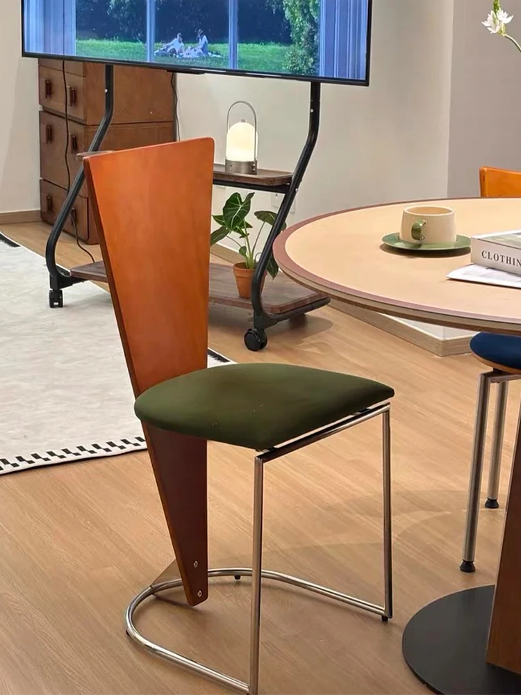 Vintage-Inspired Dining Chair for Home - Bauhaus Style, Ideal for Small Spaces, Trendy High-End Feel, Perfect for Study or Café, Soft Upholstered Backrest Chair