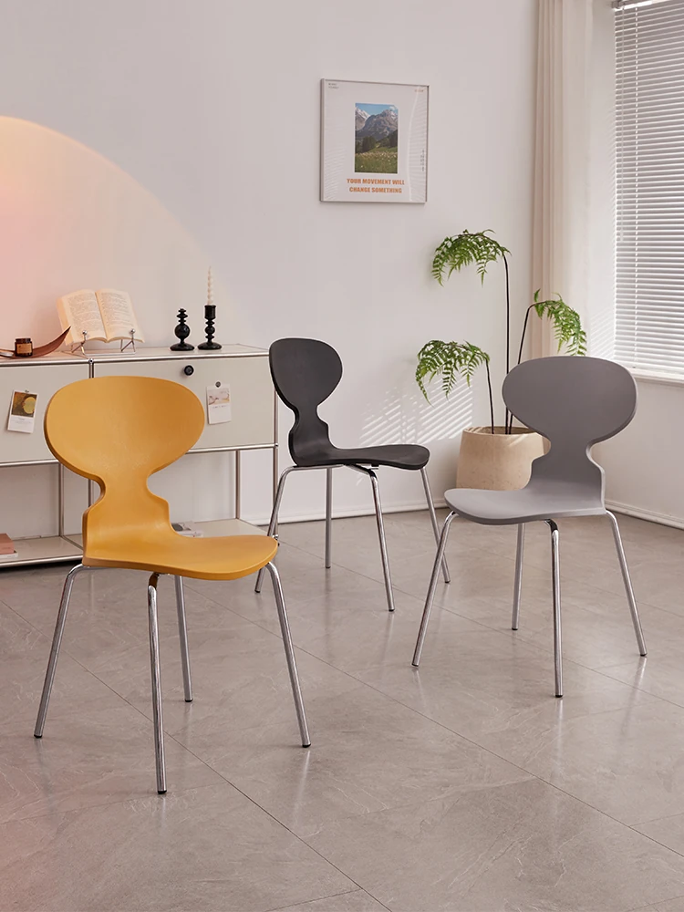 Scandinavian Design Stackable Dining Chair - Modern Minimalist Plastic Backrest Stool, Perfect for Home and Makeup Use, Stylish Ant Chair for Dining Tables