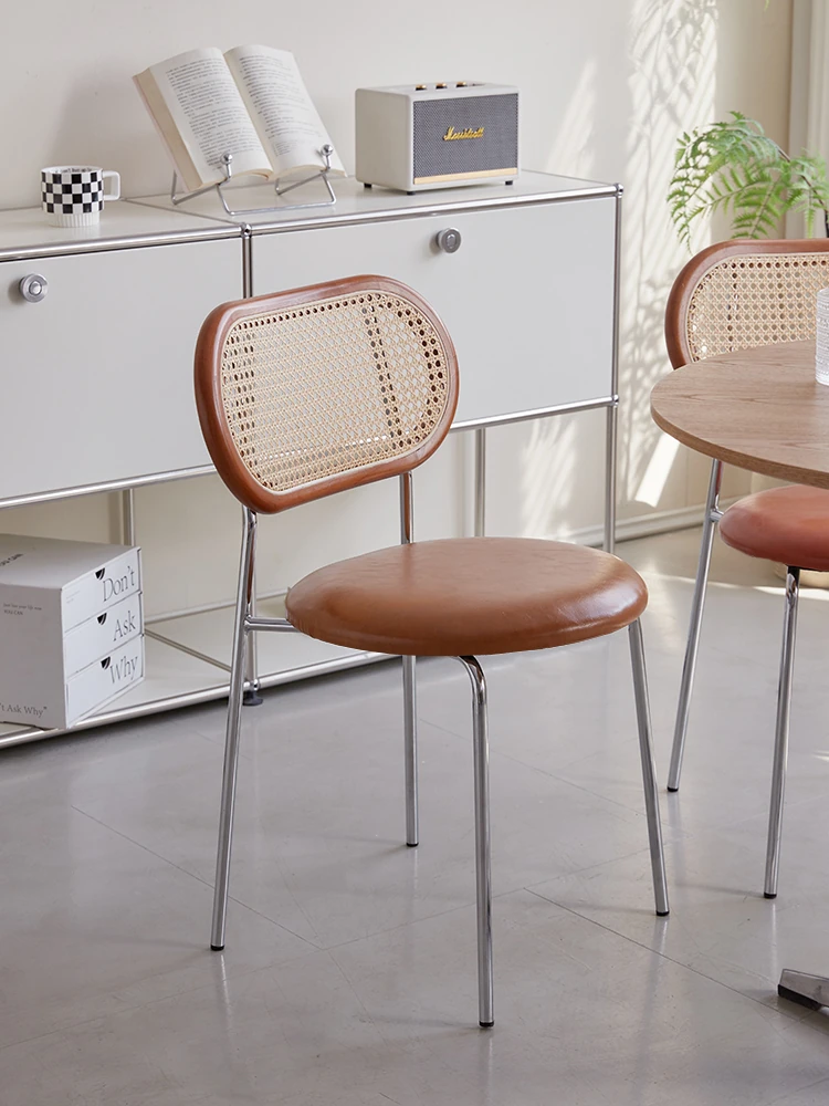 Nordic Light Luxury Dining Chair - Vintage-Inspired Rattan and Contemporary Design for Home, Perfect for Stylish Dining Spaces