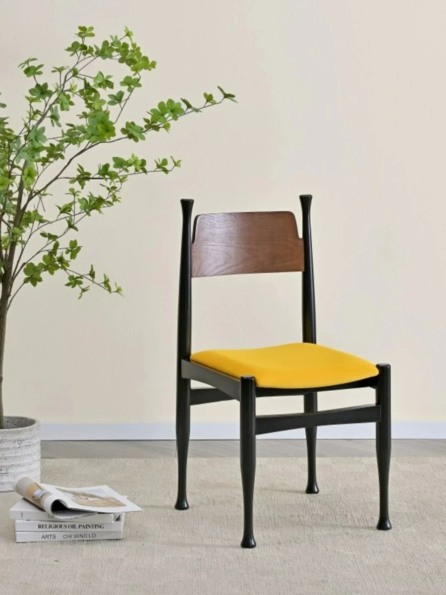 Scandinavian Vintage Solid Wood Chair - French Luxury Retro Dining Chair, Designer Living Room Accent with Backrest for Home Decor