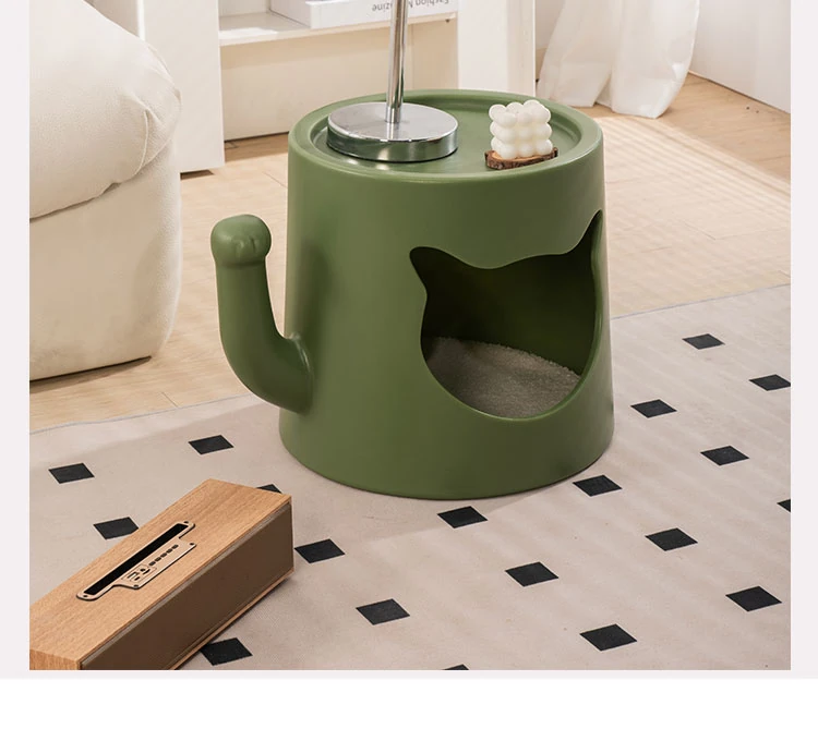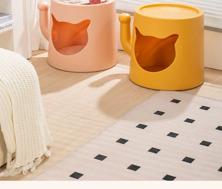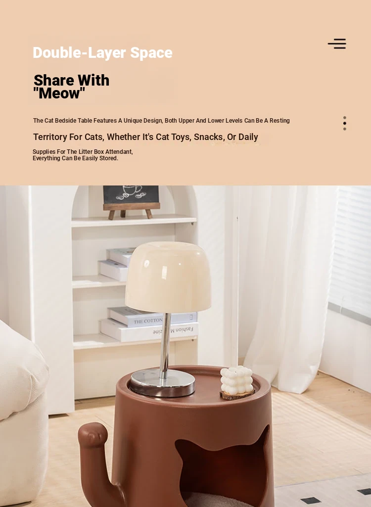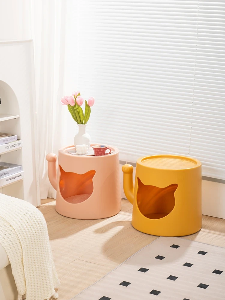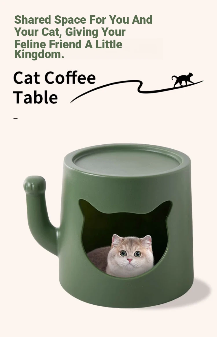 Creamy Cat Bed and Coffee Table Combo - Stylish Shared Space for Pets & Owners - Lucky Cat Design for Home Use - Minimalist Shoe Bench for Bedroom & Entrance