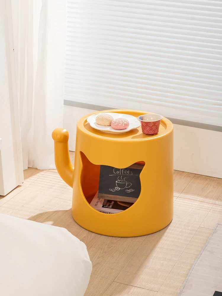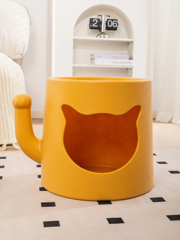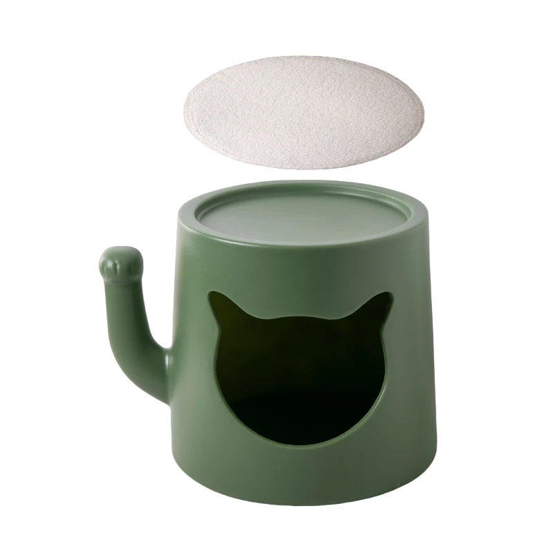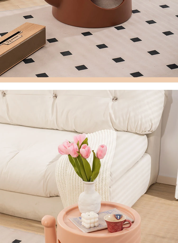 Creamy Cat Bed and Coffee Table Combo - Stylish Shared Space for Pets & Owners - Lucky Cat Design for Home Use - Minimalist Shoe Bench for Bedroom & Entrance