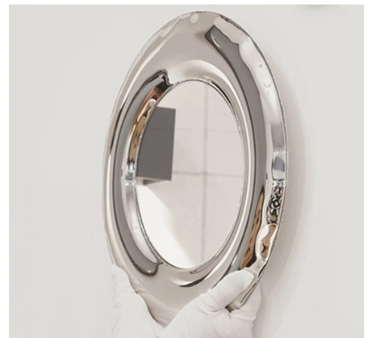 Stylish Round Stainless Steel Makeup Mirror - Desktop & Wall Hanging Art Decor for Chic Interiors
