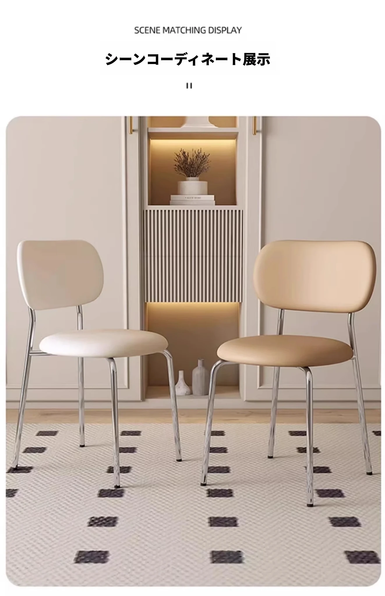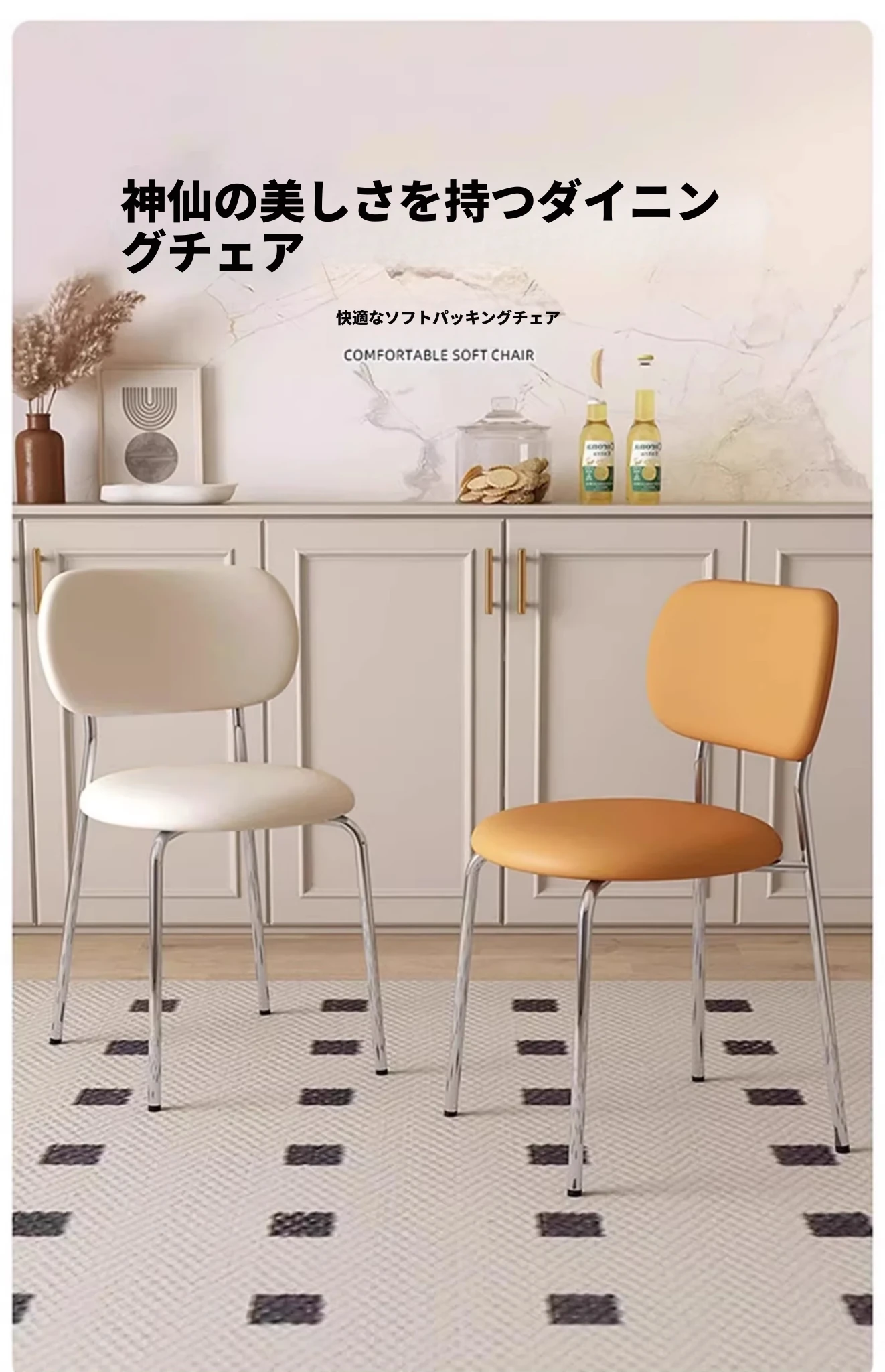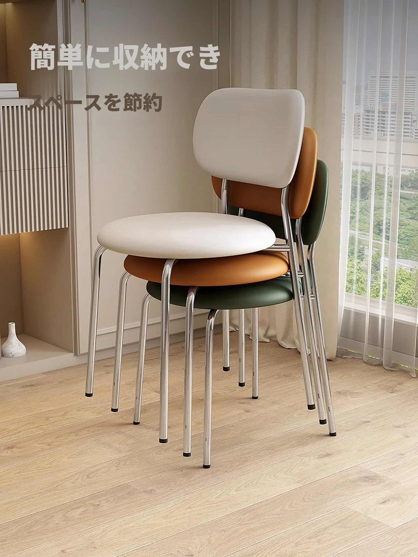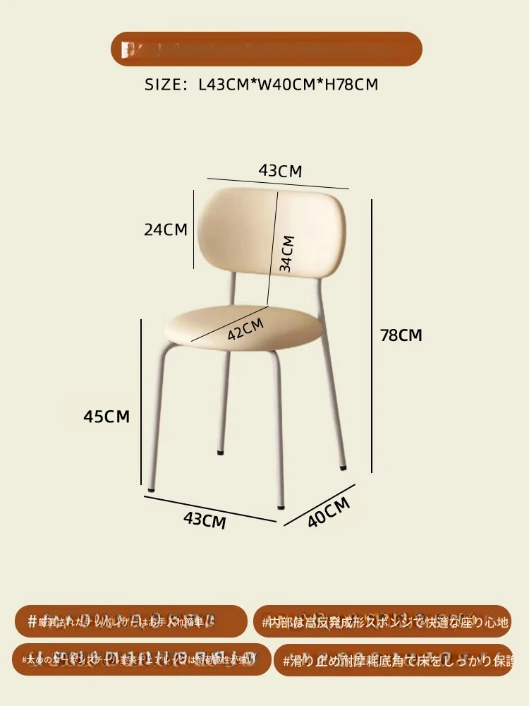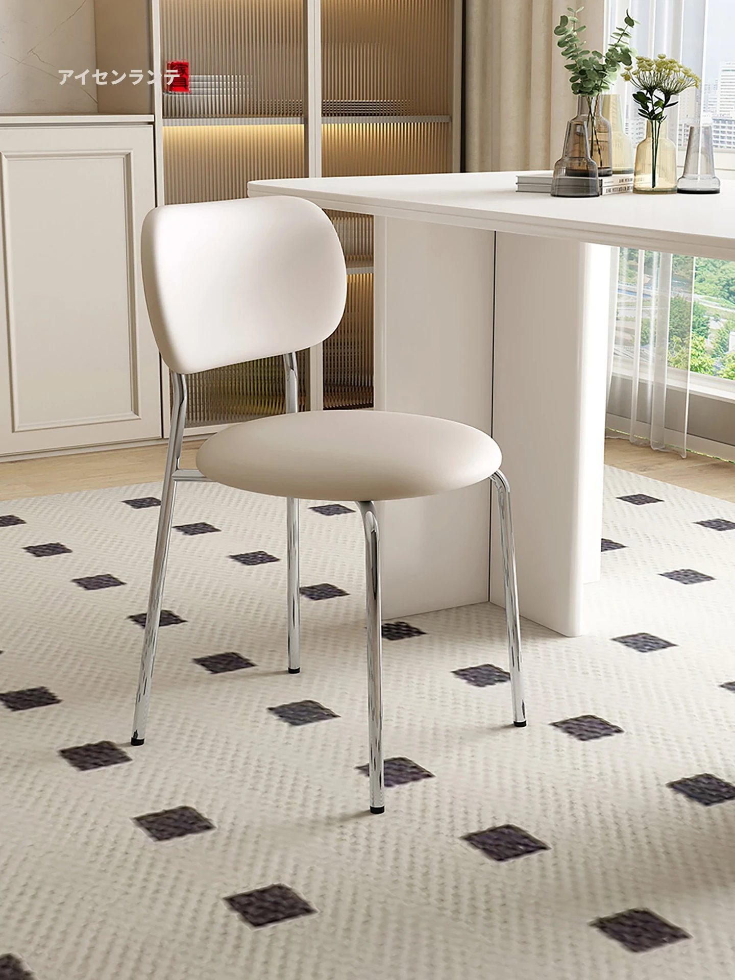アイセンラント北欧スタイルのラグジュアリーなダイニングチェア|家庭用クリームカラーの背もたれ付きスツール|デザイナーズ小型アパート向け|スタッキング可能なダイニングチェア