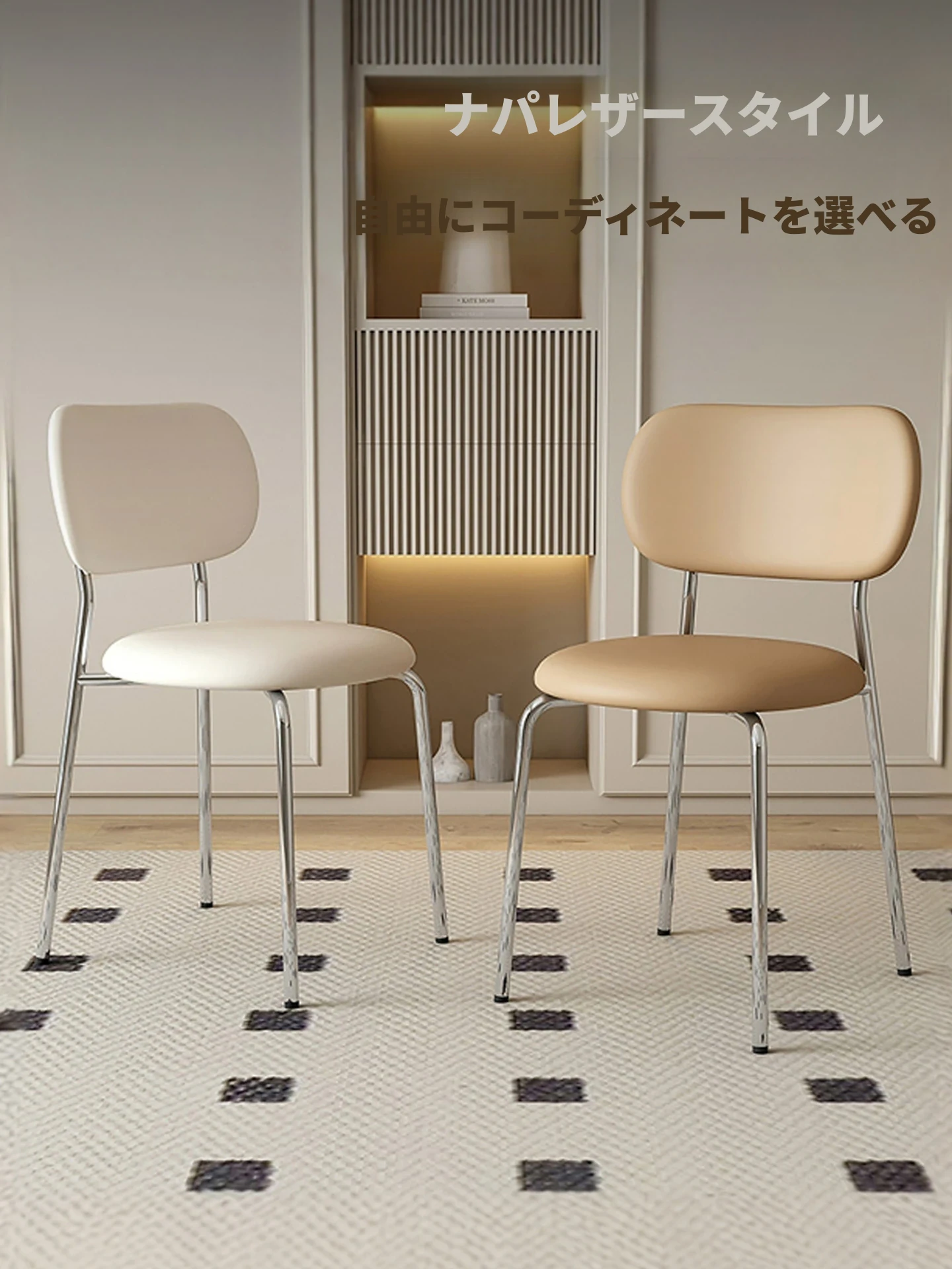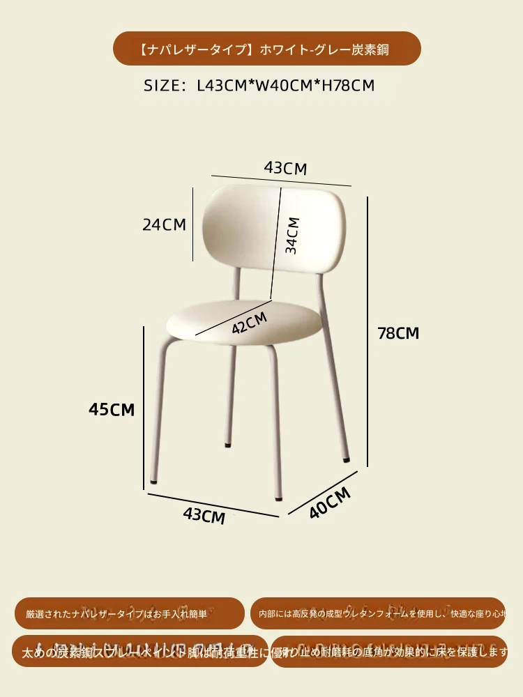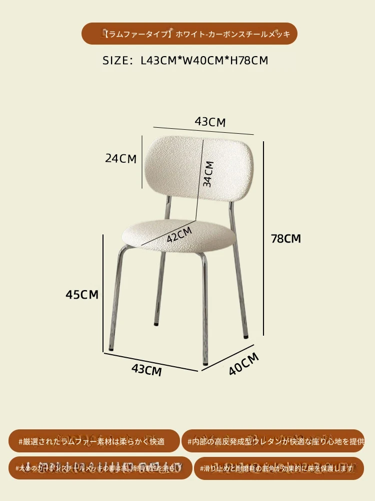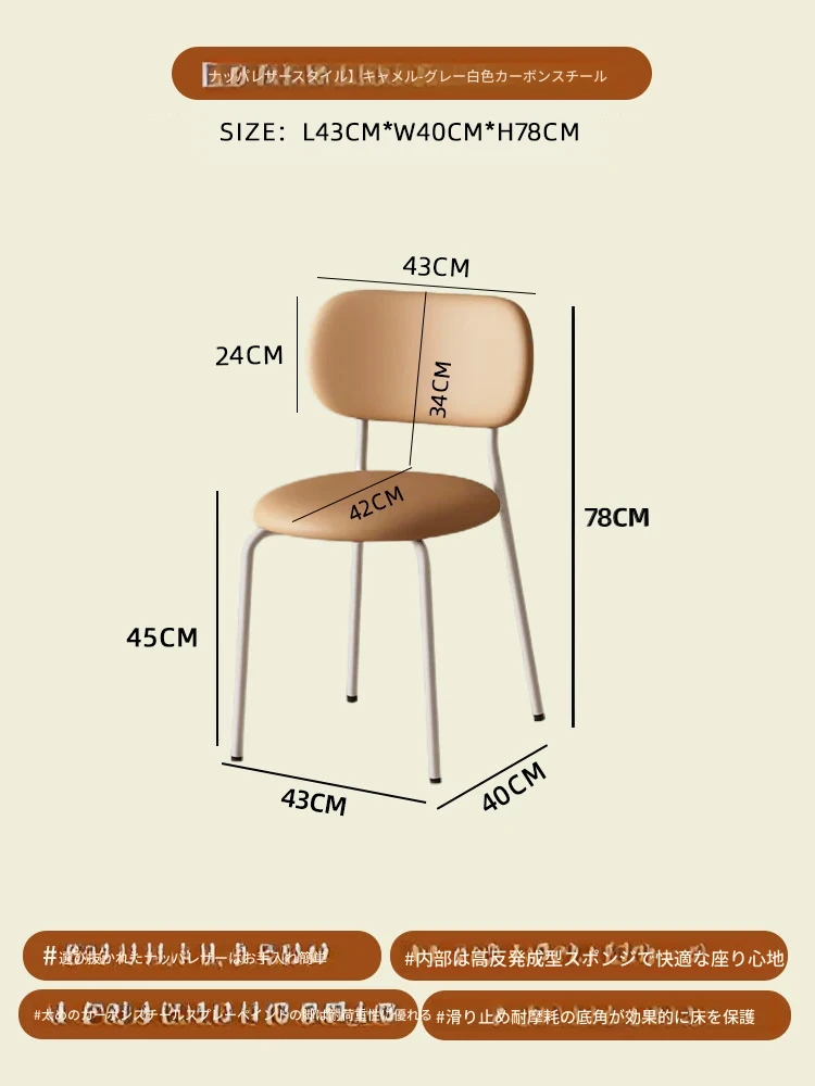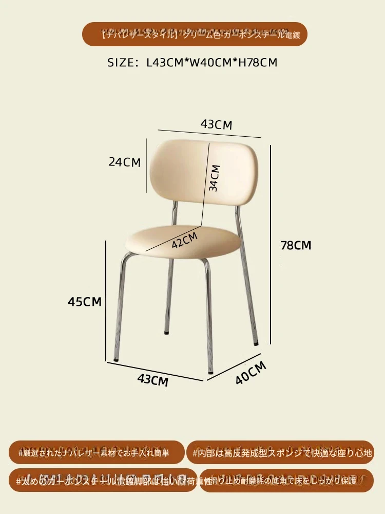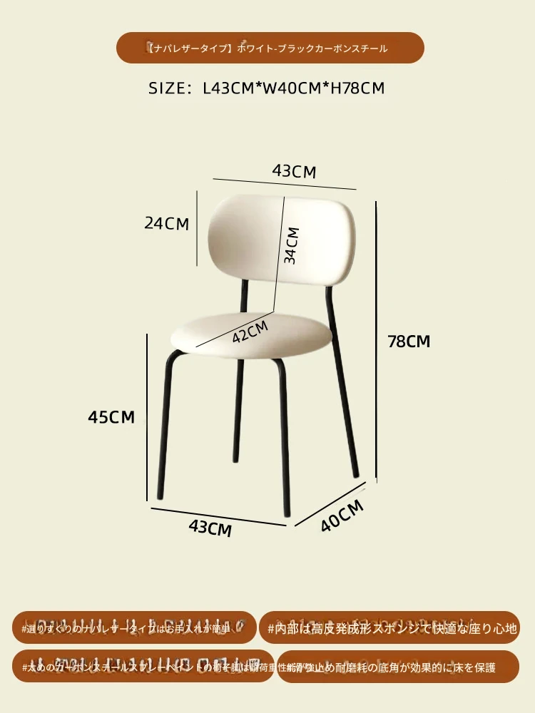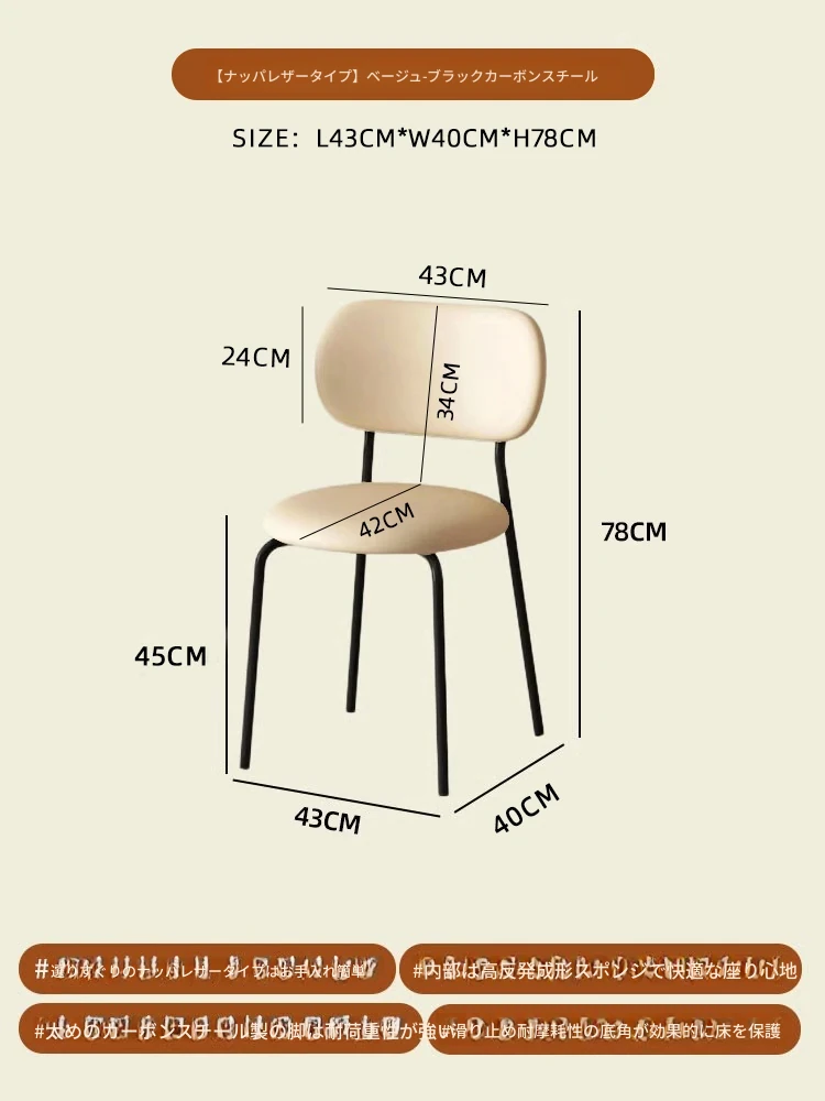 アイセンラント北欧スタイルのラグジュアリーなダイニングチェア|家庭用クリームカラーの背もたれ付きスツール|デザイナーズ小型アパート向け|スタッキング可能なダイニングチェア