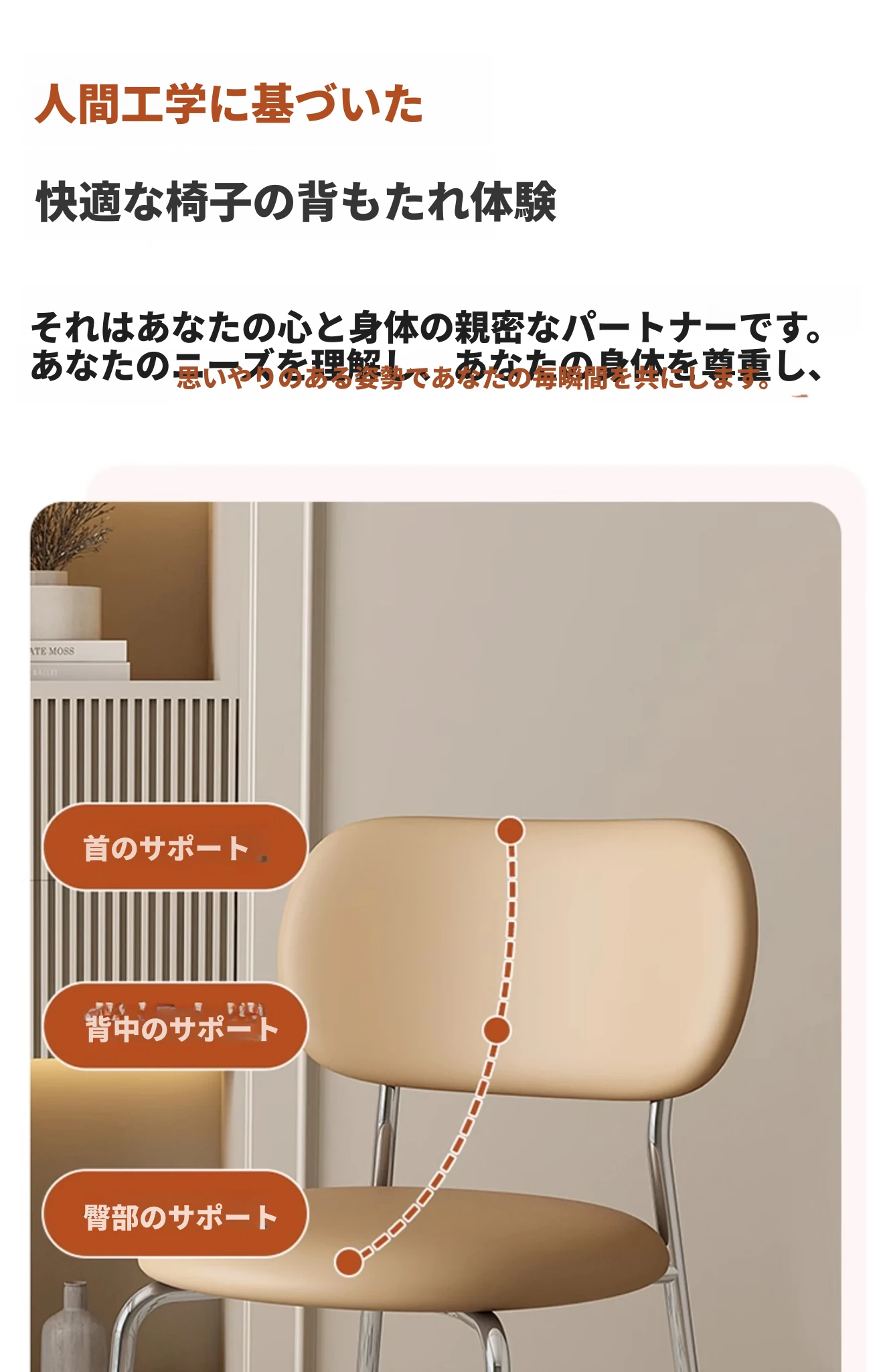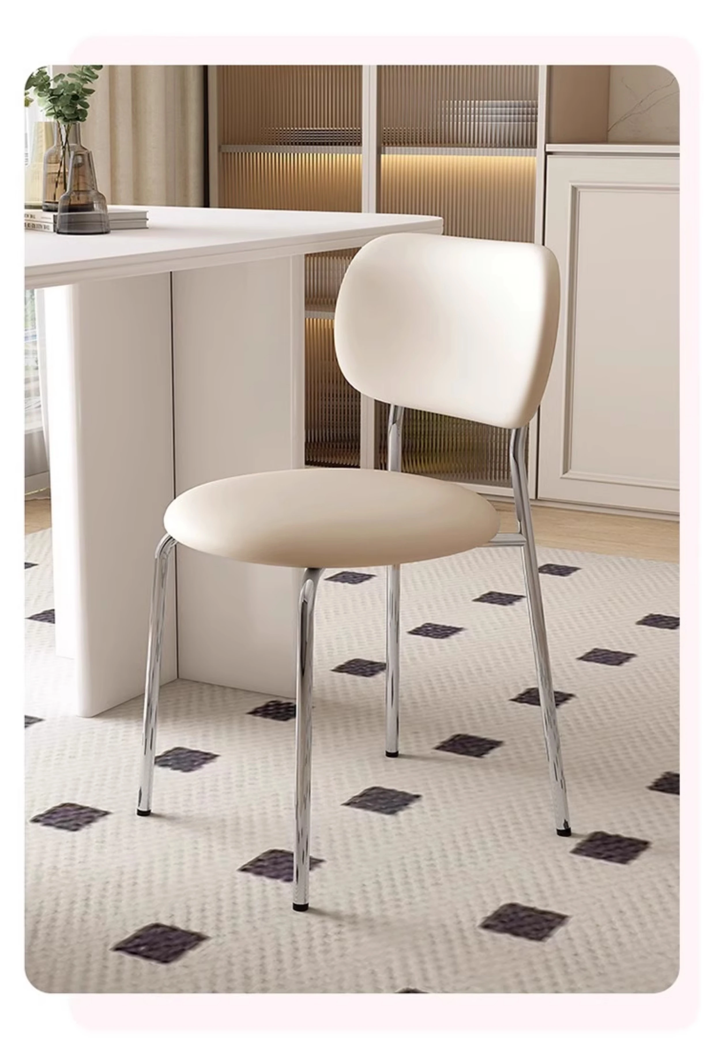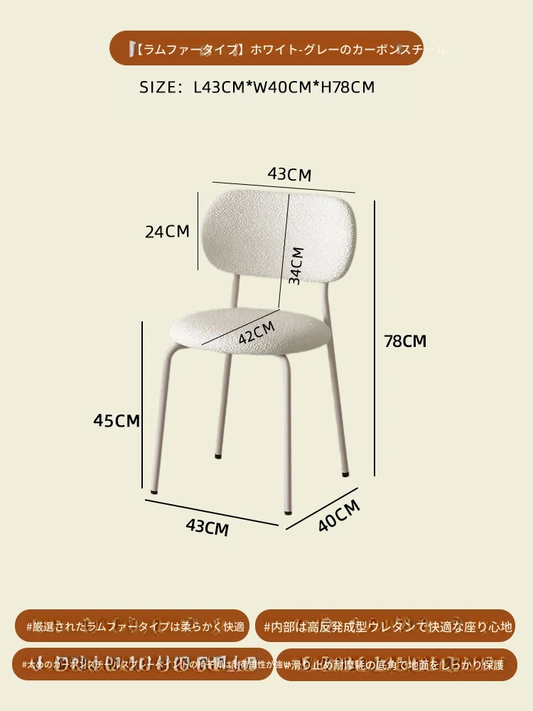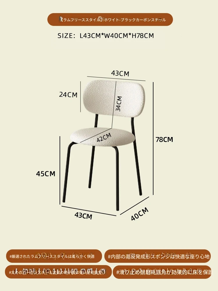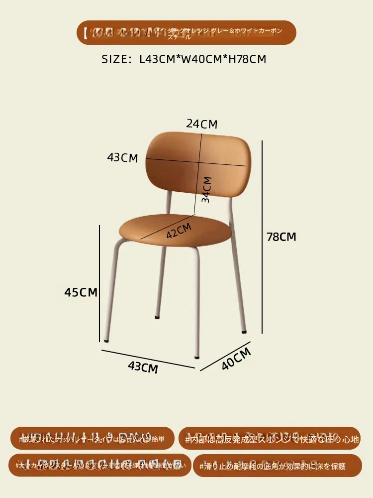 アイセンラント北欧スタイルのラグジュアリーなダイニングチェア|家庭用クリームカラーの背もたれ付きスツール|デザイナーズ小型アパート向け|スタッキング可能なダイニングチェア