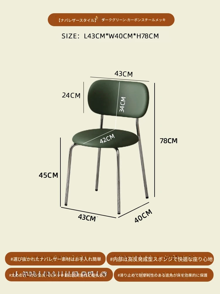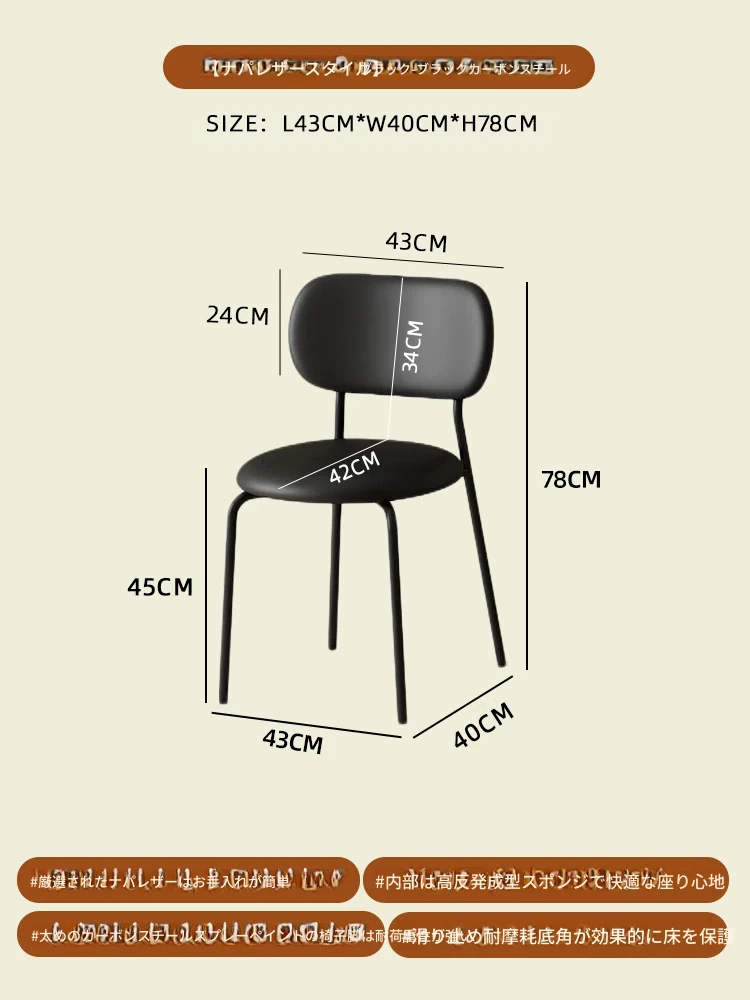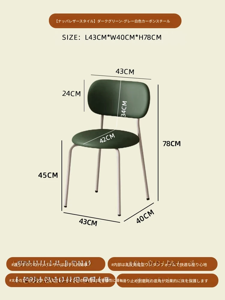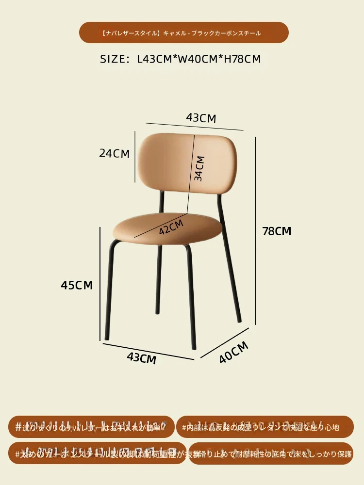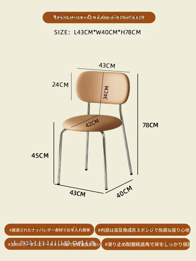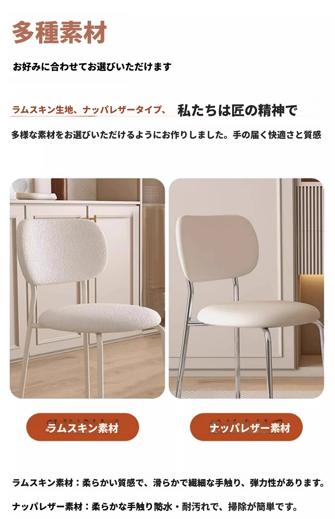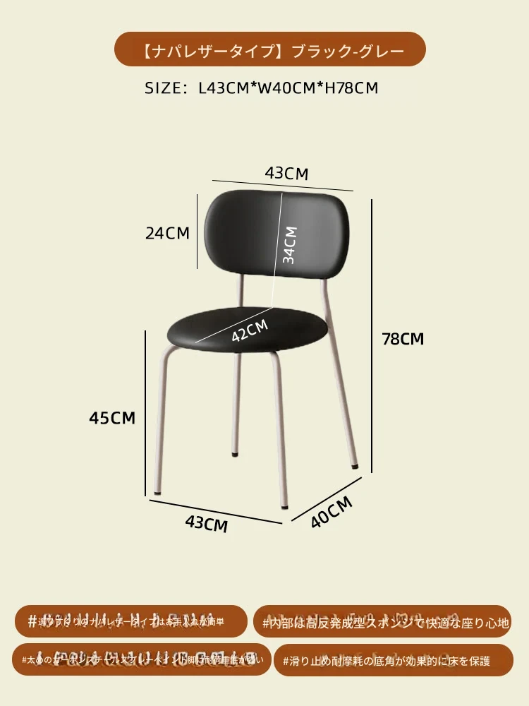アイセンラント北欧スタイルのラグジュアリーなダイニングチェア|家庭用クリームカラーの背もたれ付きスツール|デザイナーズ小型アパート向け|スタッキング可能なダイニングチェア