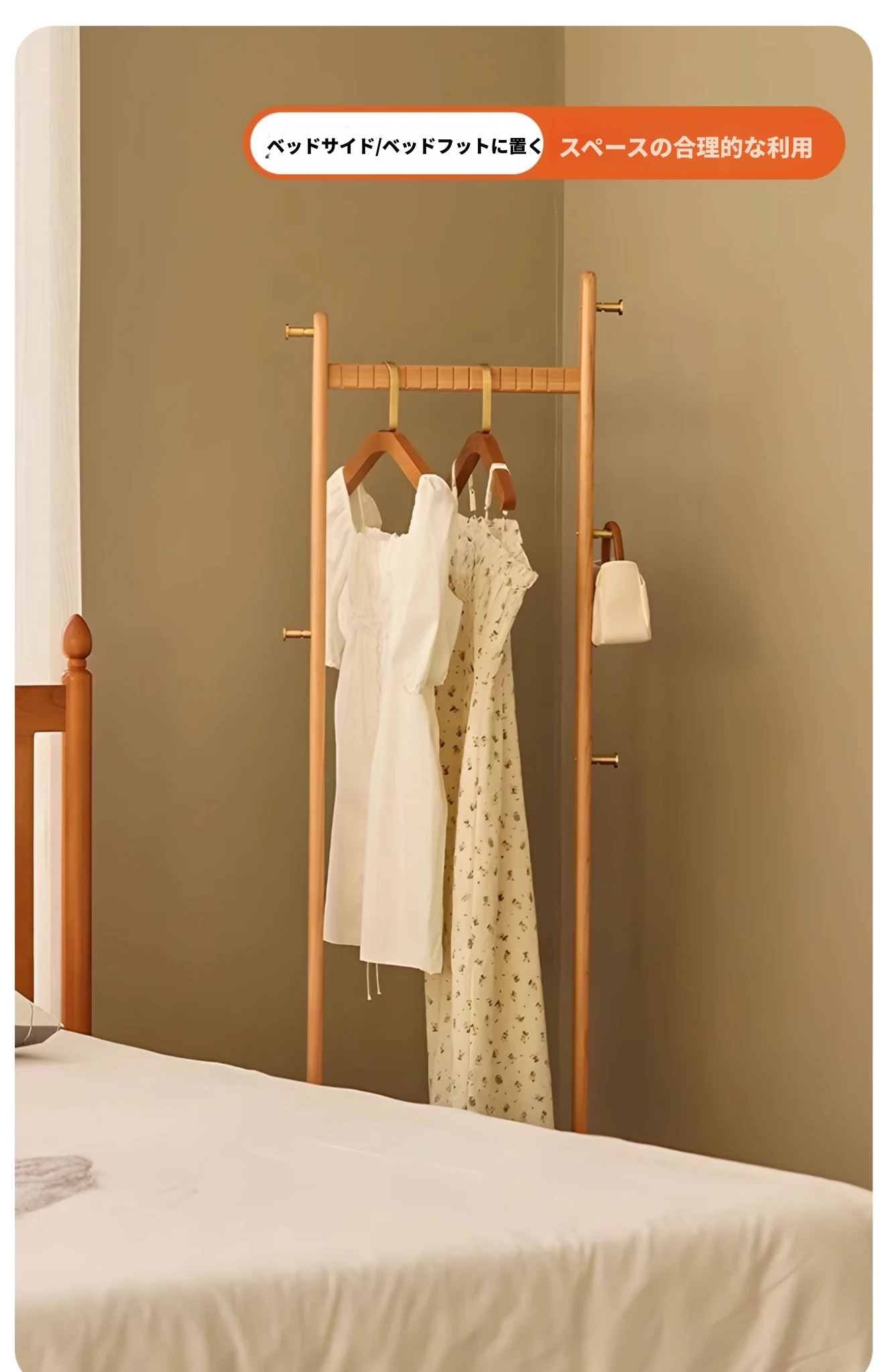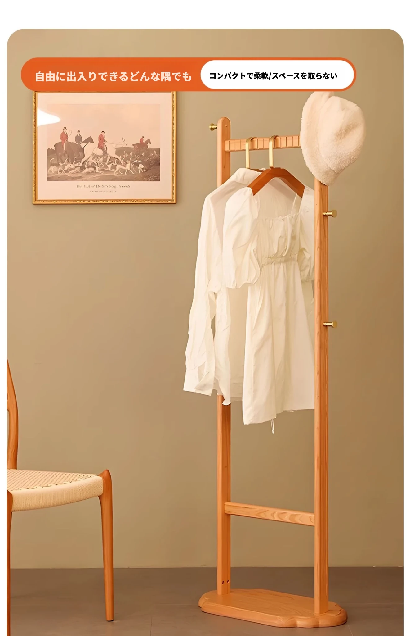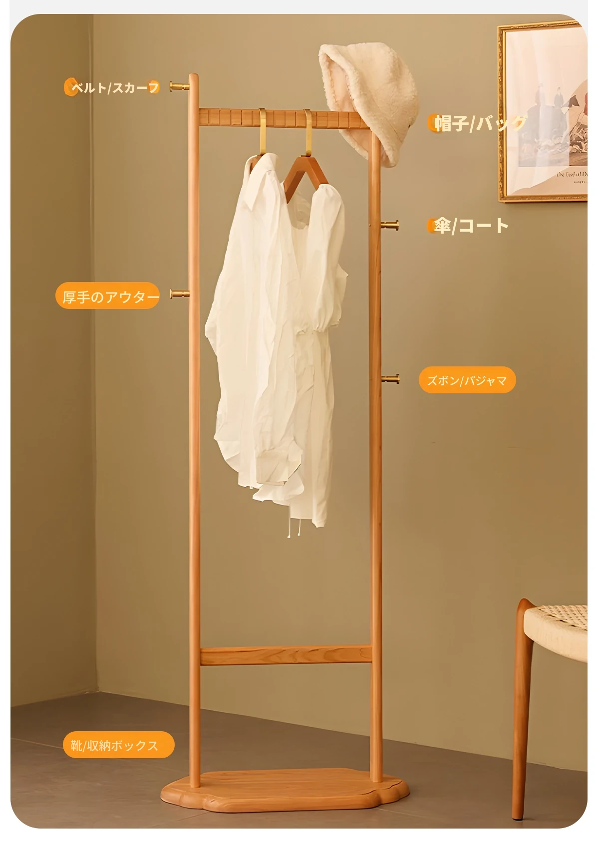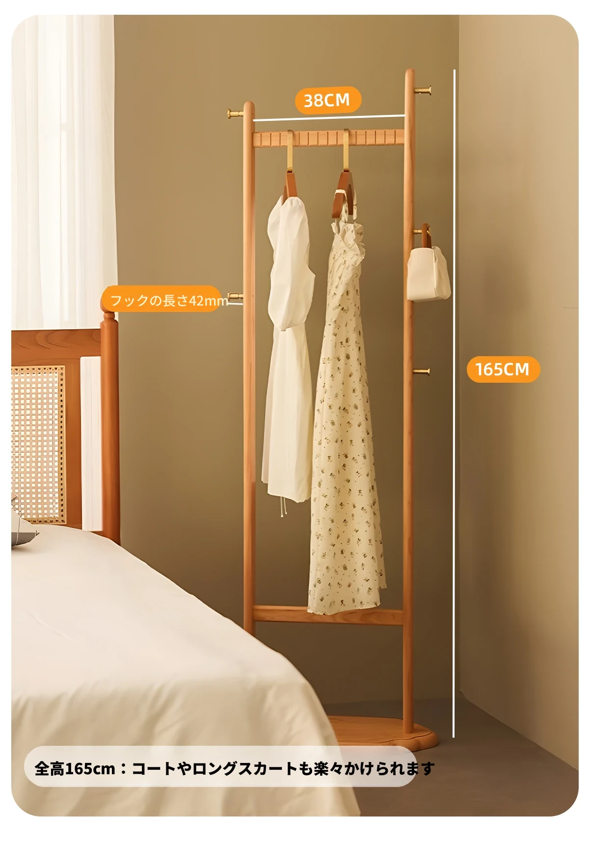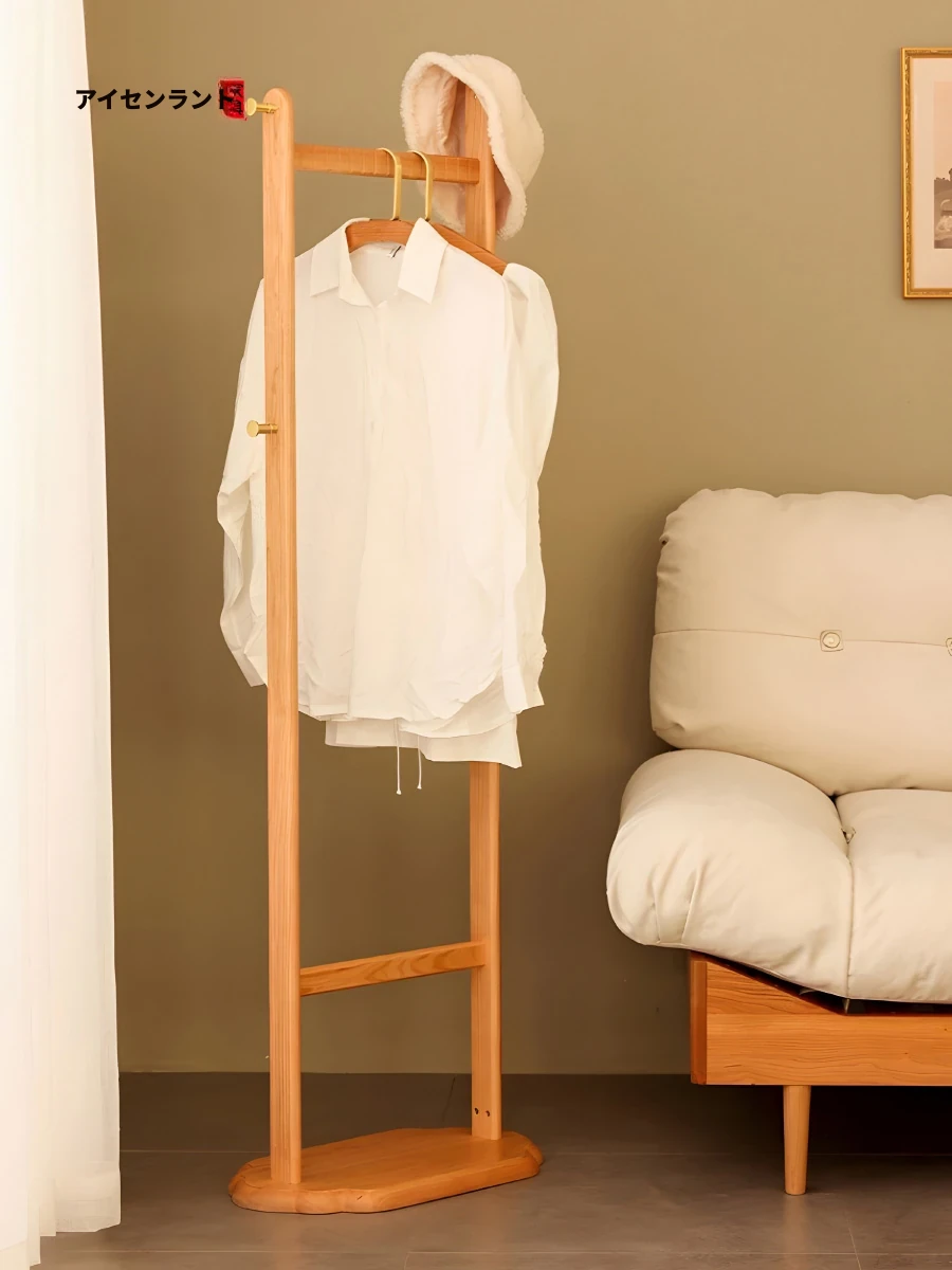 エイセンラント全木製フロアハンガー - コンパクトな小型室内用、寝室やリビングに最適!チェリーウッドのコートラックで、おしゃれに衣類をディスプレイしながらスペースを有効活用。