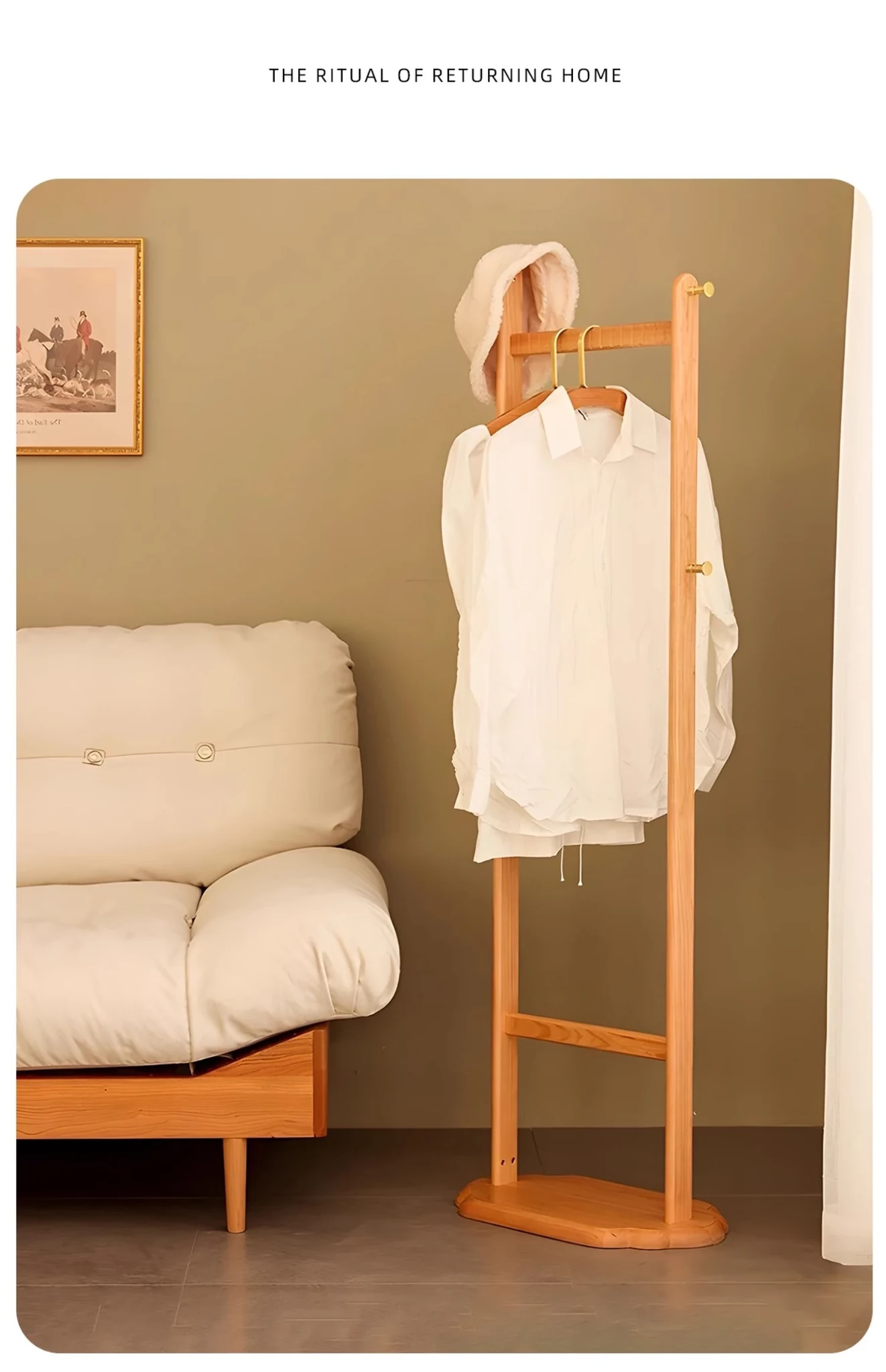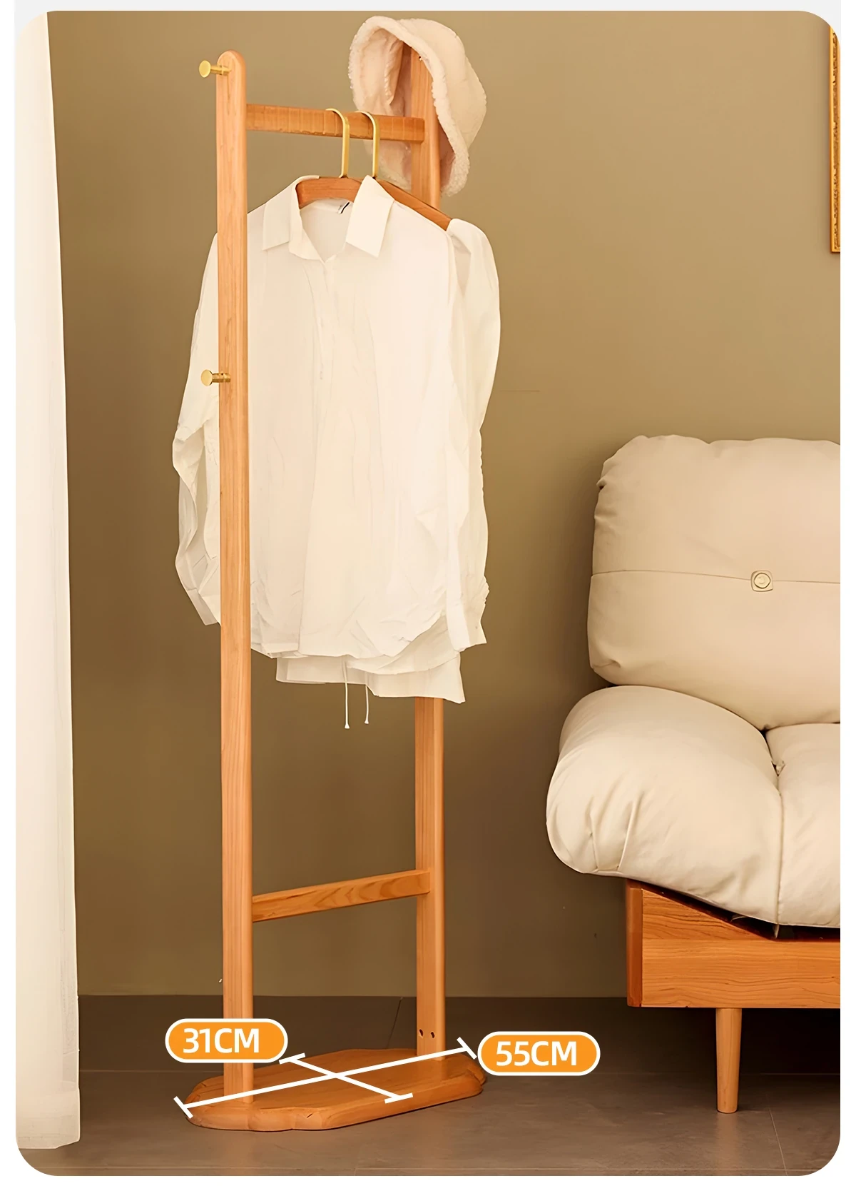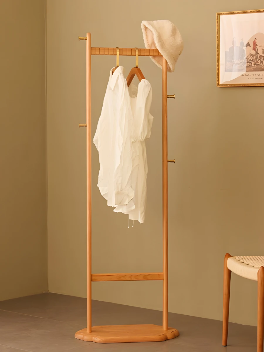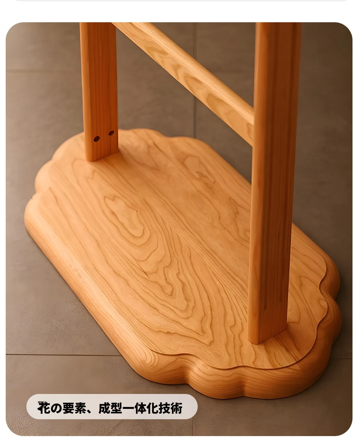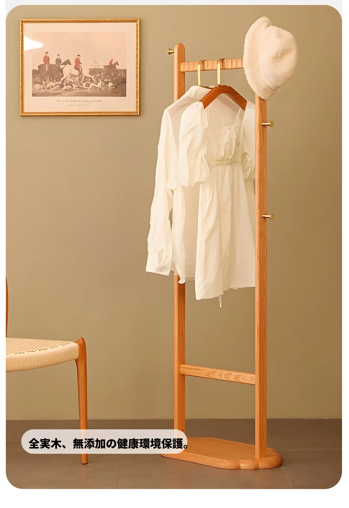 エイセンラント全木製フロアハンガー - コンパクトな小型室内用、寝室やリビングに最適!チェリーウッドのコートラックで、おしゃれに衣類をディスプレイしながらスペースを有効活用。