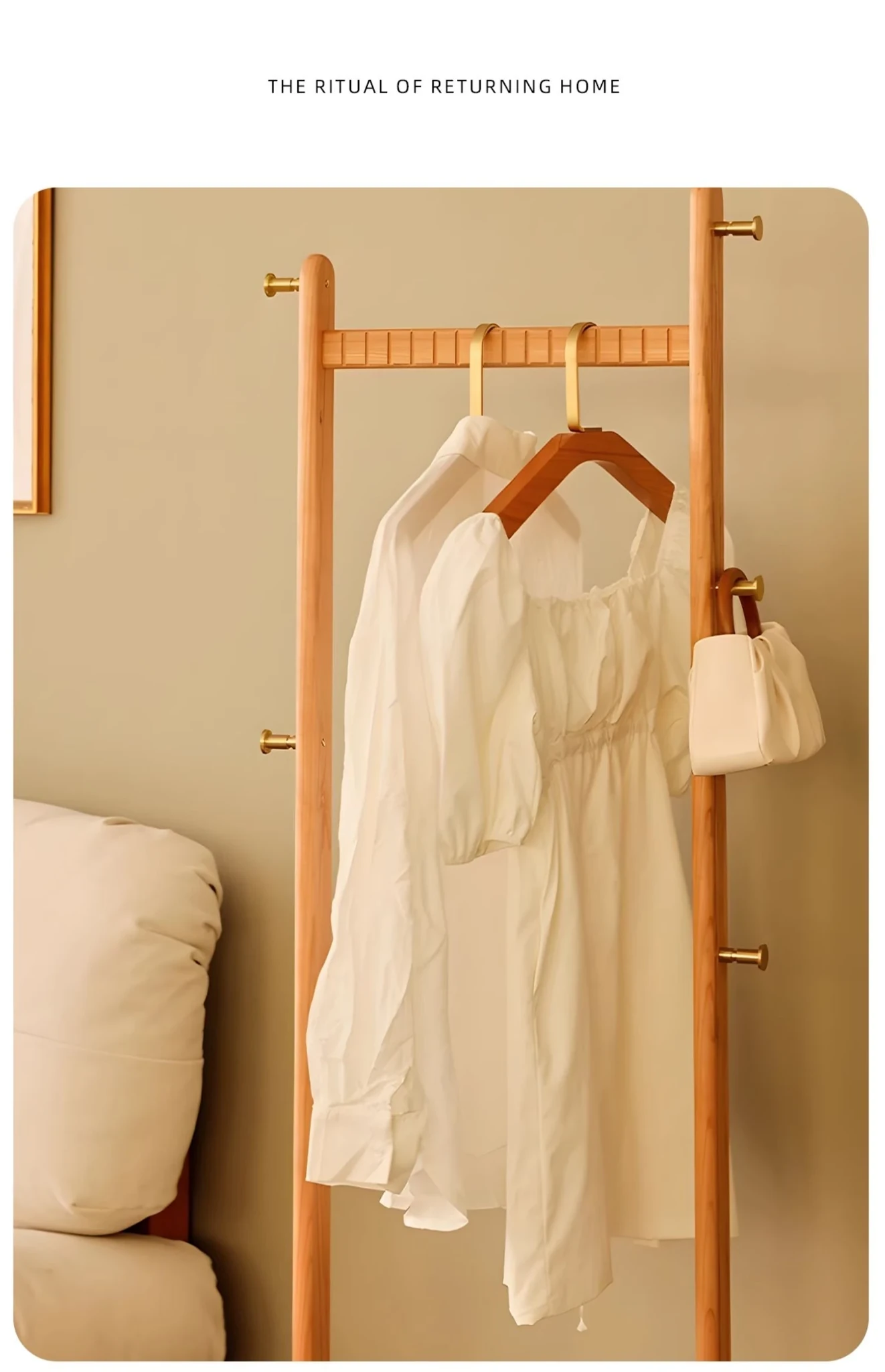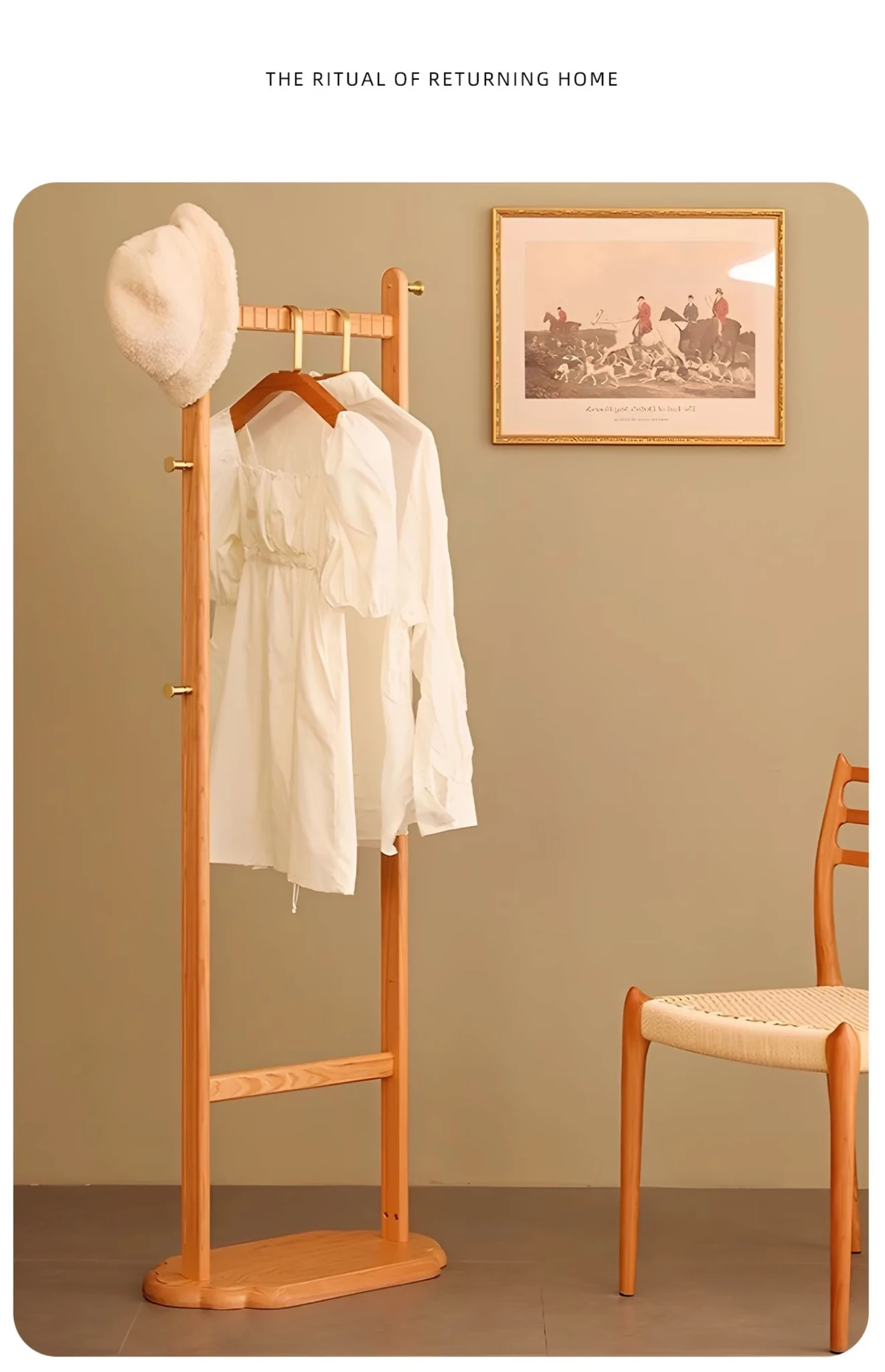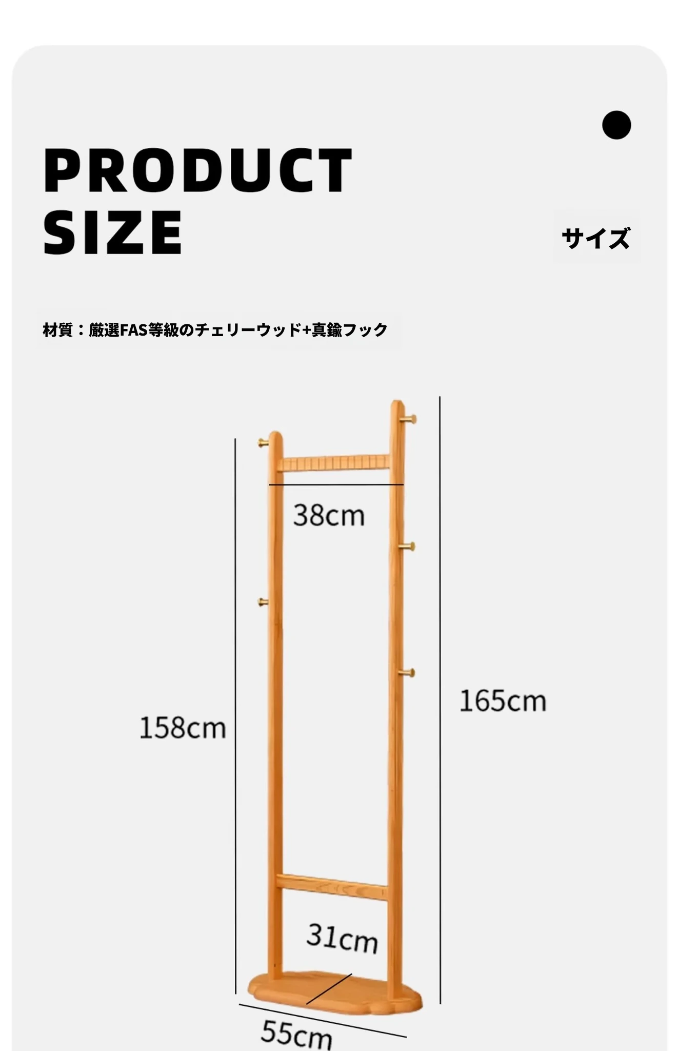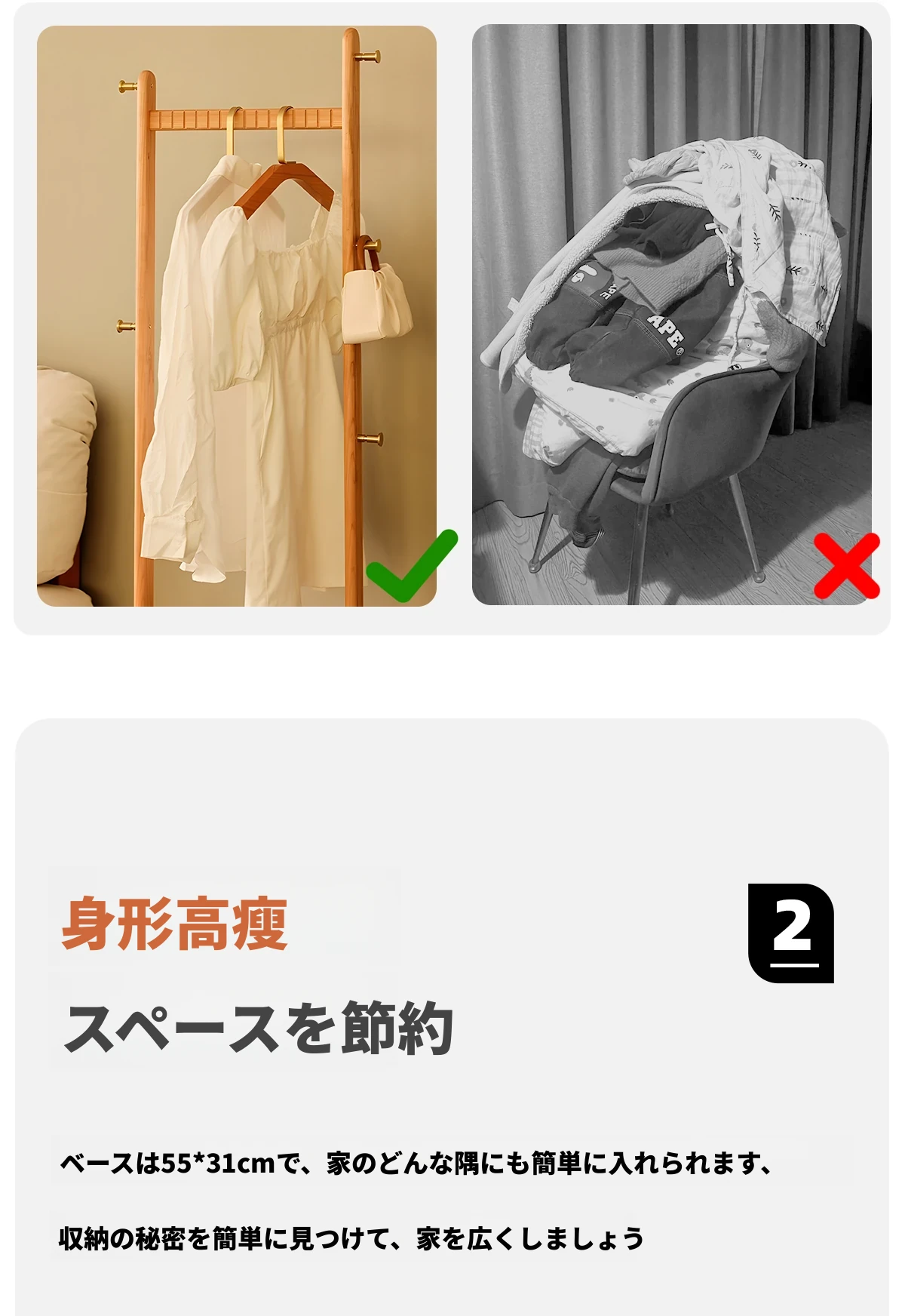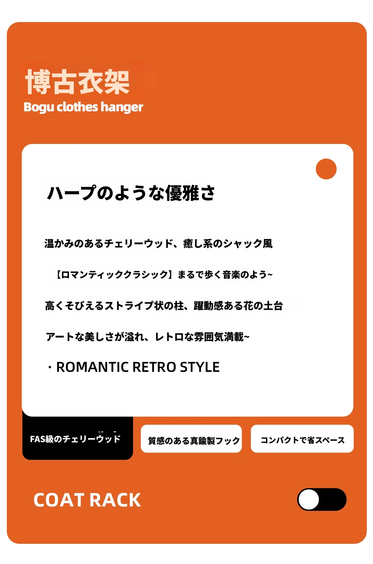 エイセンラント全木製フロアハンガー - コンパクトな小型室内用、寝室やリビングに最適!チェリーウッドのコートラックで、おしゃれに衣類をディスプレイしながらスペースを有効活用。