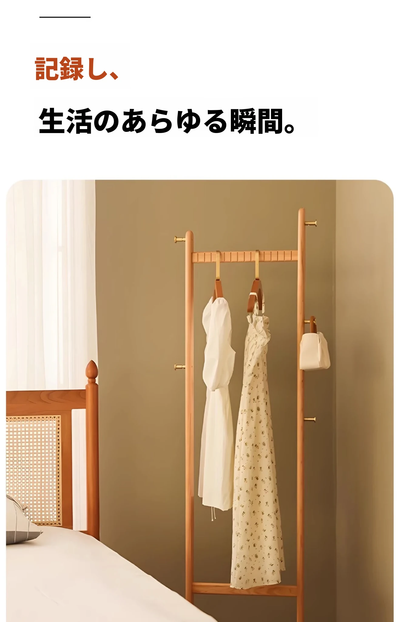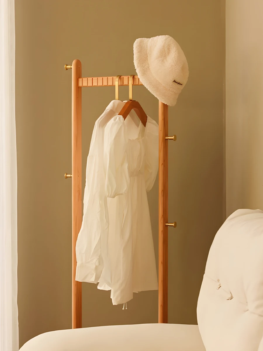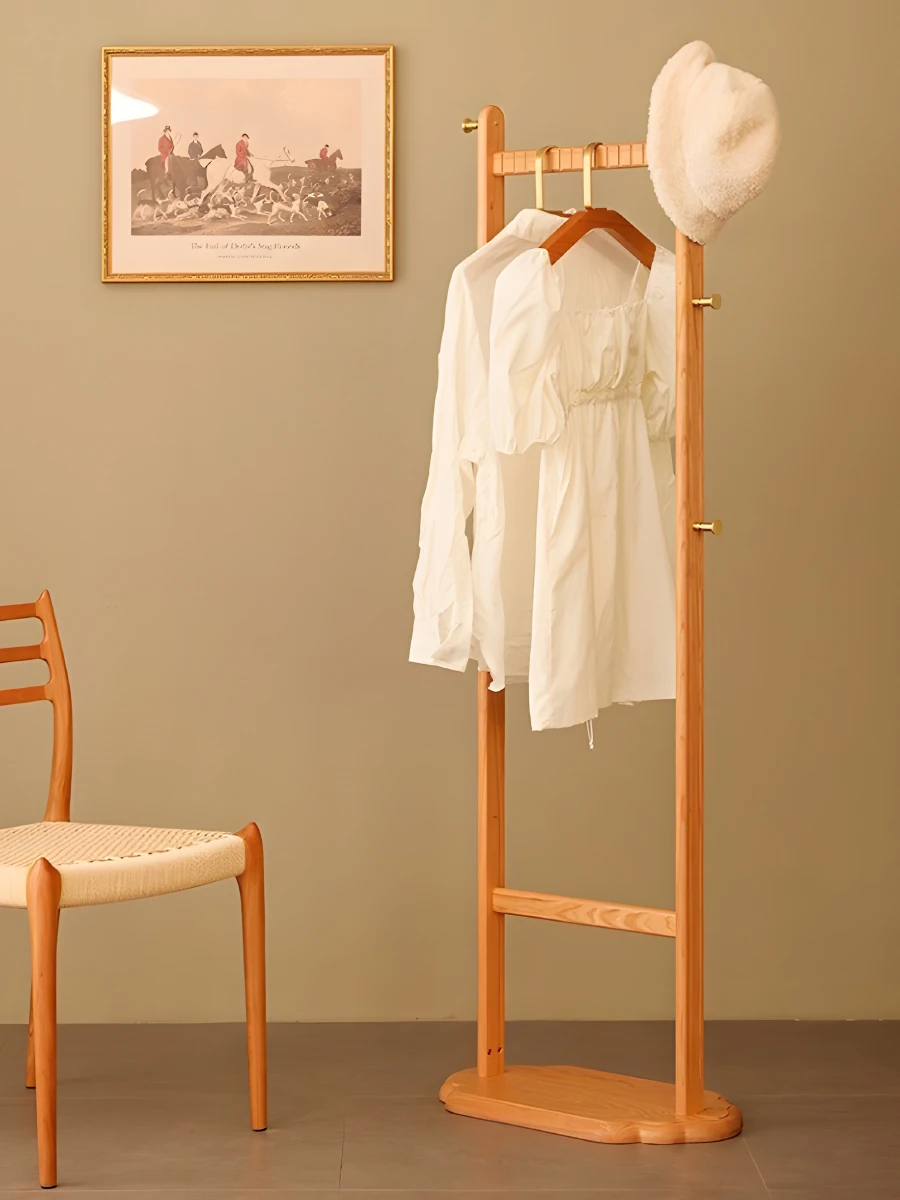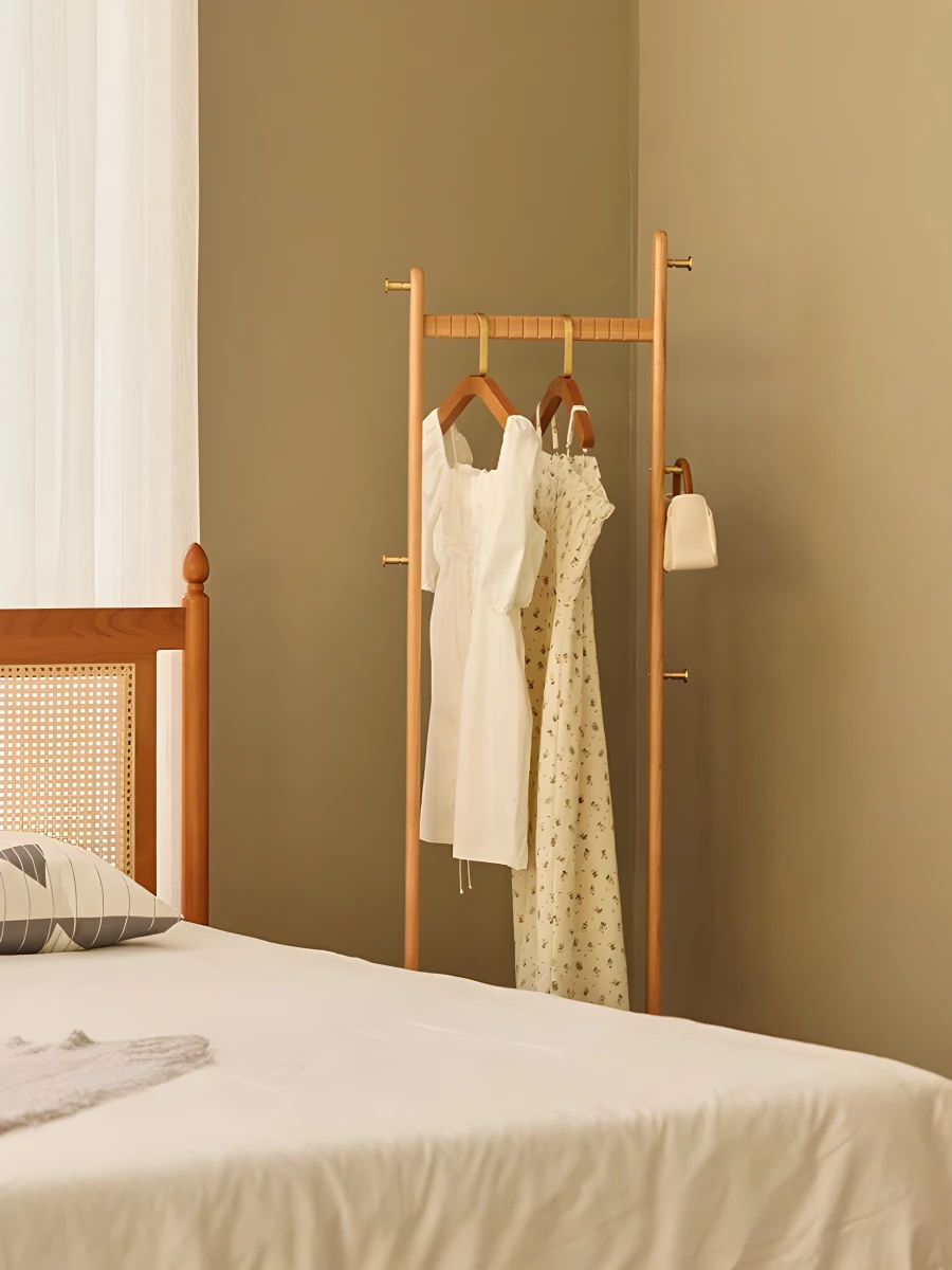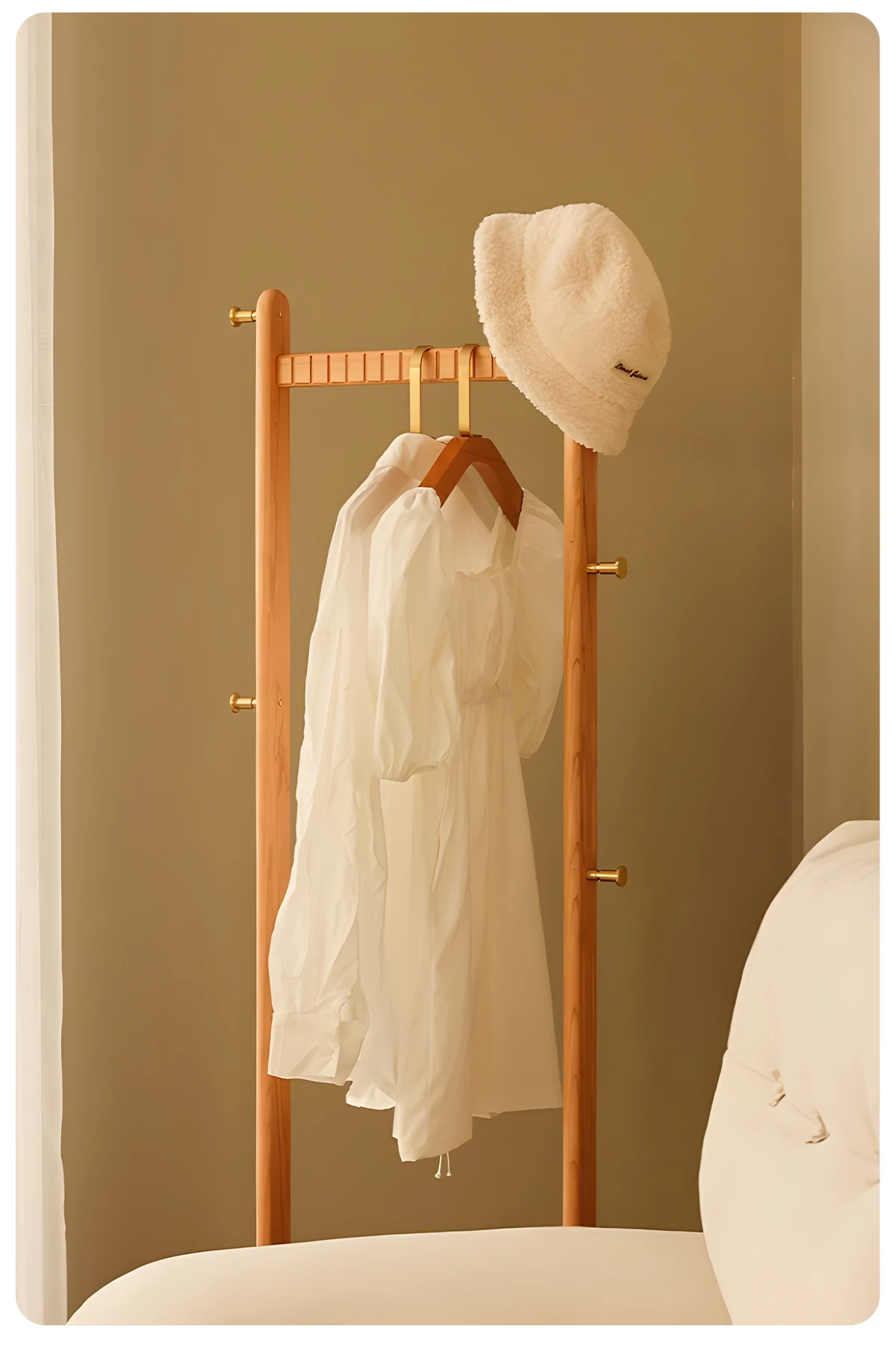 エイセンラント全木製フロアハンガー - コンパクトな小型室内用、寝室やリビングに最適!チェリーウッドのコートラックで、おしゃれに衣類をディスプレイしながらスペースを有効活用。