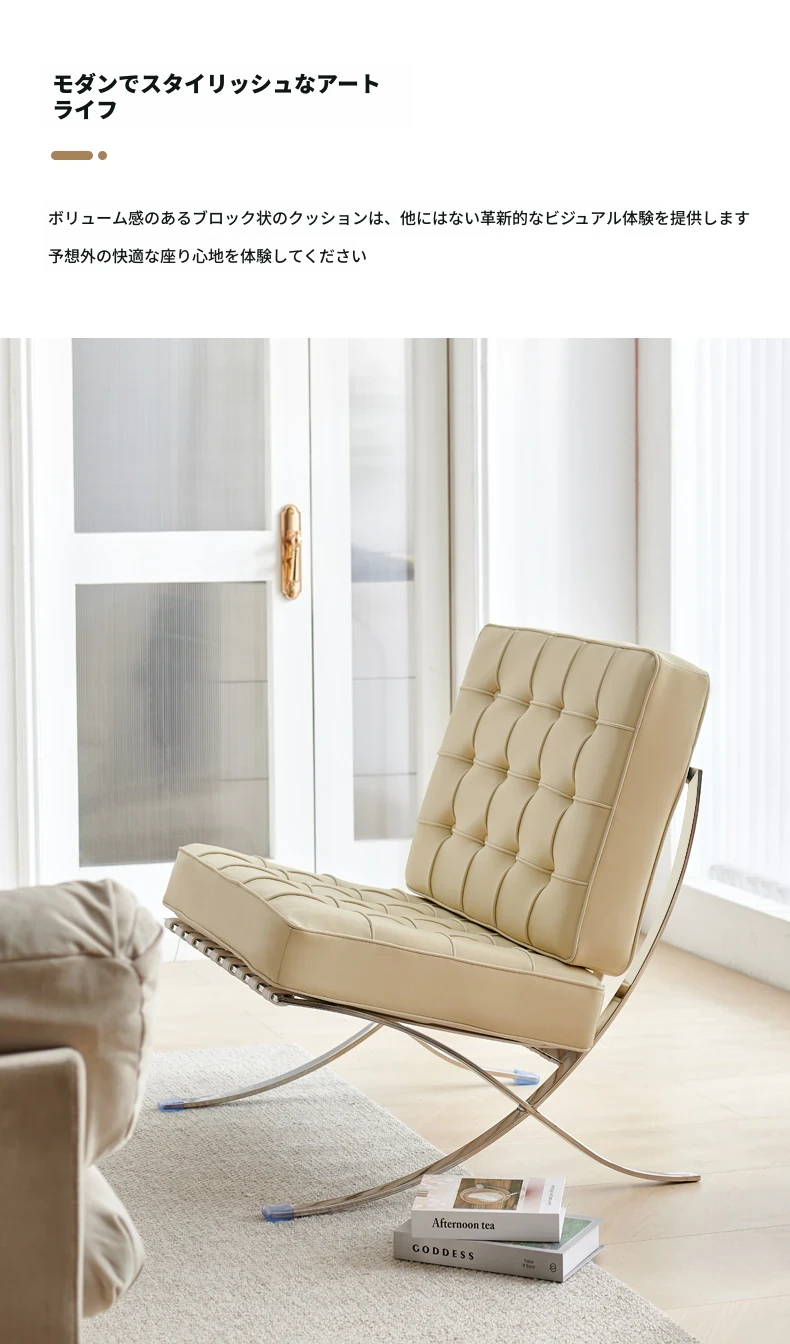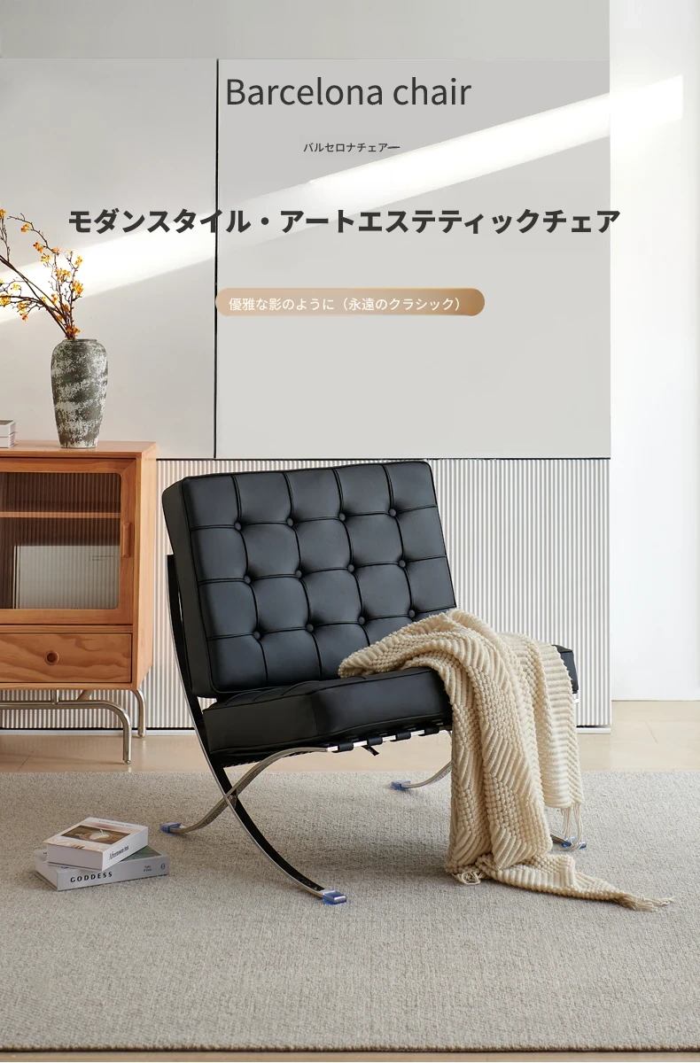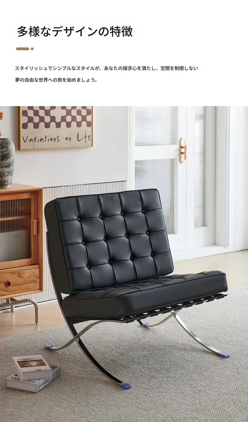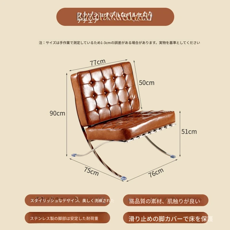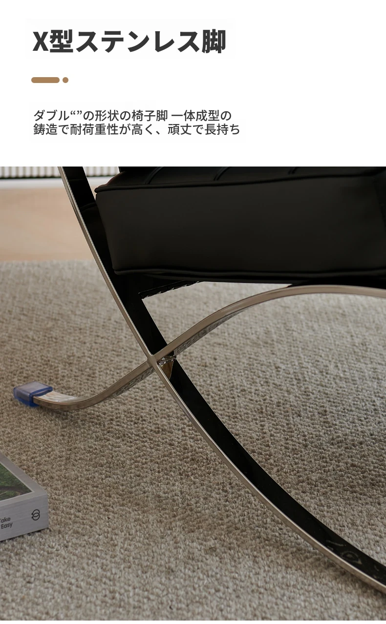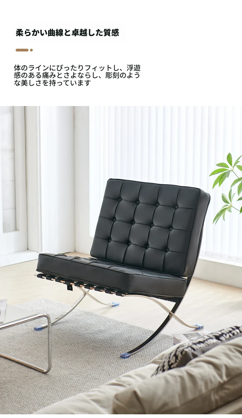 バルセロナチェア 高級レザー使用 北欧デザインの一人用ソファ 椅子 おしゃれなリラックス空間を演出 中古風の洗練されたラウンジチェアとして最適!