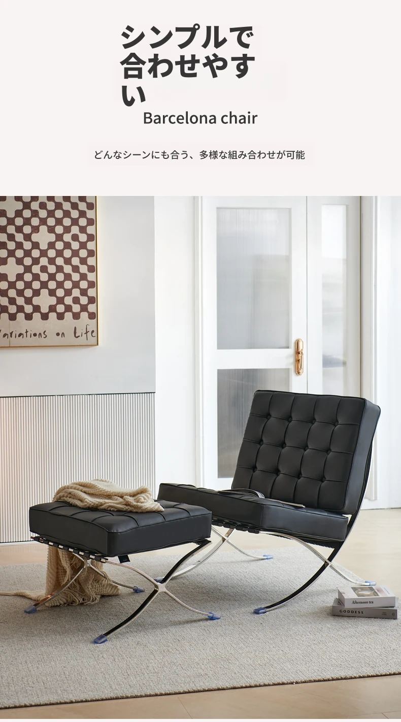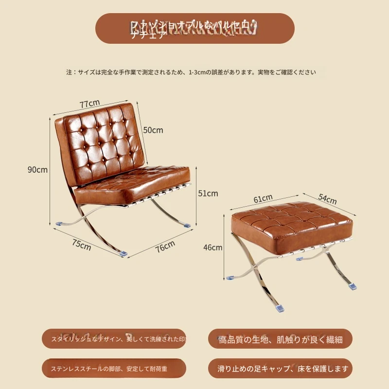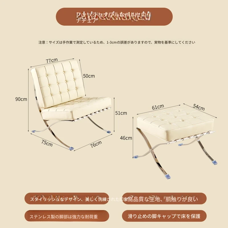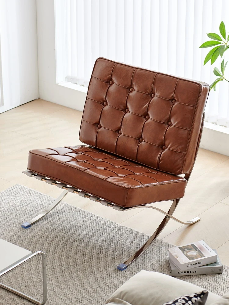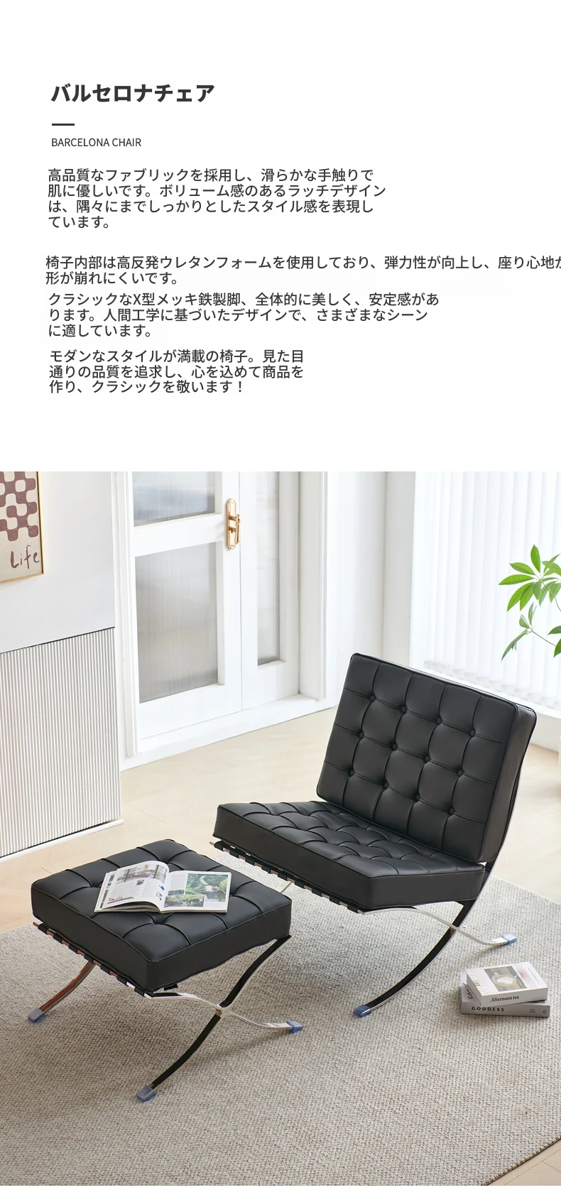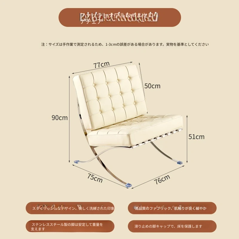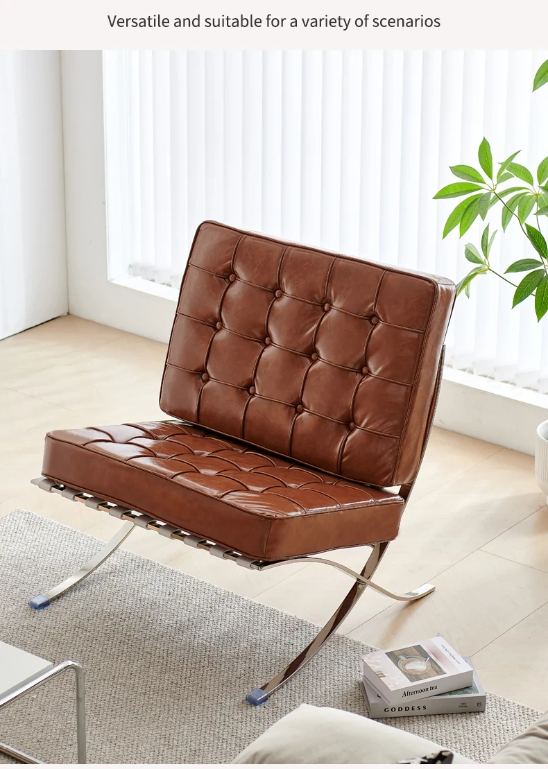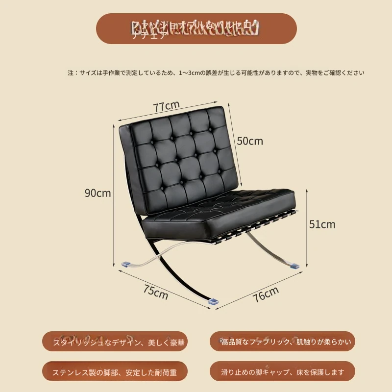 バルセロナチェア 高級レザー使用 北欧デザインの一人用ソファ 椅子 おしゃれなリラックス空間を演出 中古風の洗練されたラウンジチェアとして最適!