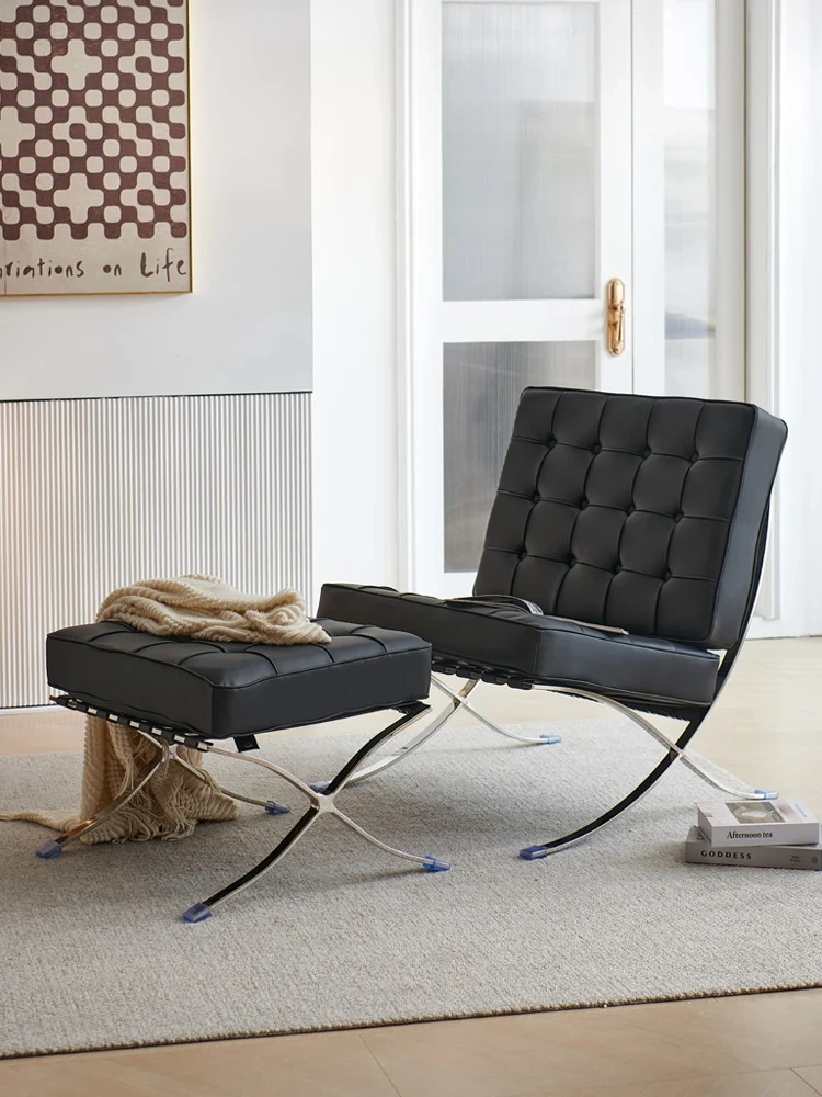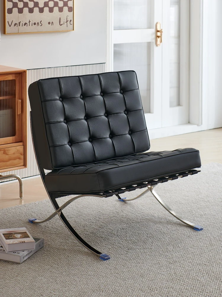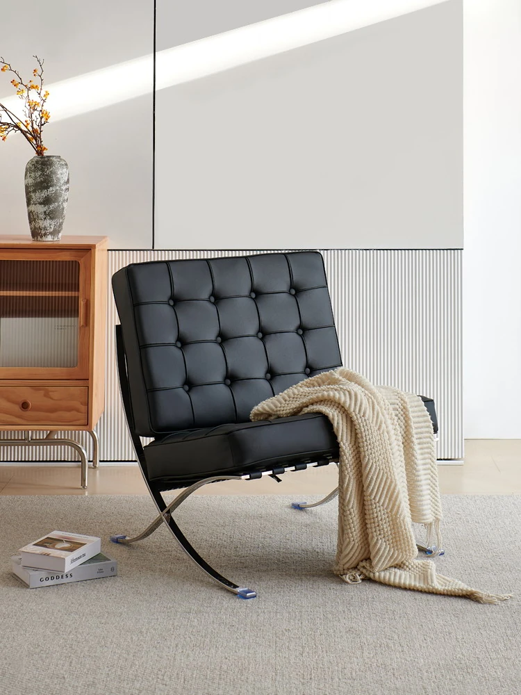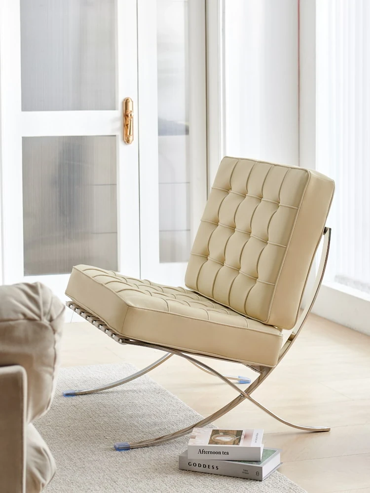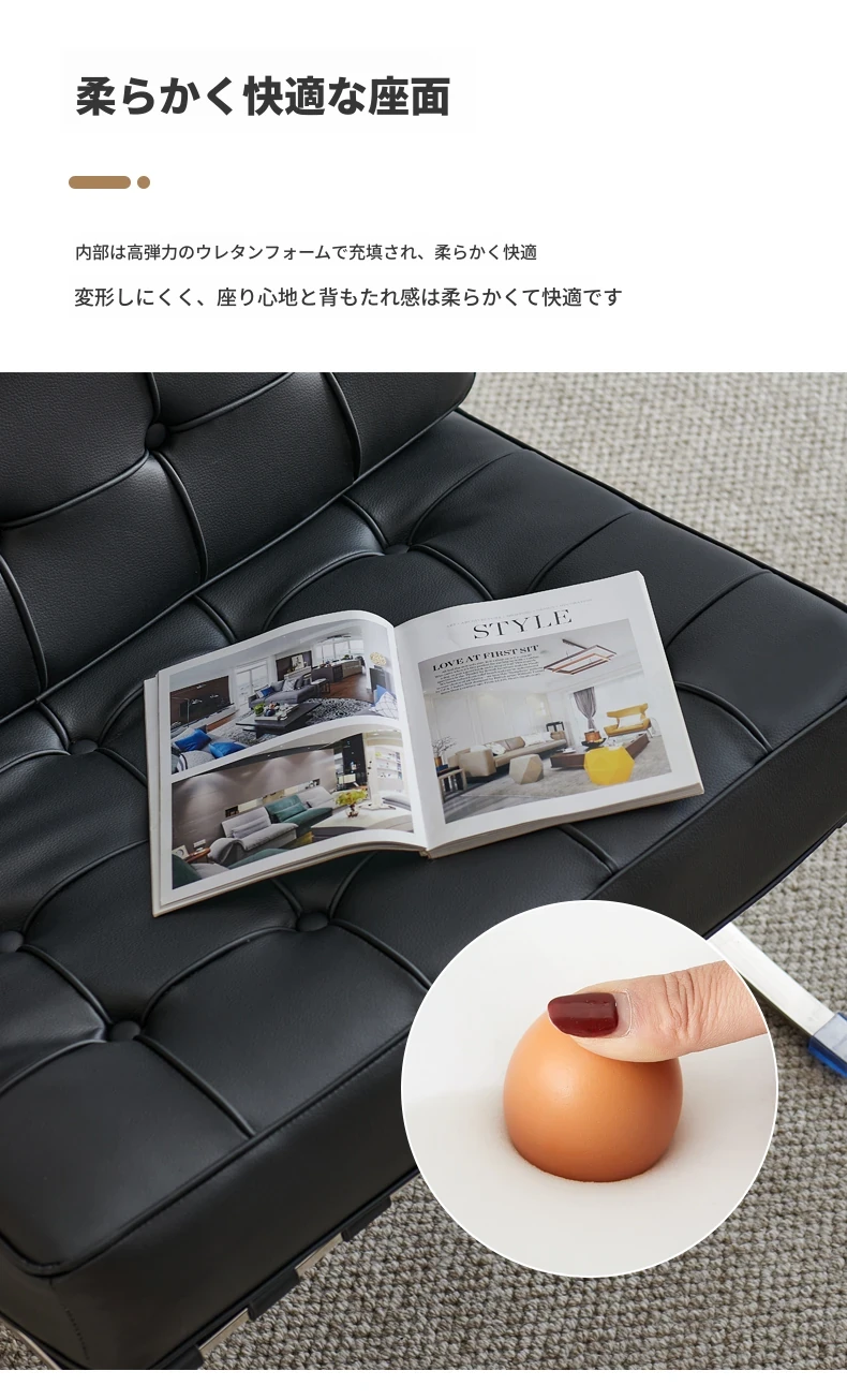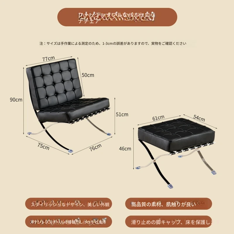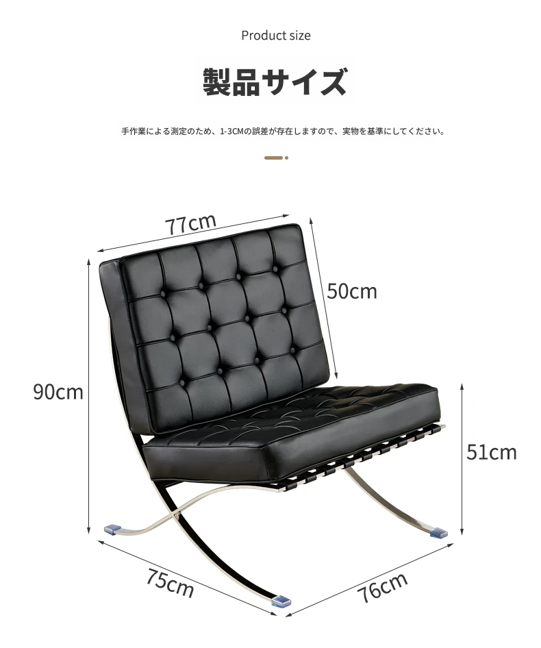 バルセロナチェア 高級レザー使用 北欧デザインの一人用ソファ 椅子 おしゃれなリラックス空間を演出 中古風の洗練されたラウンジチェアとして最適!
