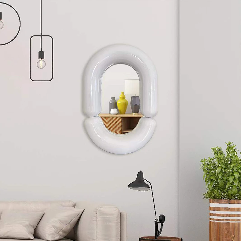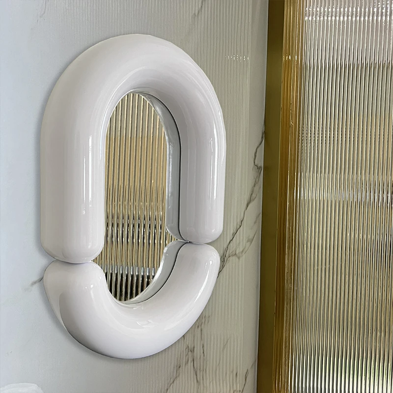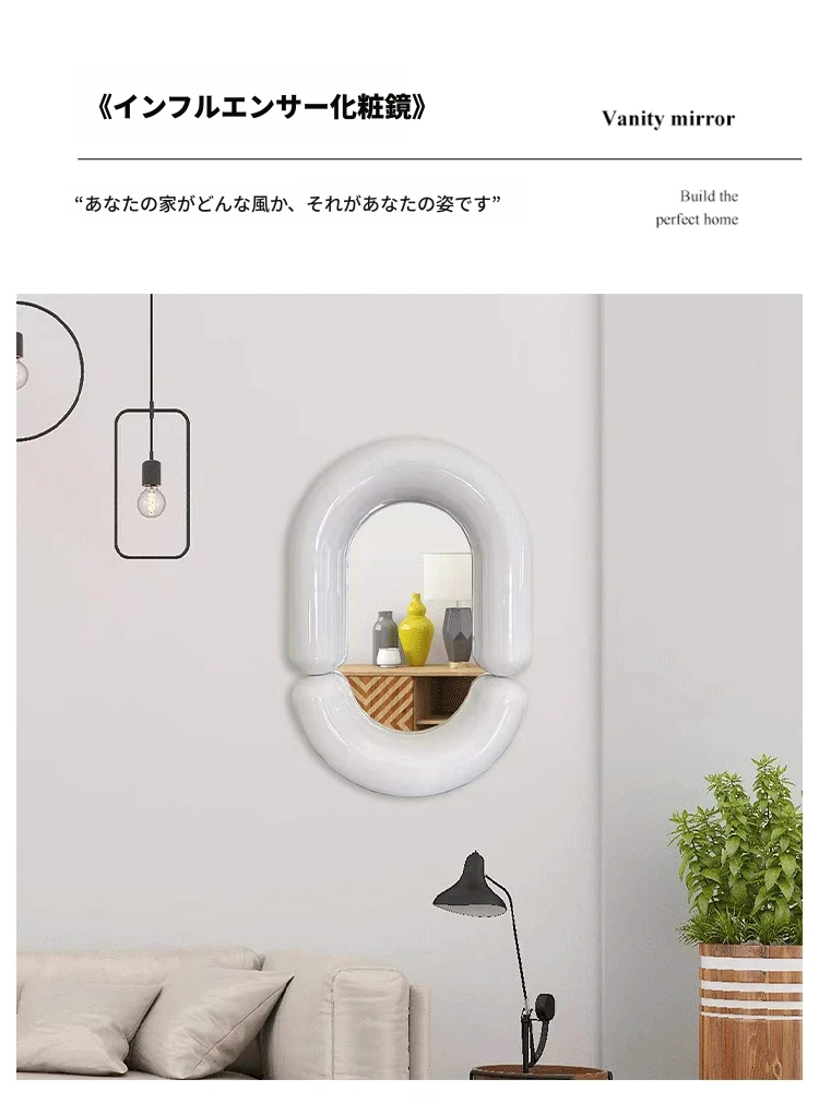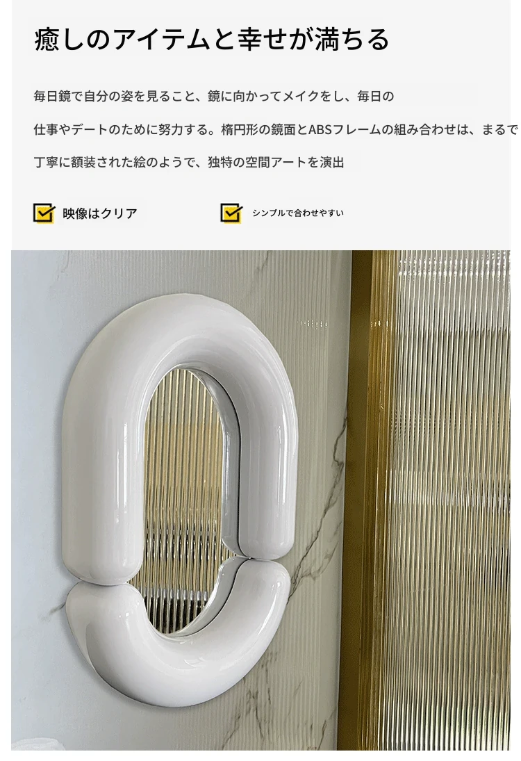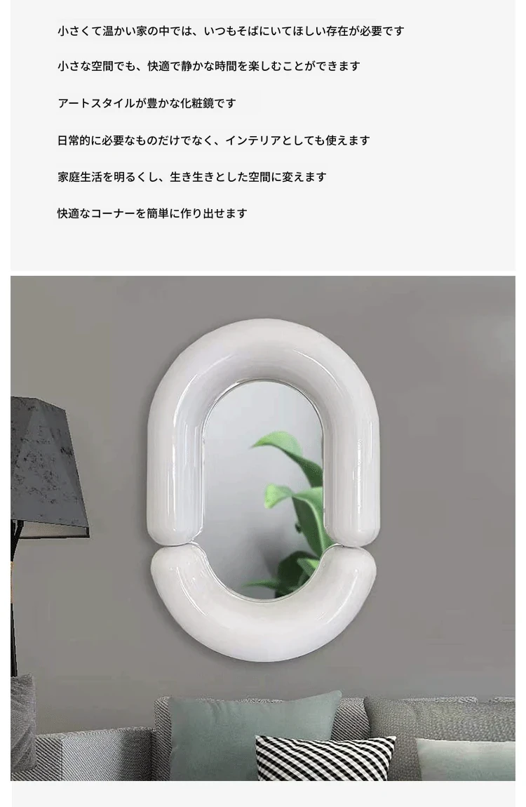 現代北欧スタイルのインスタ映えする可愛い化粧鏡!創造的なデコレーションミラー、軽やかなラグジュアリー感漂う壁掛けドレッシングミラー。小さめのQ型デザインで、おしゃれな空間を演出します!