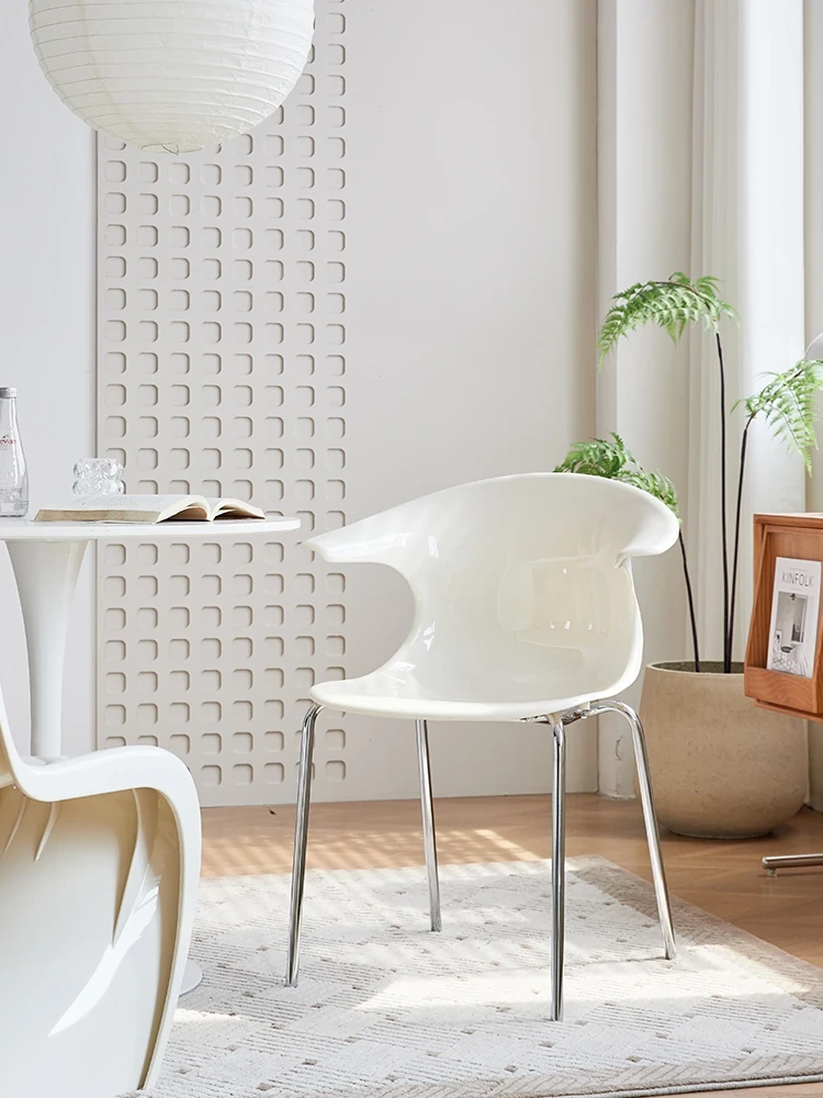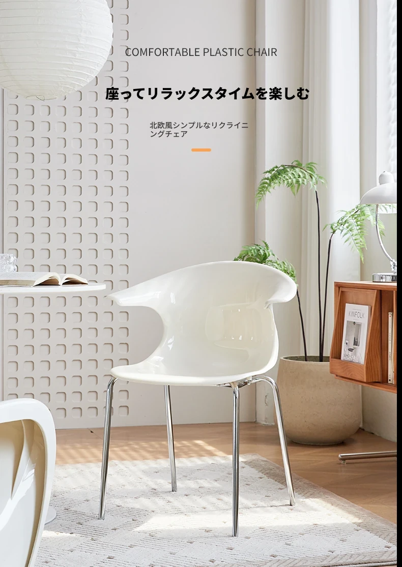 インスタ映えする北欧風プラスチックチェア - BBQ店やアウトドアバルコニーに最適!シンプルで洗練されたデザイン、背もたれ付きでリラックスできるレストラン用椅子。快適なダイニング体験をお楽しみください!