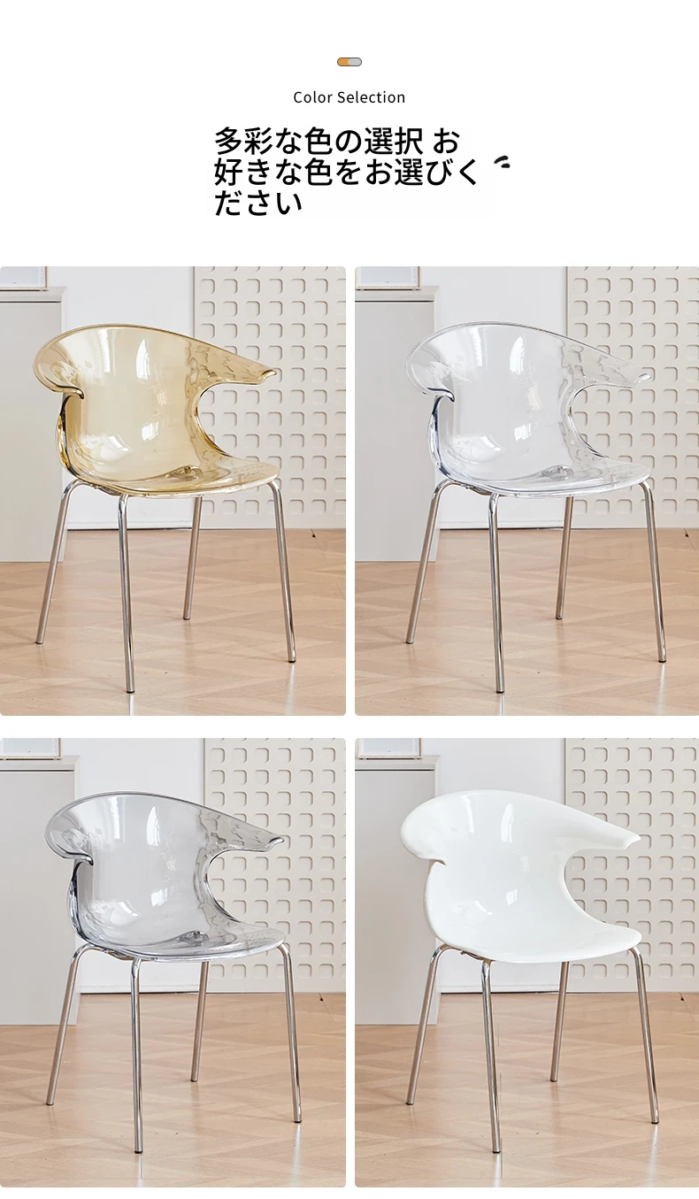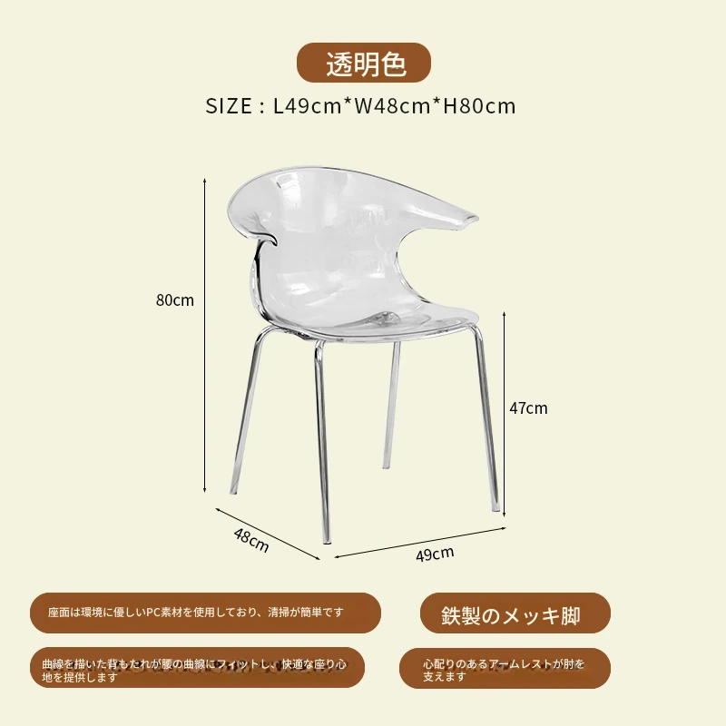 北欧スタイルのアクリル透明ダイニングチェア|シンプルでモダンなデザイン|家庭用書斎やダイニングに最適!快適なプラスチック背もたれ付き|トーヤスのダイニングテーブルチェア