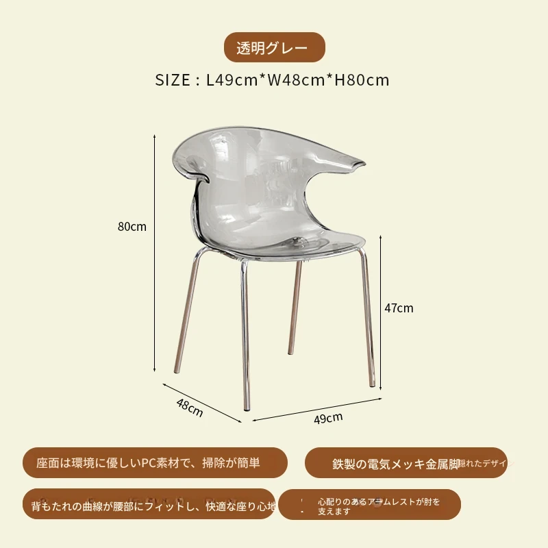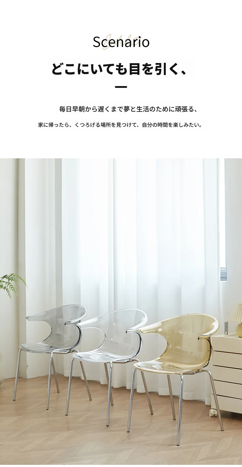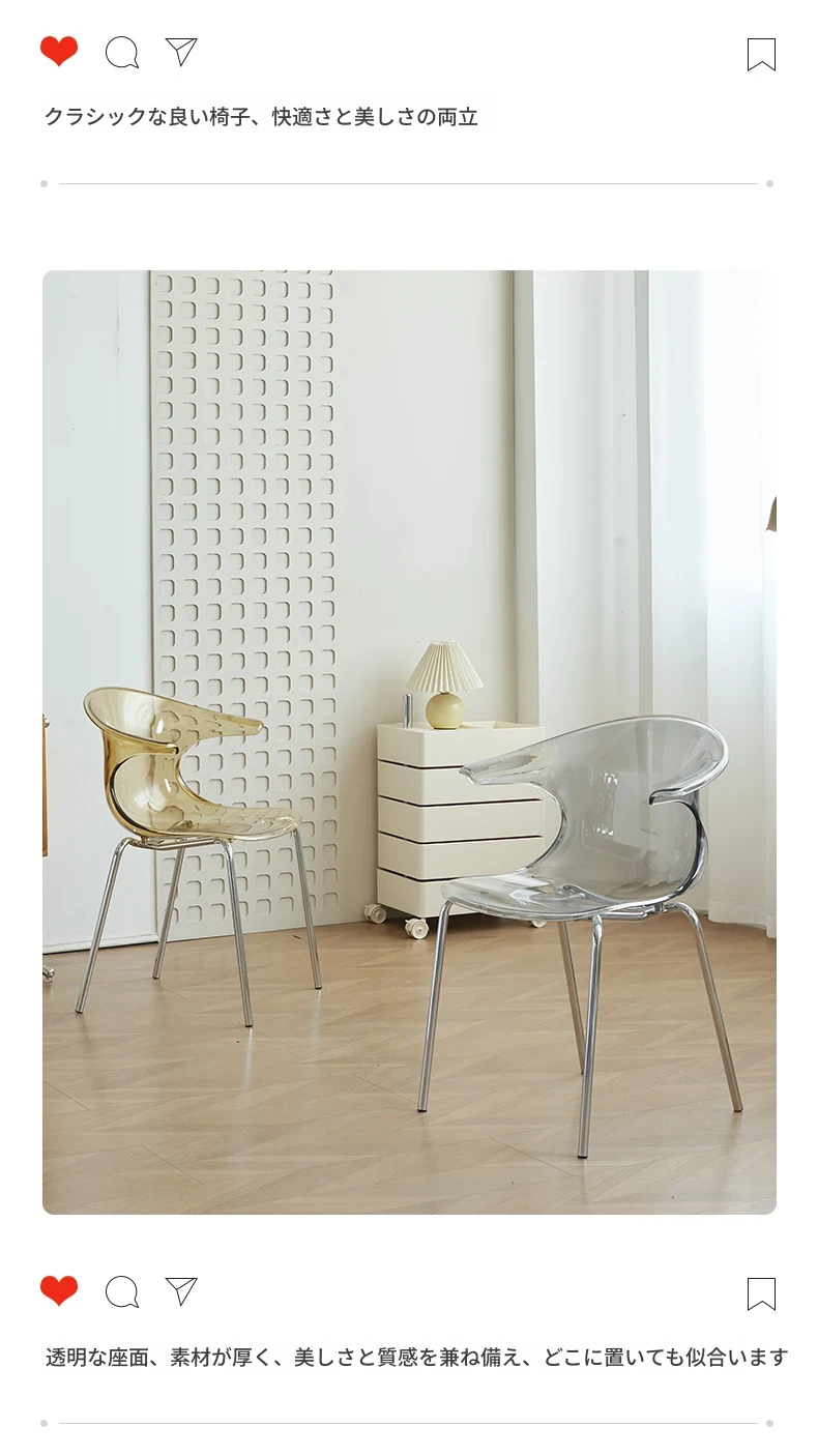 アクリル透明ダイニングチェア|おしゃれなデザイン&快適な座り心地の家庭用透明チェア|リラックスしたひとときを演出するトレンディなスタイルの軽奢椅子