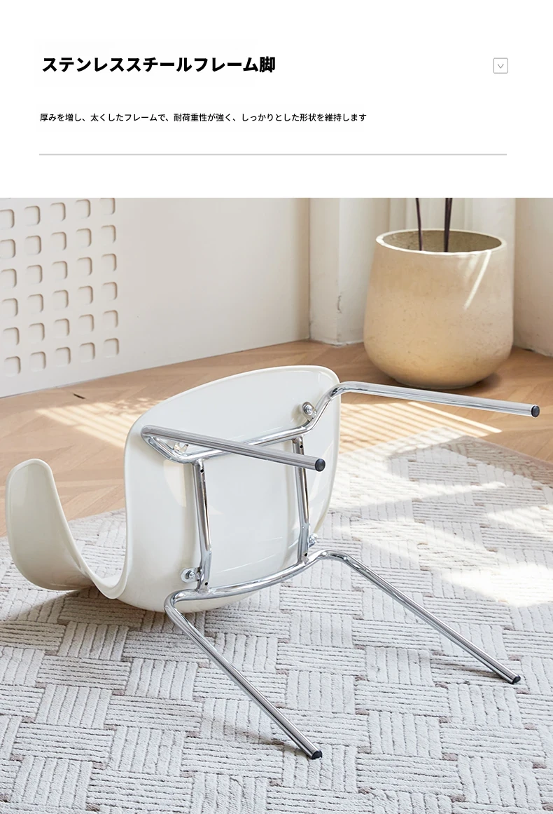 シンプルな北欧スタイルのステンレス製ダイニングチェア|アームレストなしのモダンでクリーンなデザイン|インテリアにぴったりなミッドセンチュリーチェア!