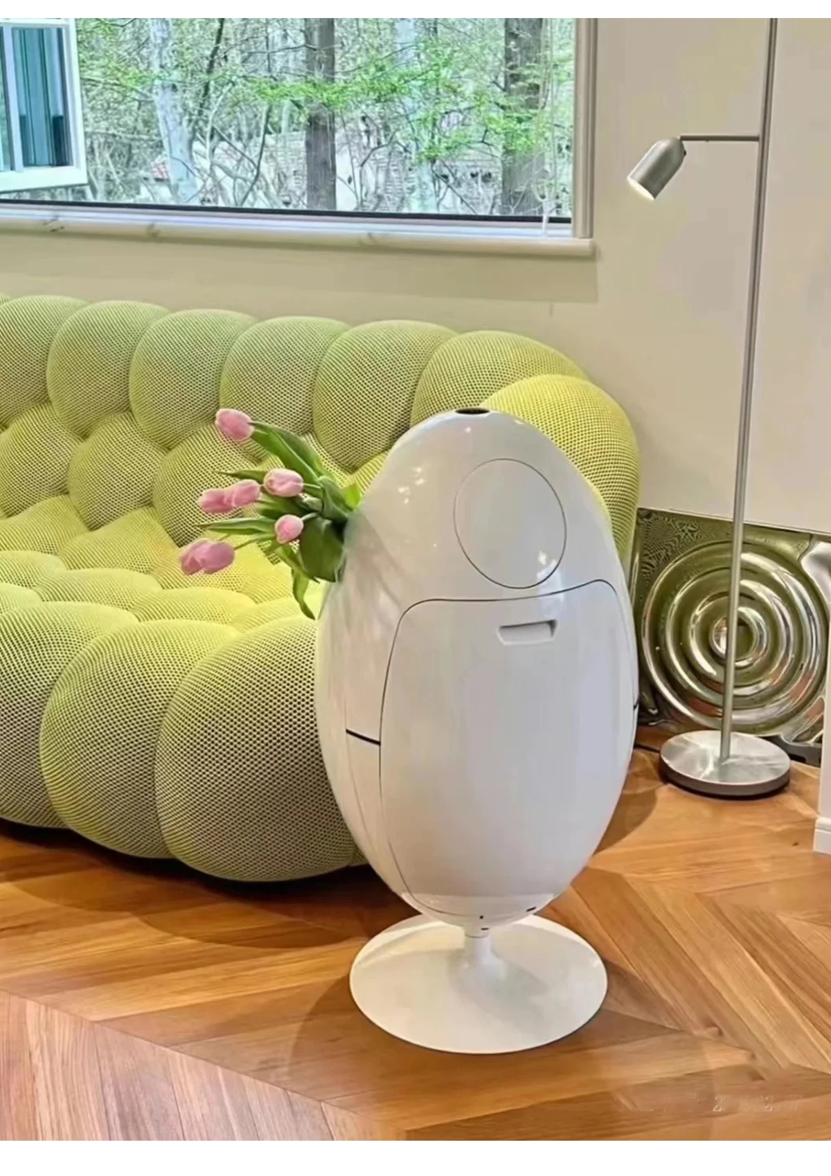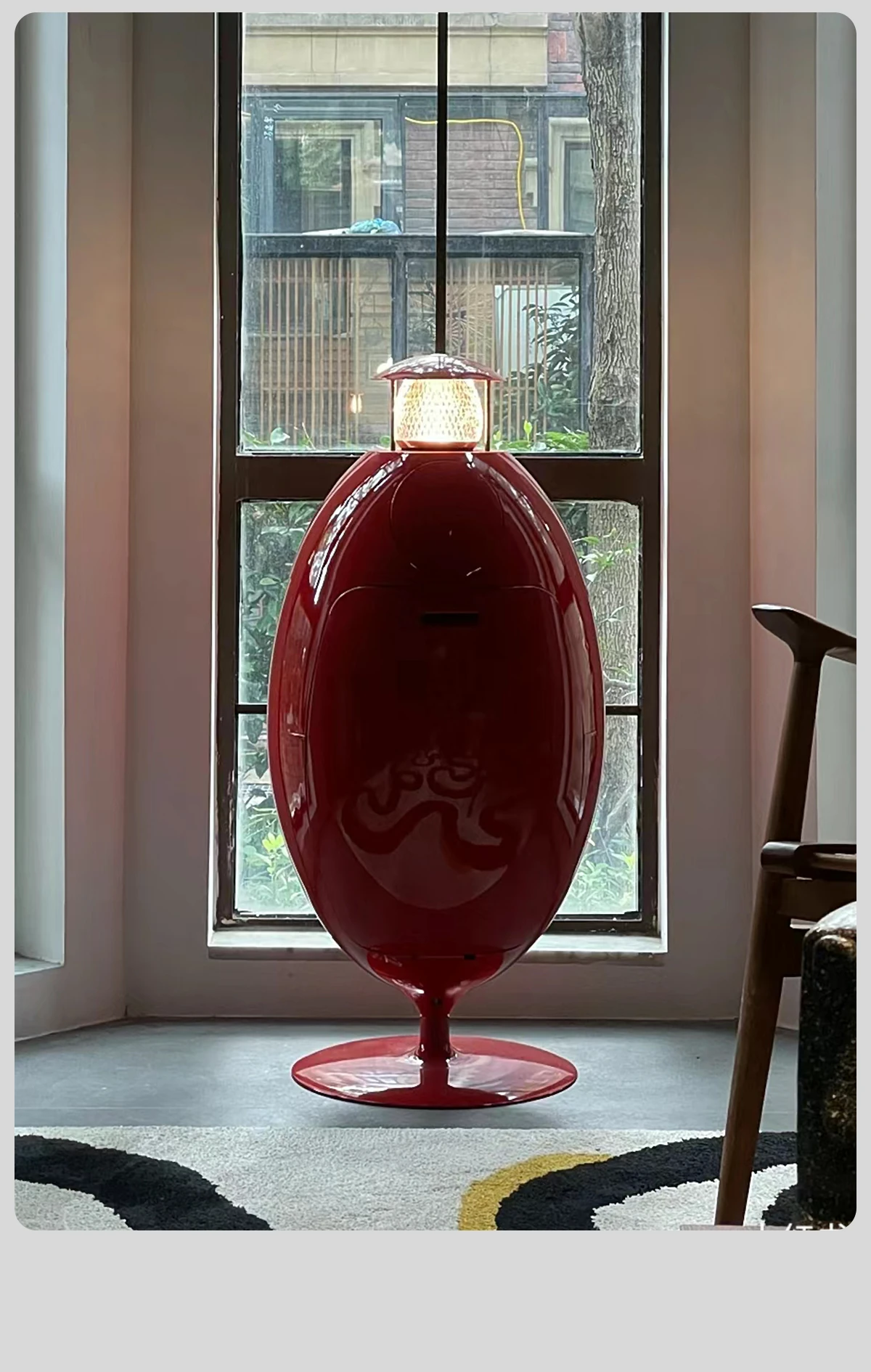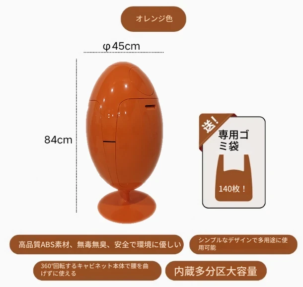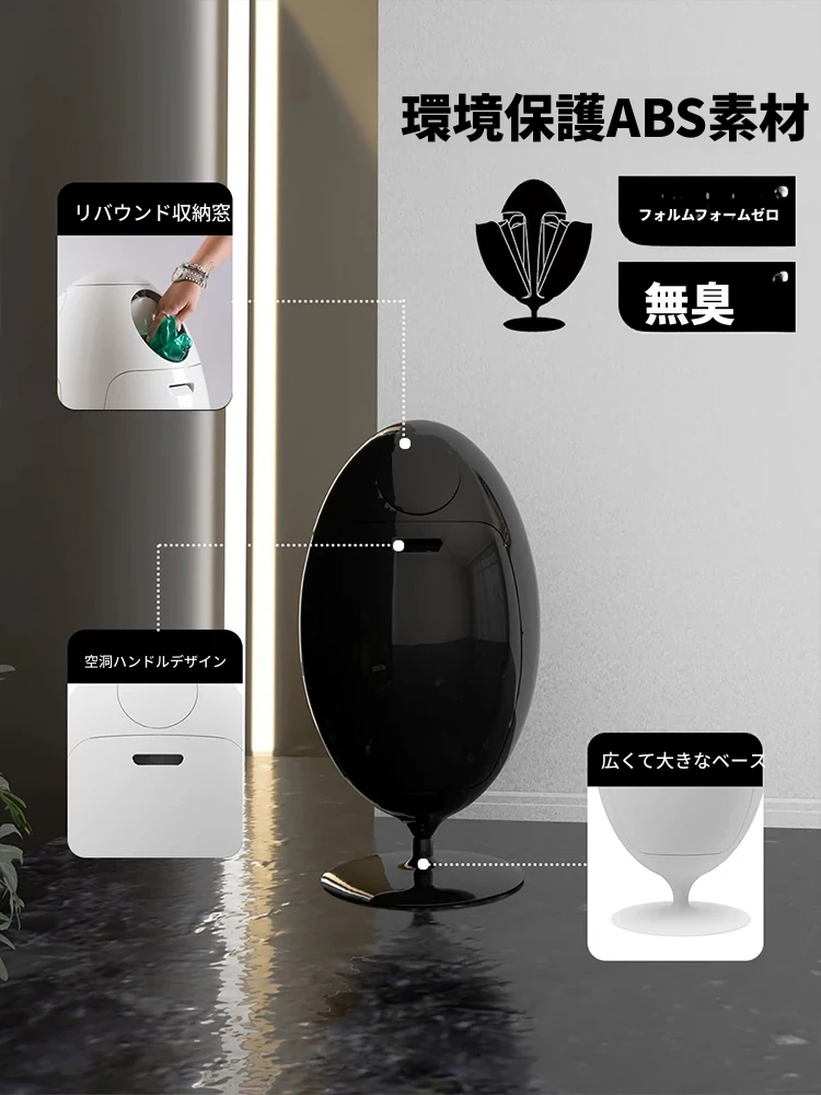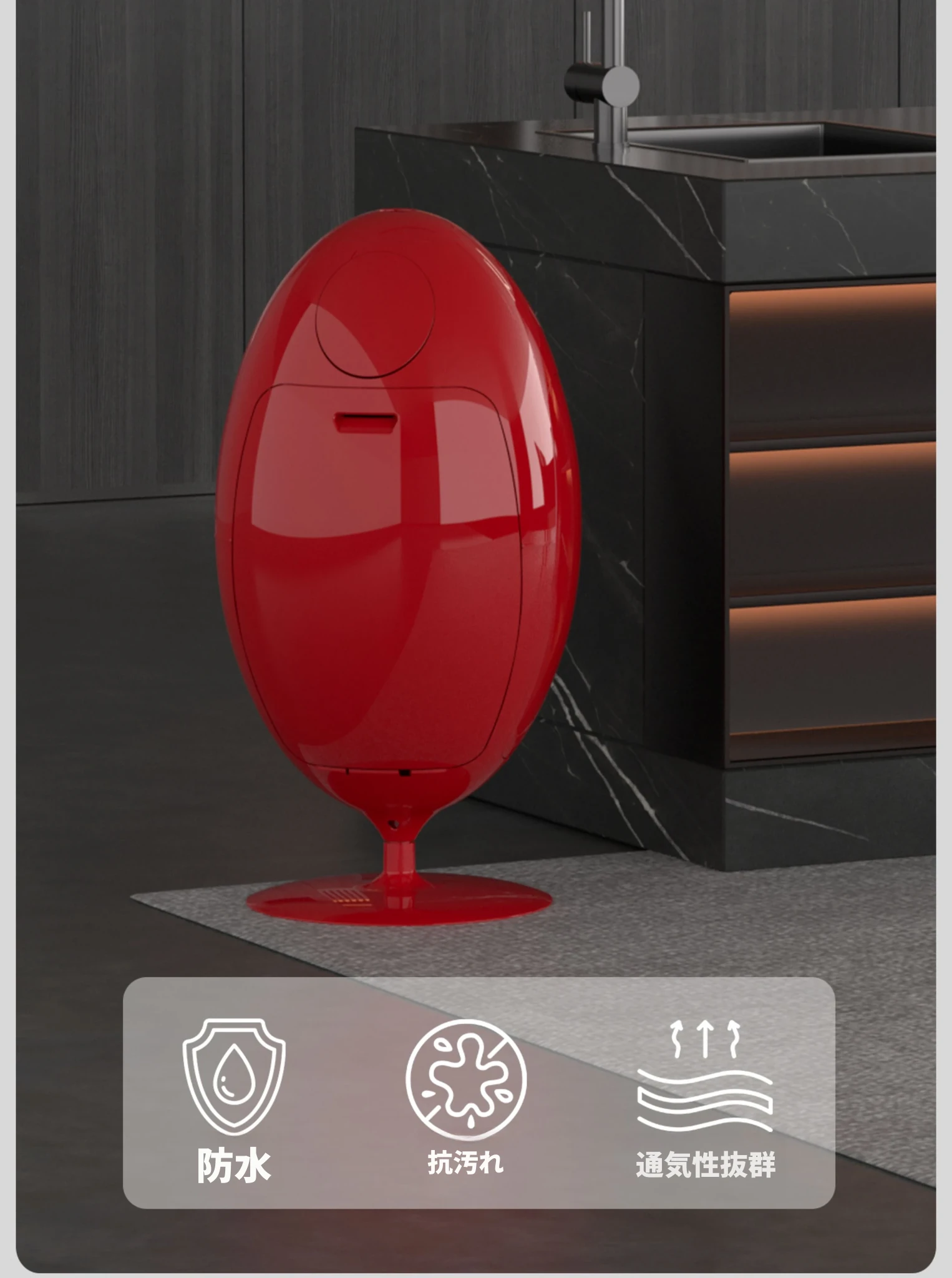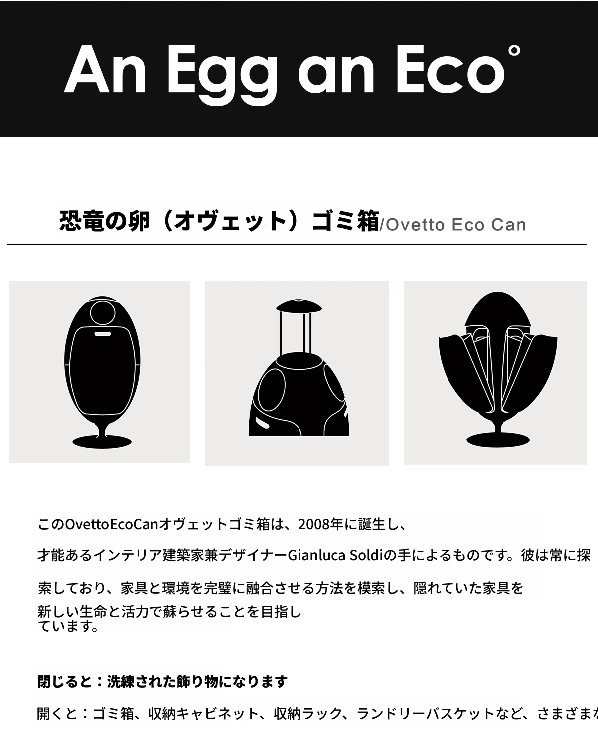 未来感あふれる恐竜卵デザインの回転ゴミ箱 - 環境に優しいキッチン&リビングのスタイリッシュなインテリア大作!デザイナーのこだわりが詰まった一品。