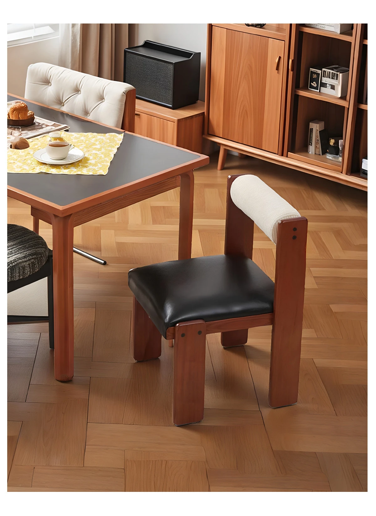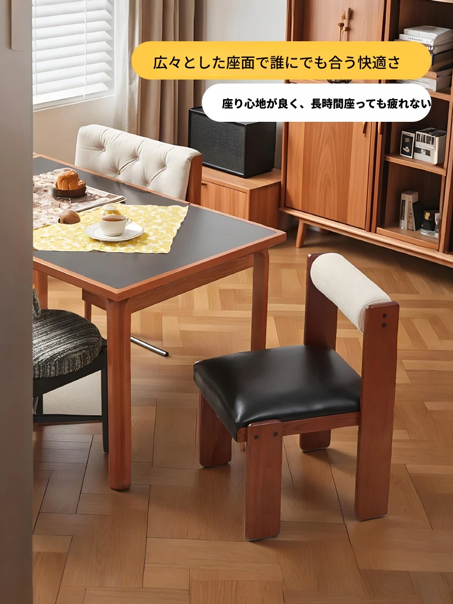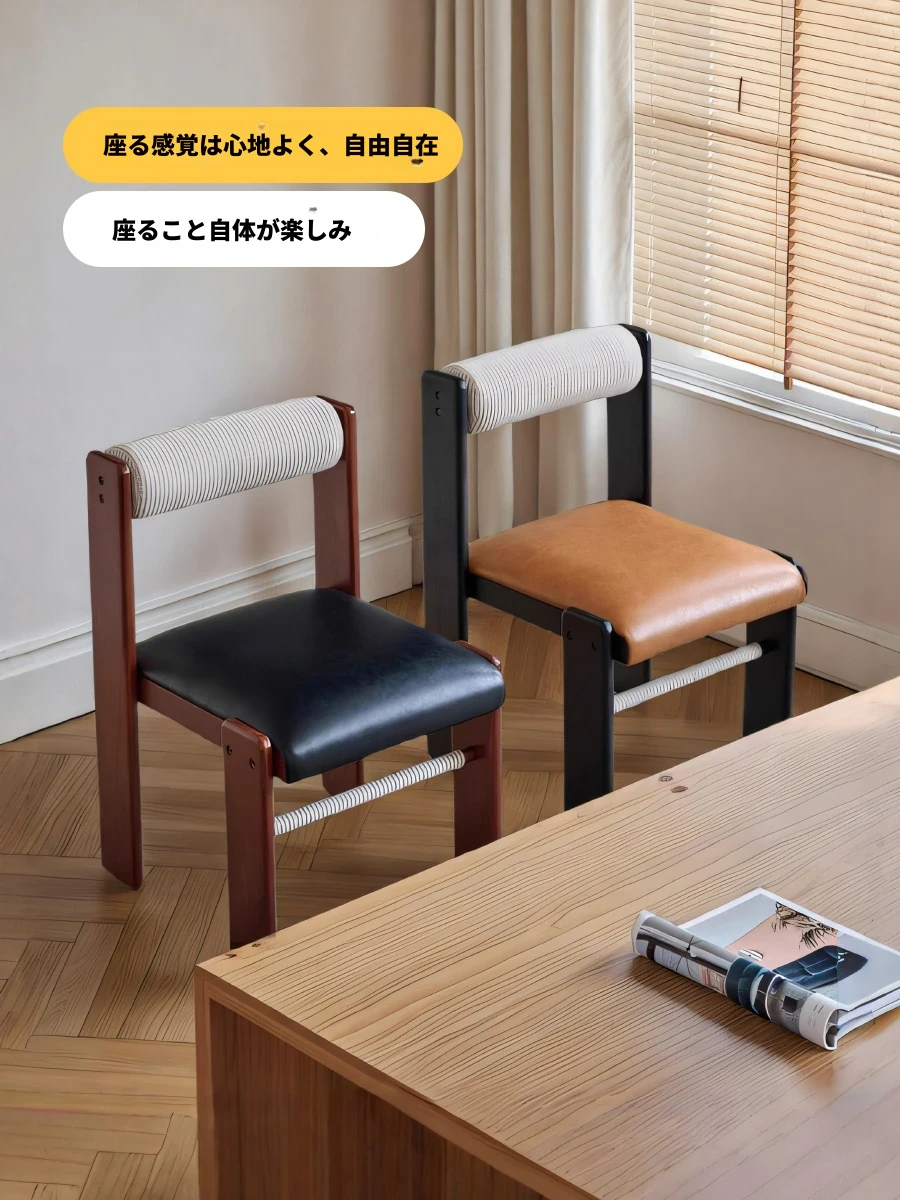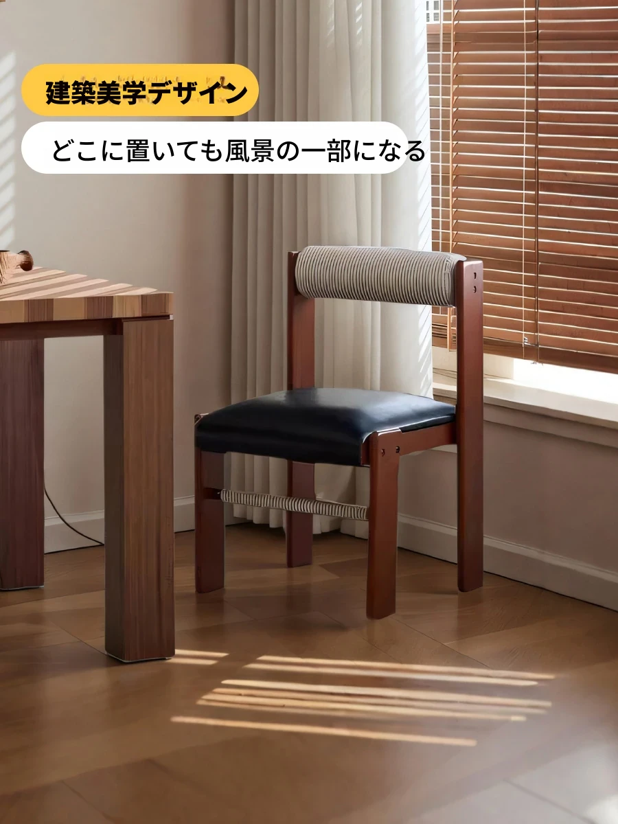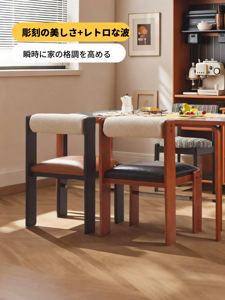 アイセンラント中古無垢材ダイニングチェア|家庭用デザイナーによるラグジュアリーなレトロ和風スタイル|背もたれ付きで快適さと高級感を提供!