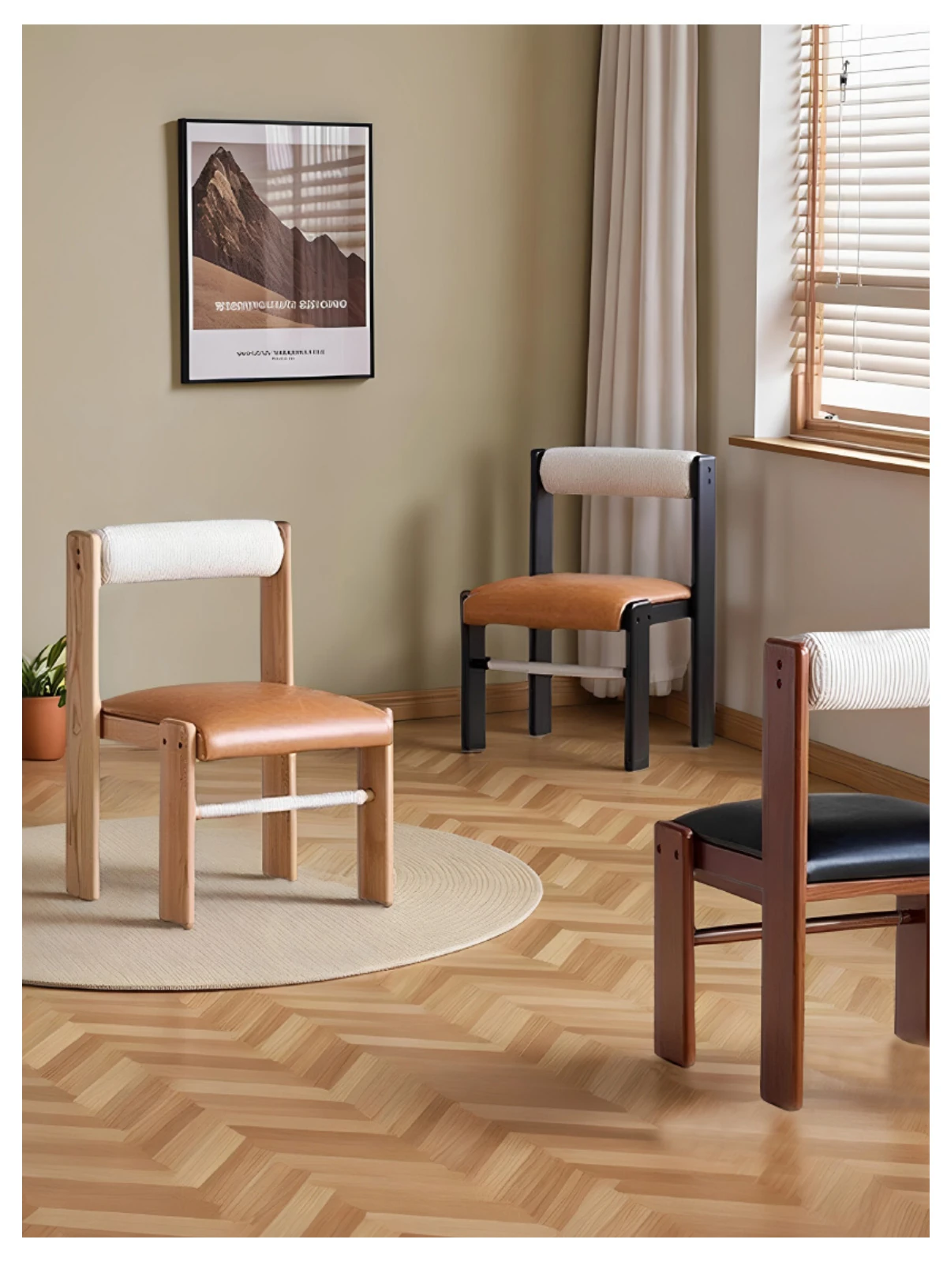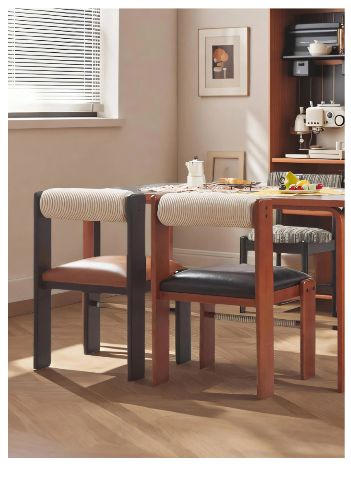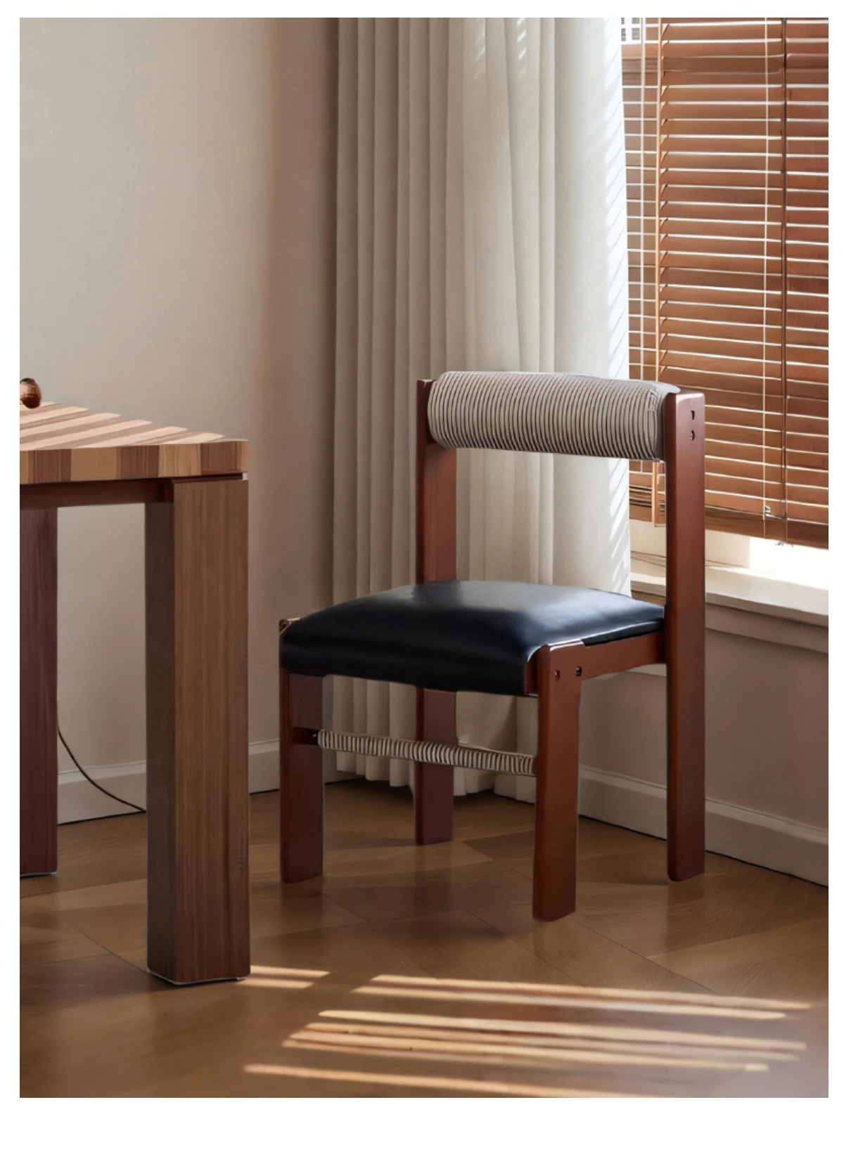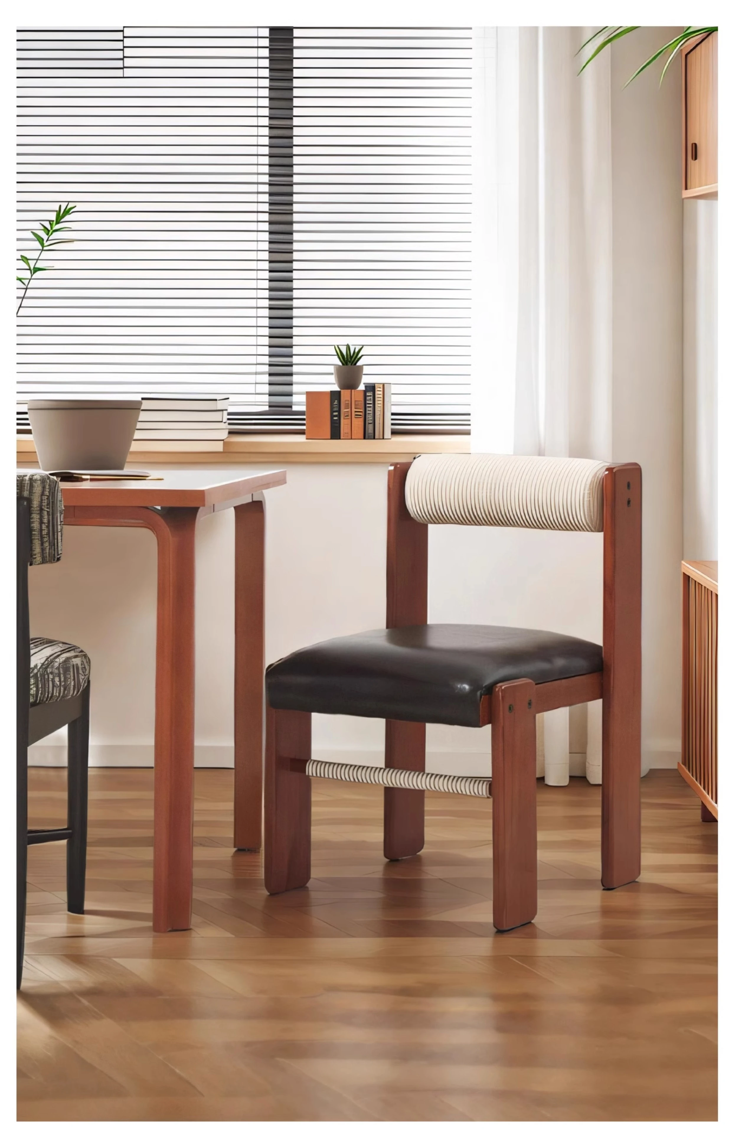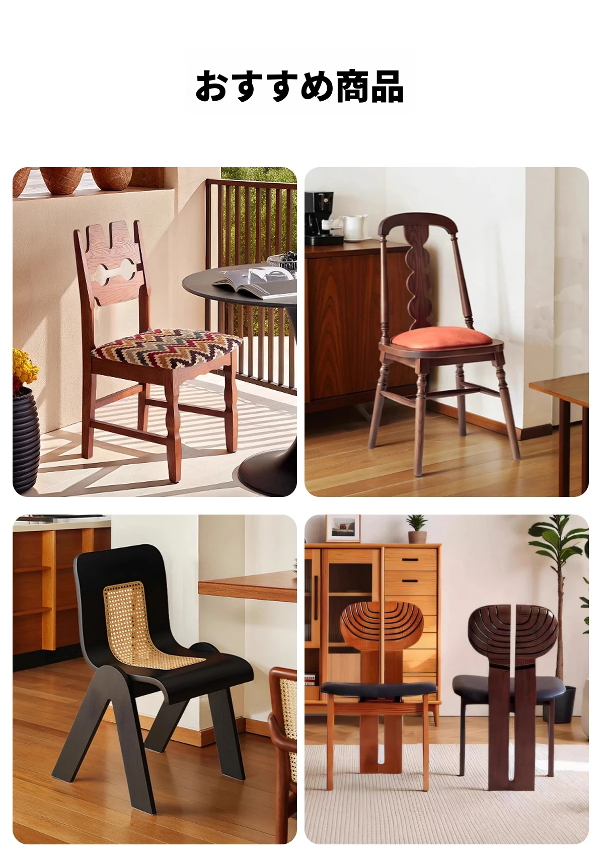 アイセンラント中古無垢材ダイニングチェア|家庭用デザイナーによるラグジュアリーなレトロ和風スタイル|背もたれ付きで快適さと高級感を提供!