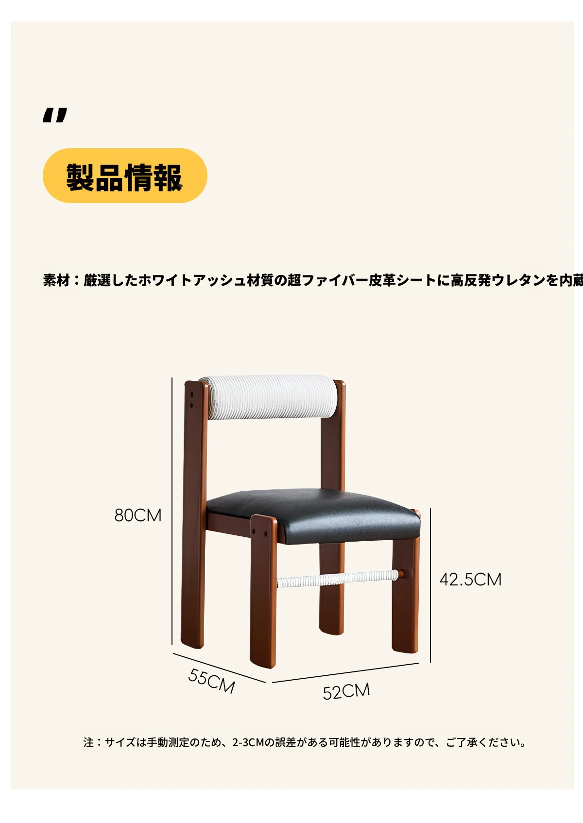 原木色【ホワイトアッシュ】+黒色【超合成皮革】