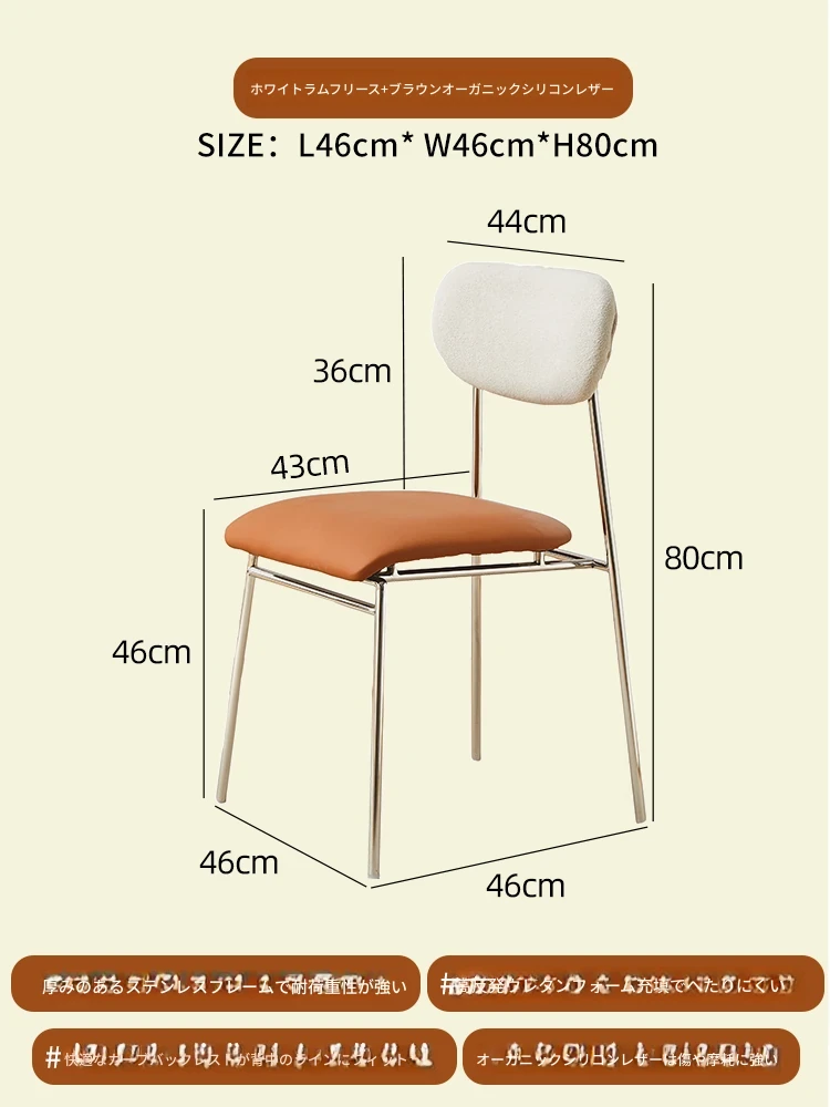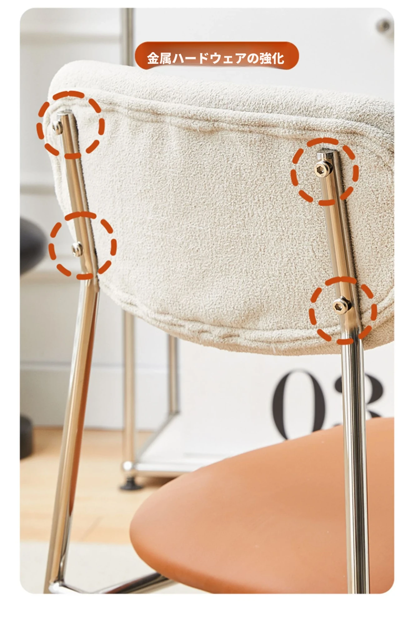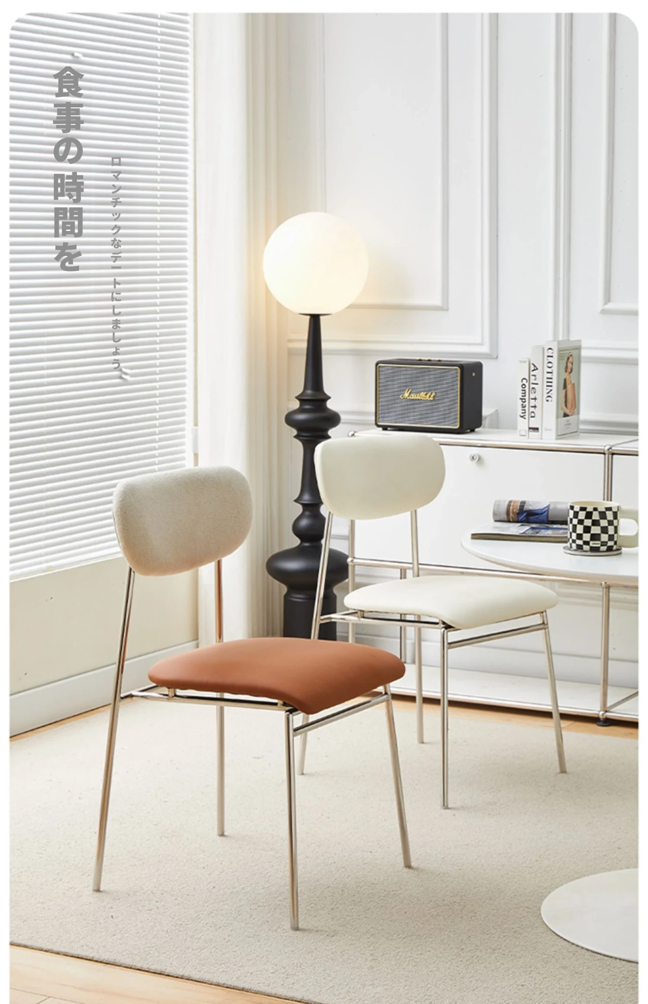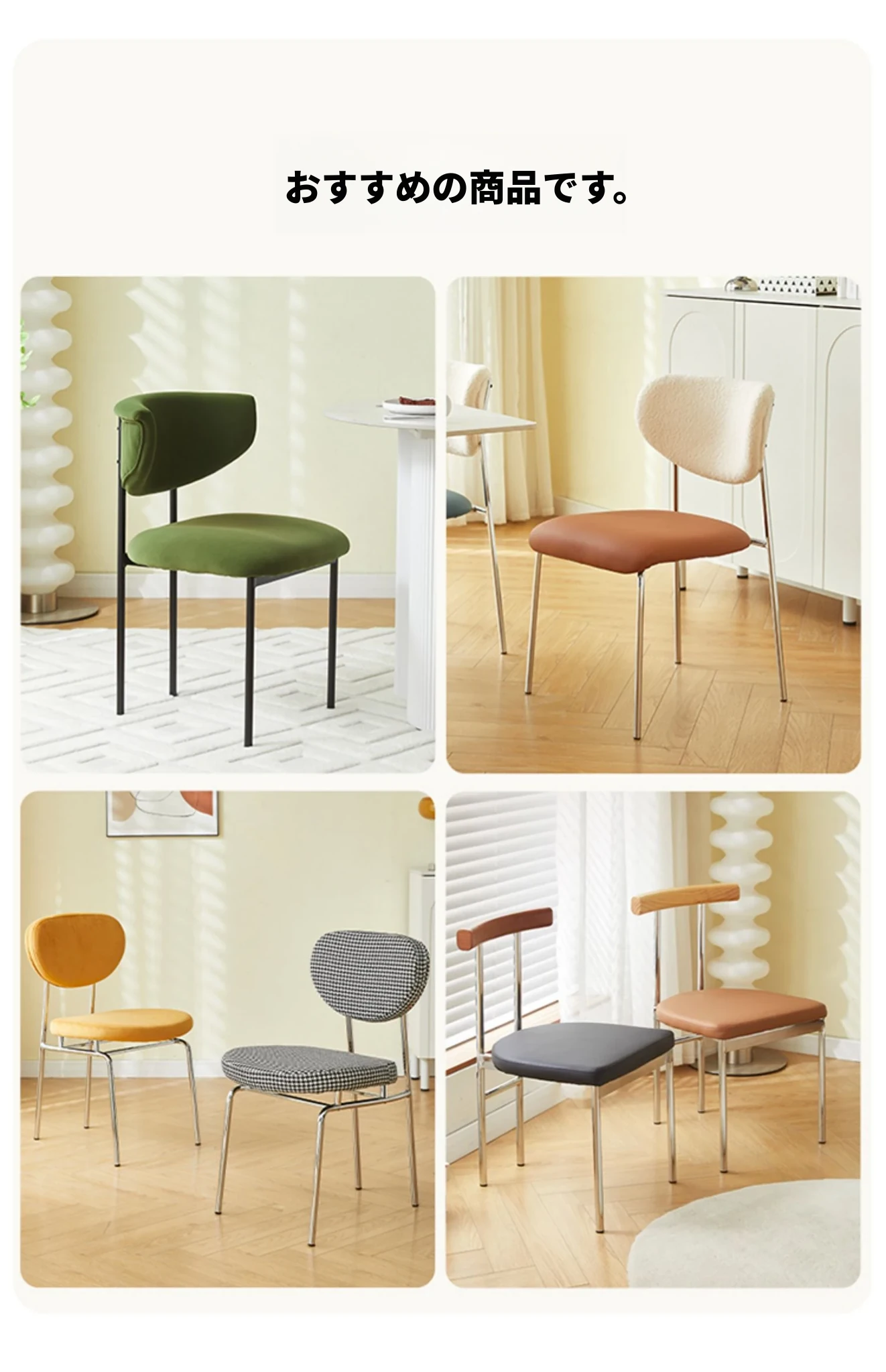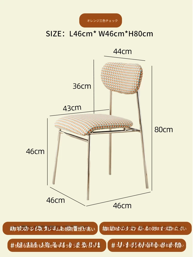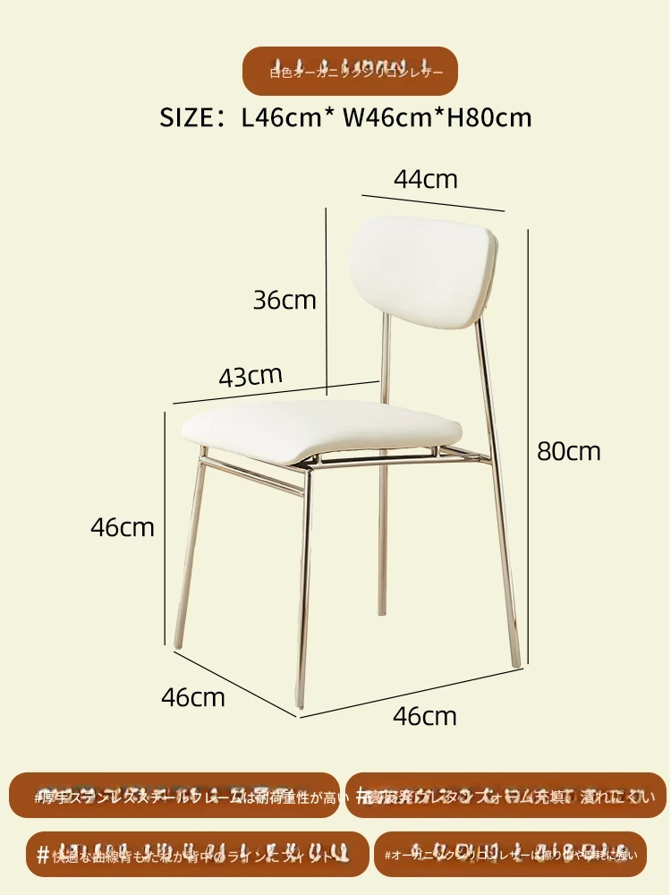エイサンラントのクリーム風ダイニングチェア|家庭用・レストラン向け・ヴィンテージスタイルの背もたれ付き|ステンレス製でカフェやティーショップにも最適!おしゃれで快適な食事空間を演出します。