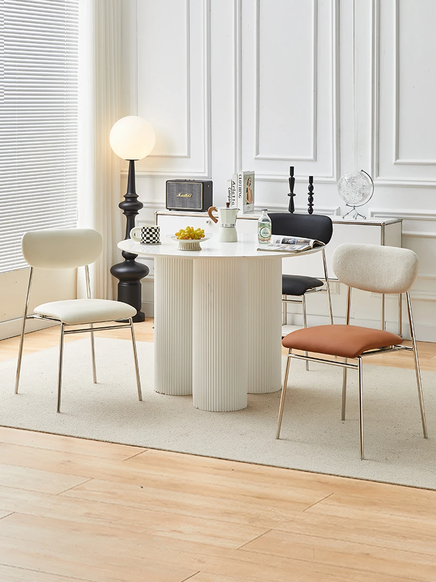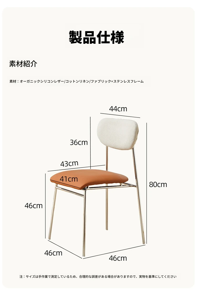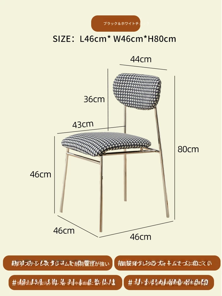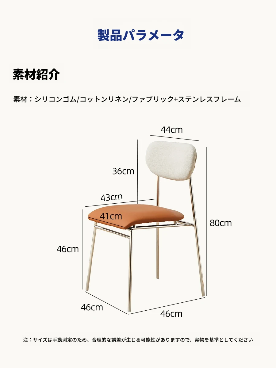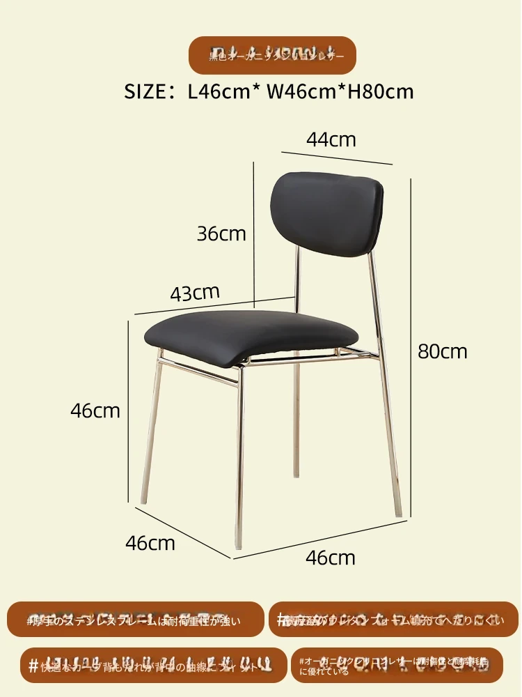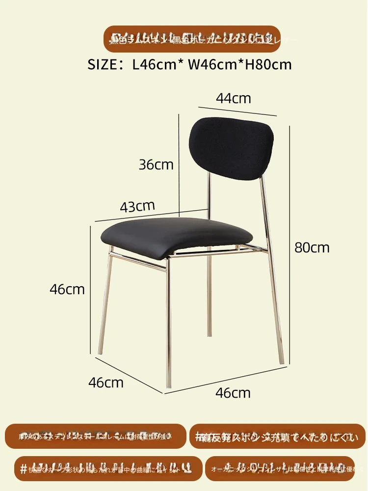 エイサンラントのクリーム風ダイニングチェア|家庭用・レストラン向け・ヴィンテージスタイルの背もたれ付き|ステンレス製でカフェやティーショップにも最適!おしゃれで快適な食事空間を演出します。