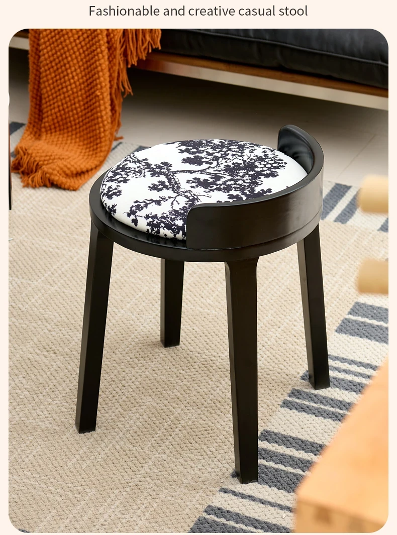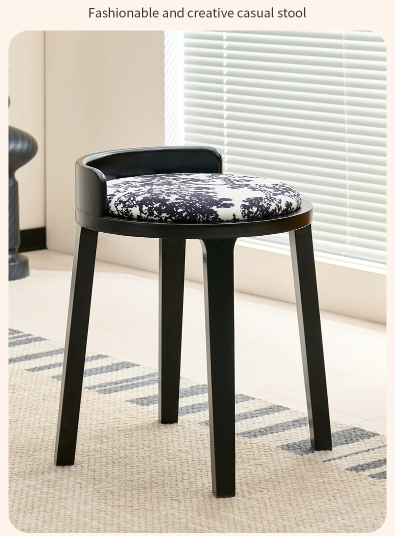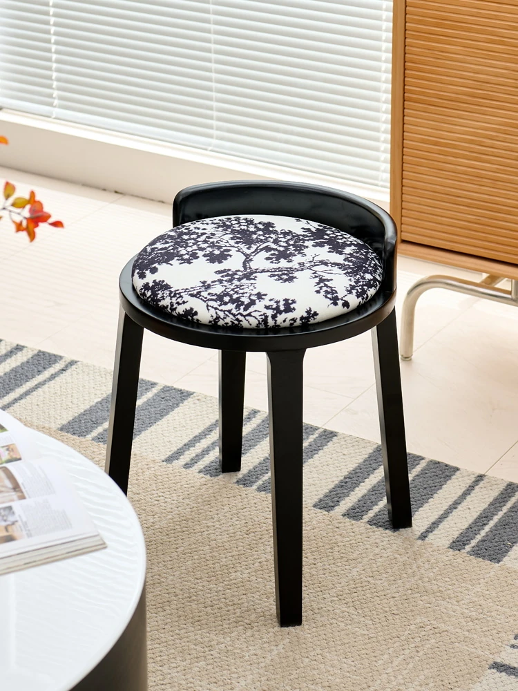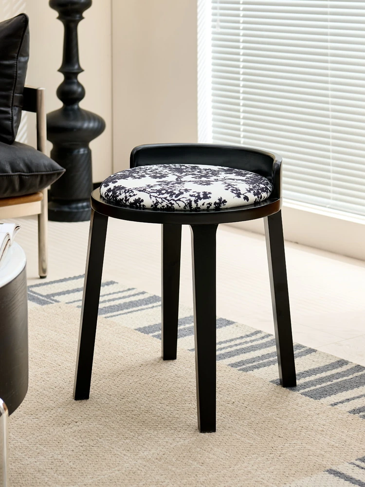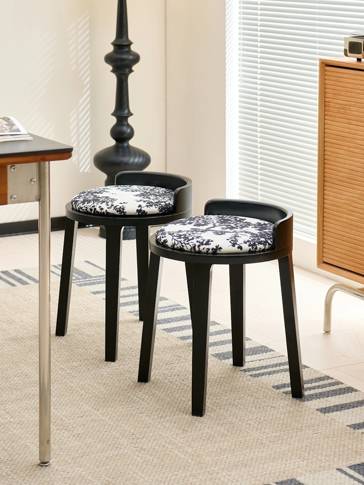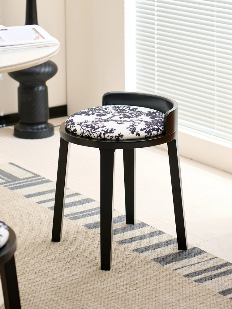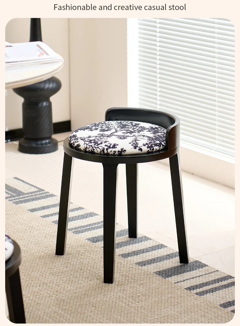 フレンチヴィンテージ化粧台スツール|高級感溢れる無垢材製ブラックスツール|中古の寝室にもぴったりなデザイン!おしゃれな化粧台と相性抜群のアイテムです。