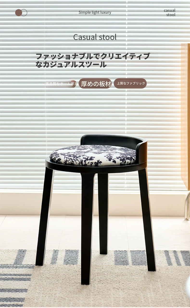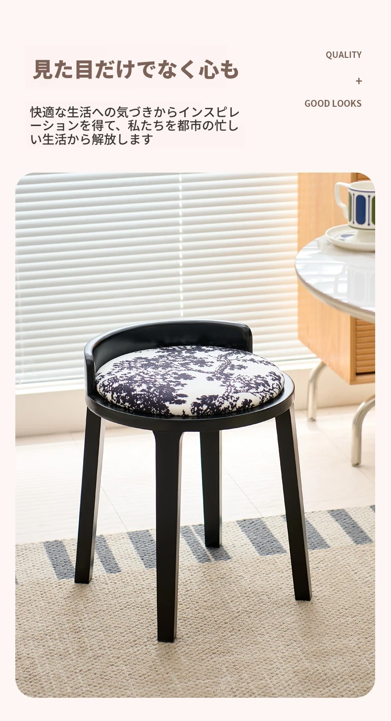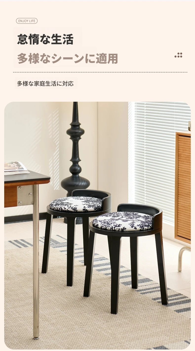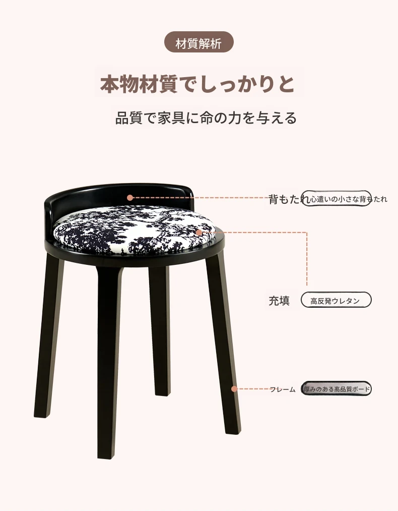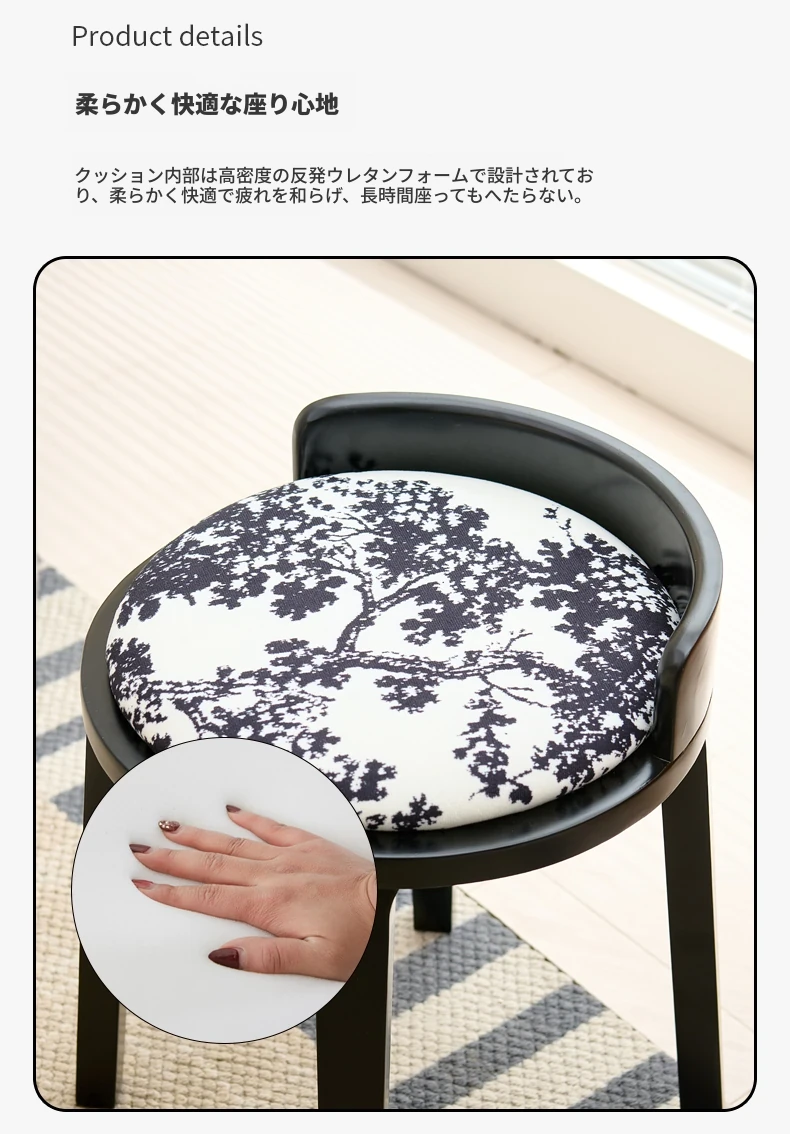 ドレッサースツール ブラック色+木目クッション