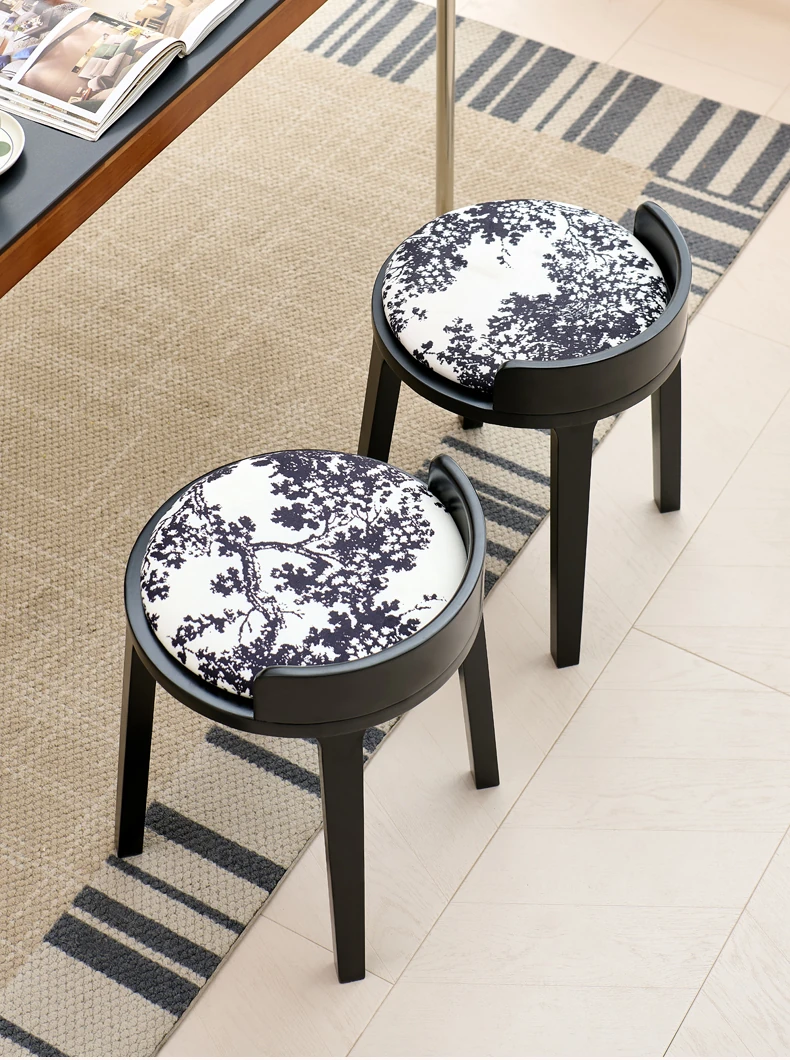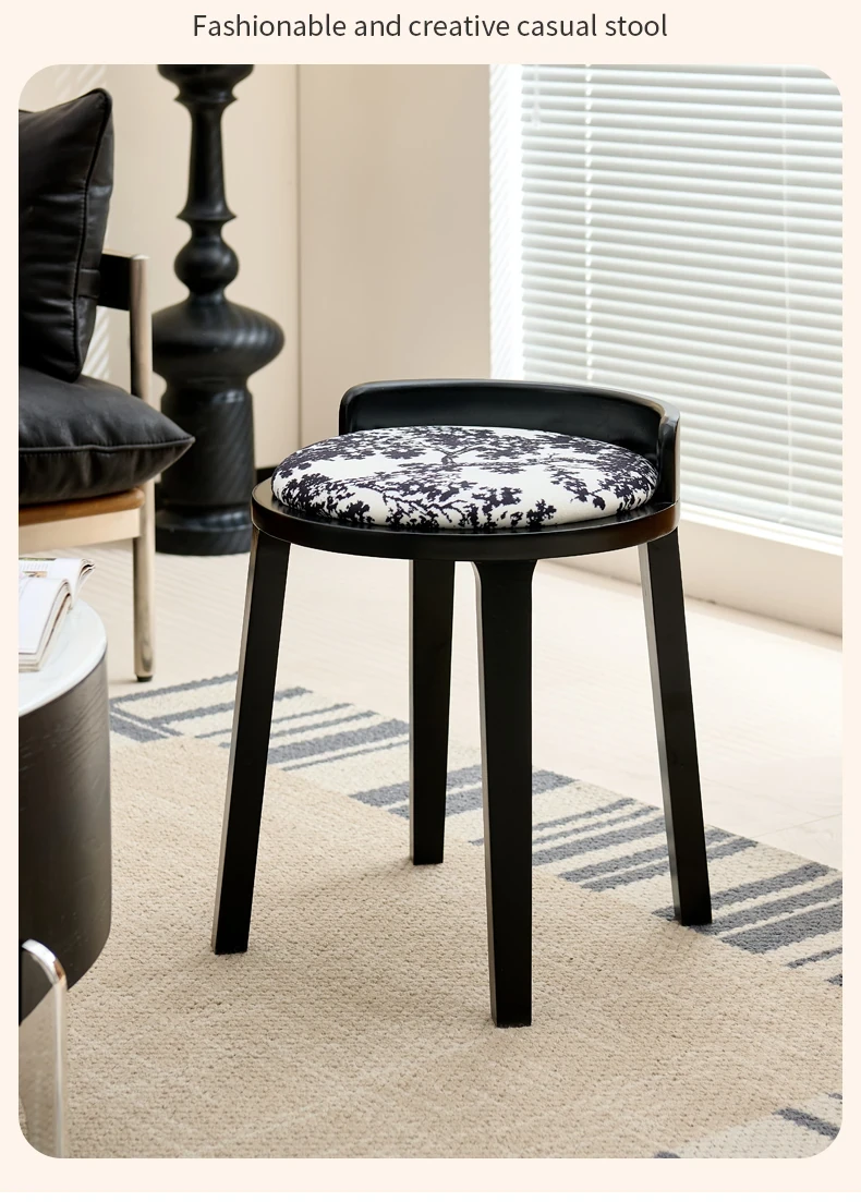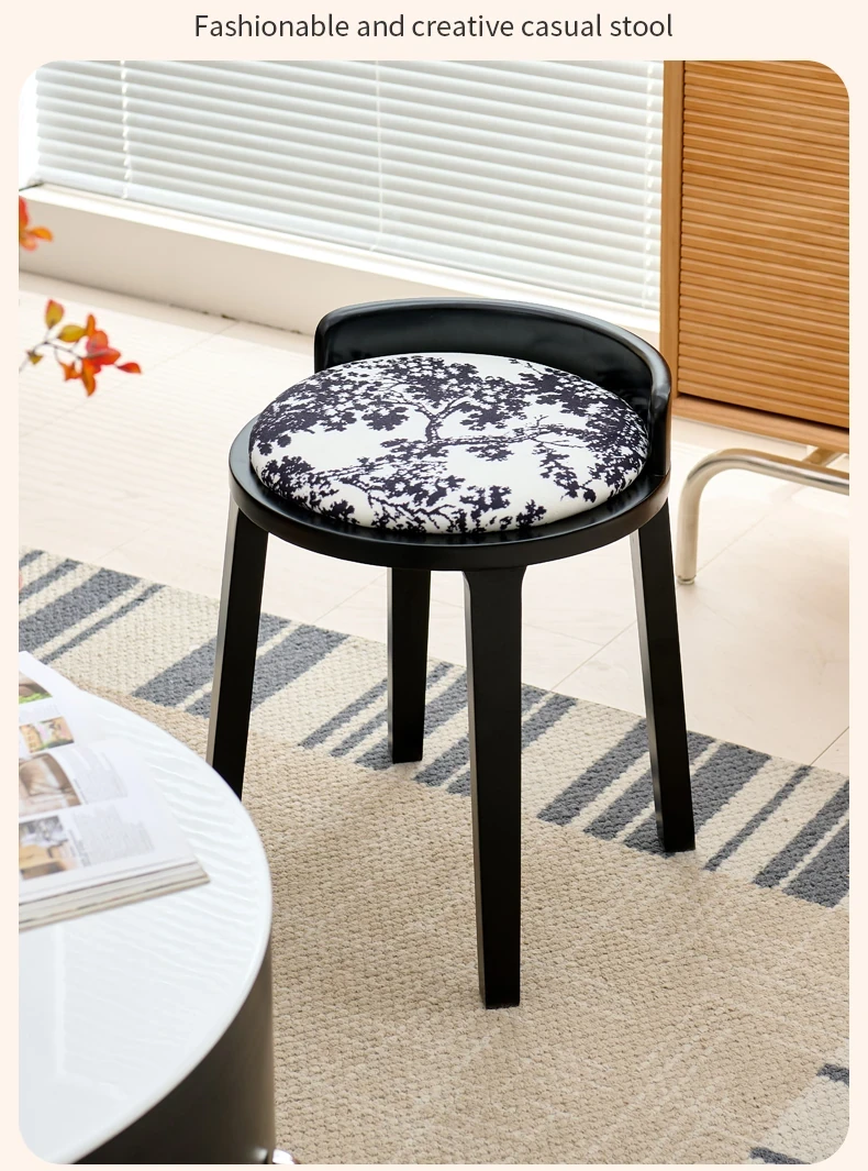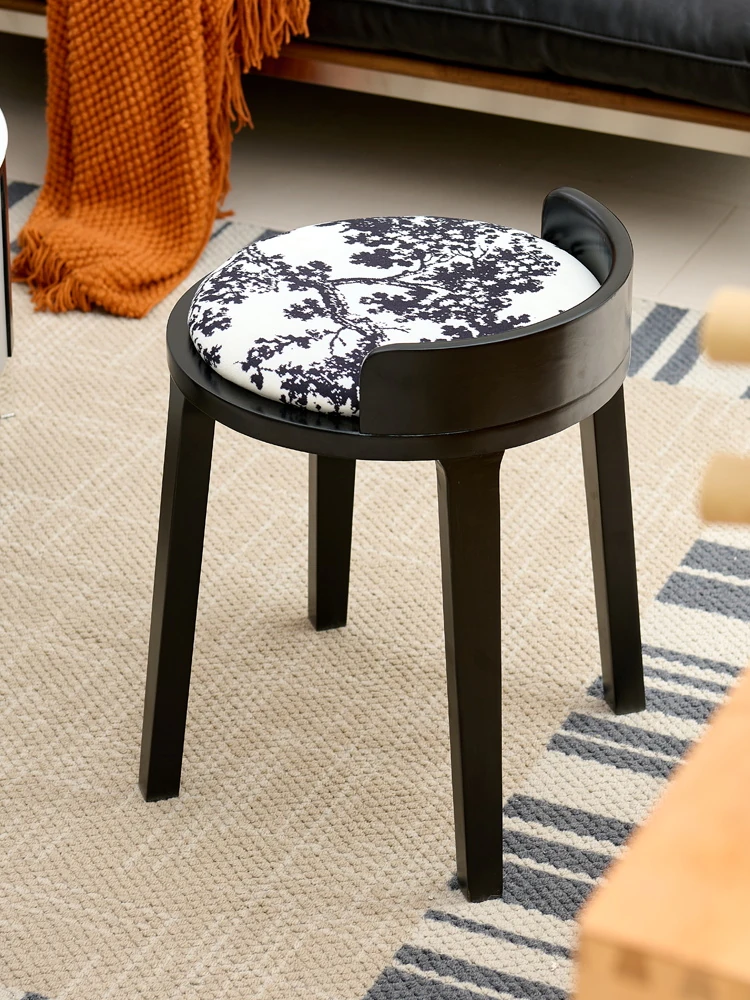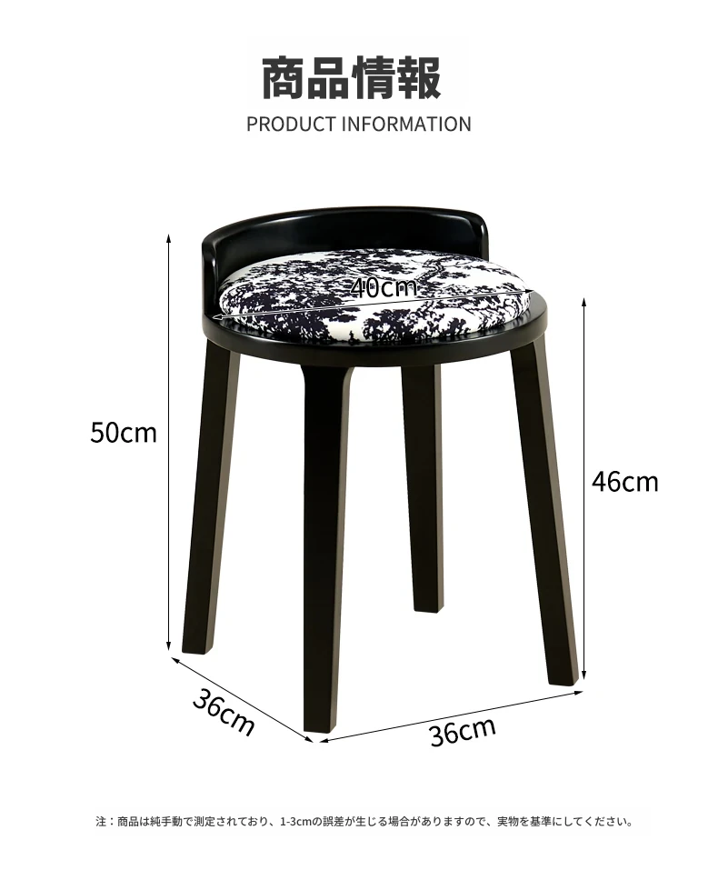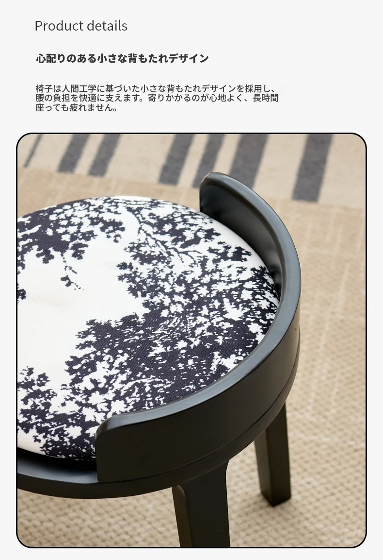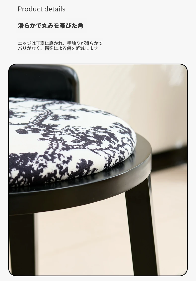 ドレッサースツール ブラック色+木目クッション