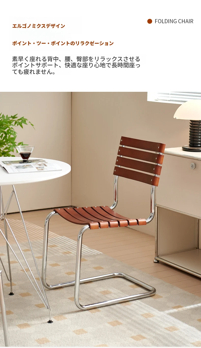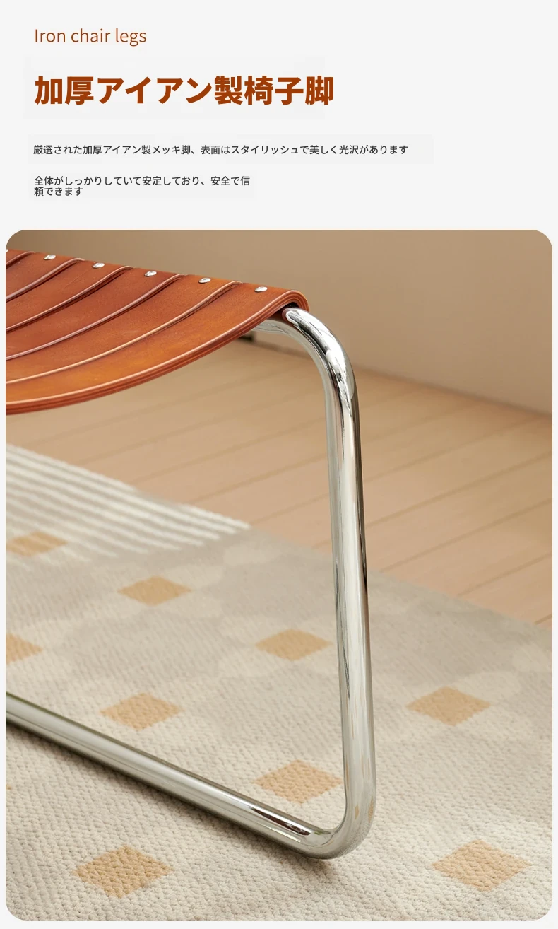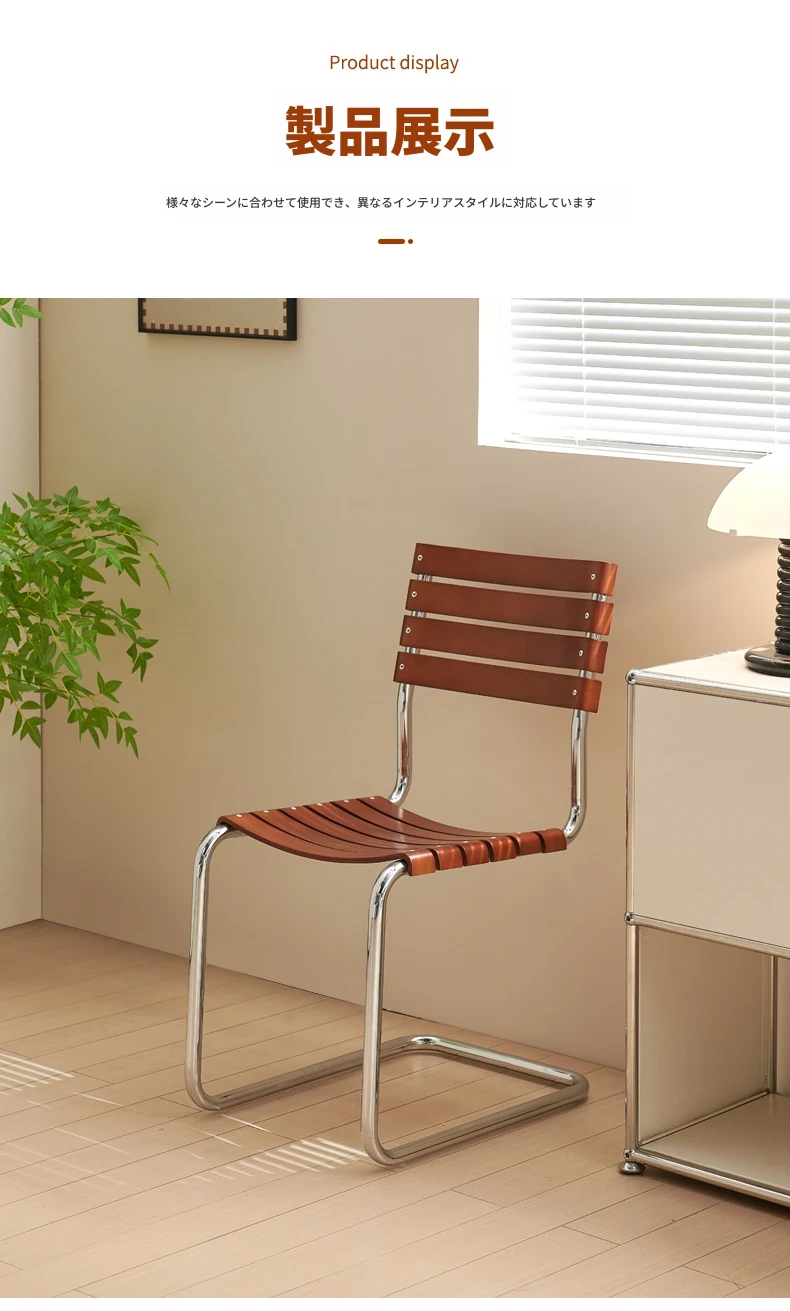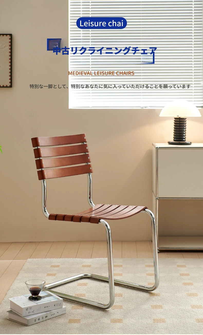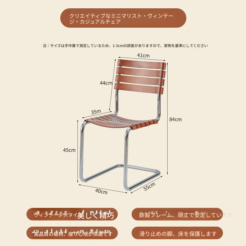 D40アームチェアー - ステンレス製アーム付きダイニングチェア、古典的なデザインのレザーチェア。シンプルでモダン、リラックスできる背もたれ付きで、食事やお茶の時間を特別に演出します。