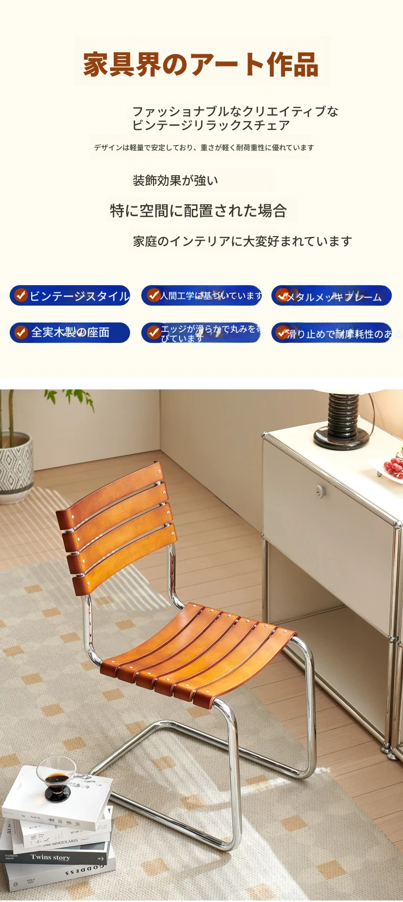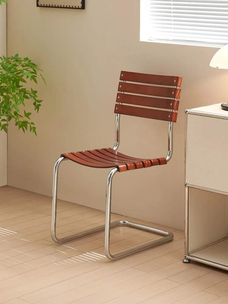 中古のシンプルでレトロな浮遊感のある無垢材ダイニングチェア。家庭用デスクやリラックスしたオフィスシーンにぴったりな、クリエイティブなバウハウススタイルの椅子です。