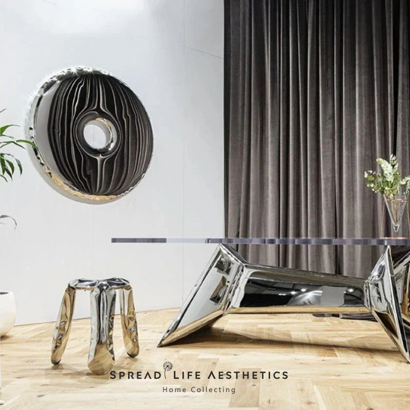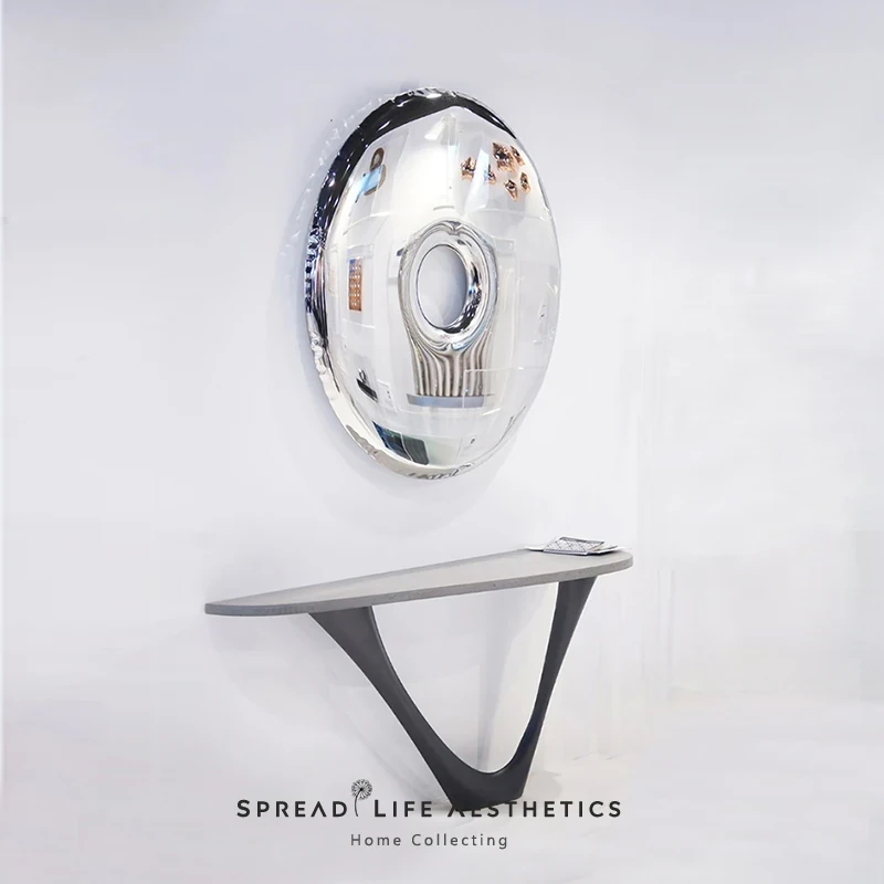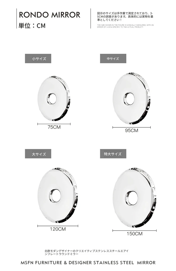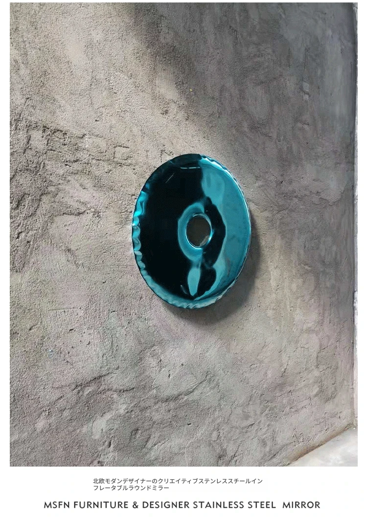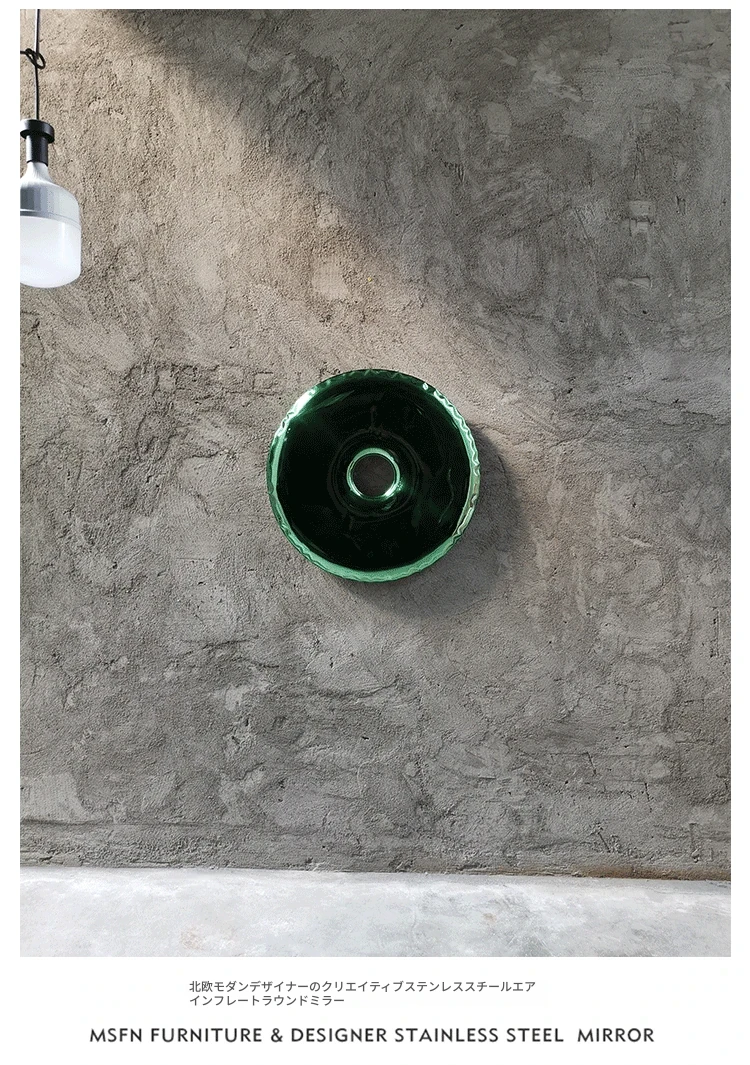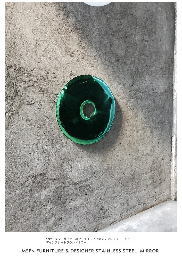 インスタ映えするモダンデザインのステンレス製アートミラー!おしゃれなラウンド型掛け式全身鏡で、あなたの部屋をスタイリッシュに演出します。大きな鏡でコーディネートもバッチリ!
