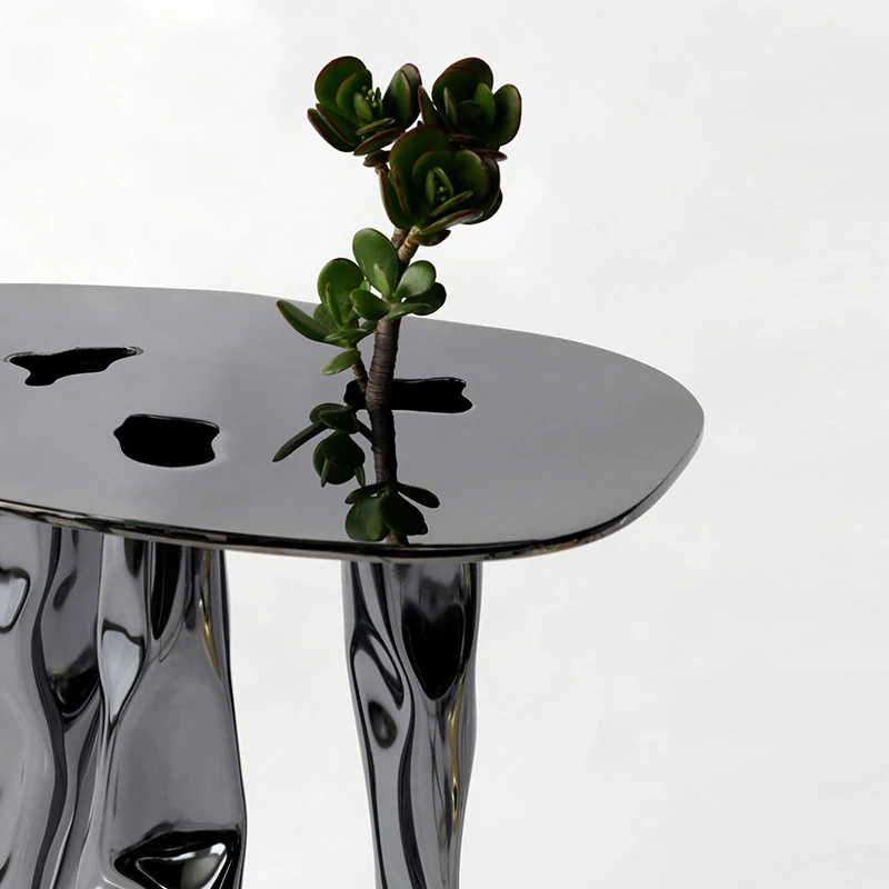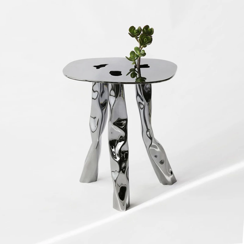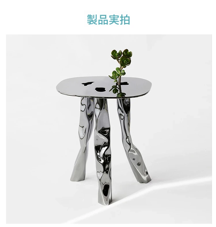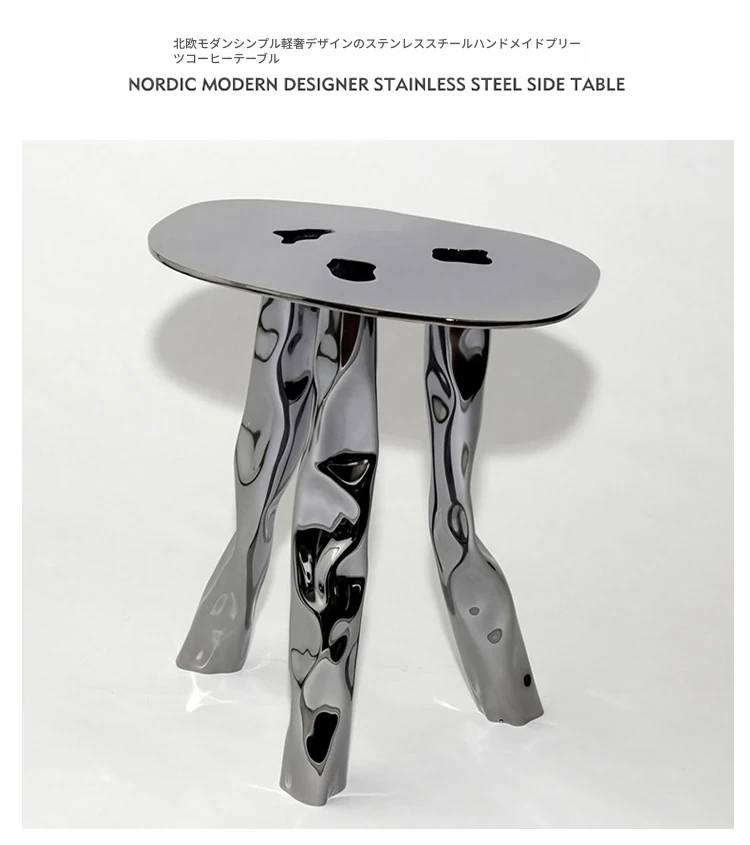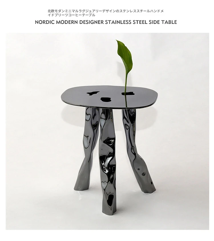 インスタで大人気!モダンでラグジュアリーなデザインのバロックスタイル手作りステンレススチール折りたたみコーヒーテーブル - リビングのソファサイドにぴったり!