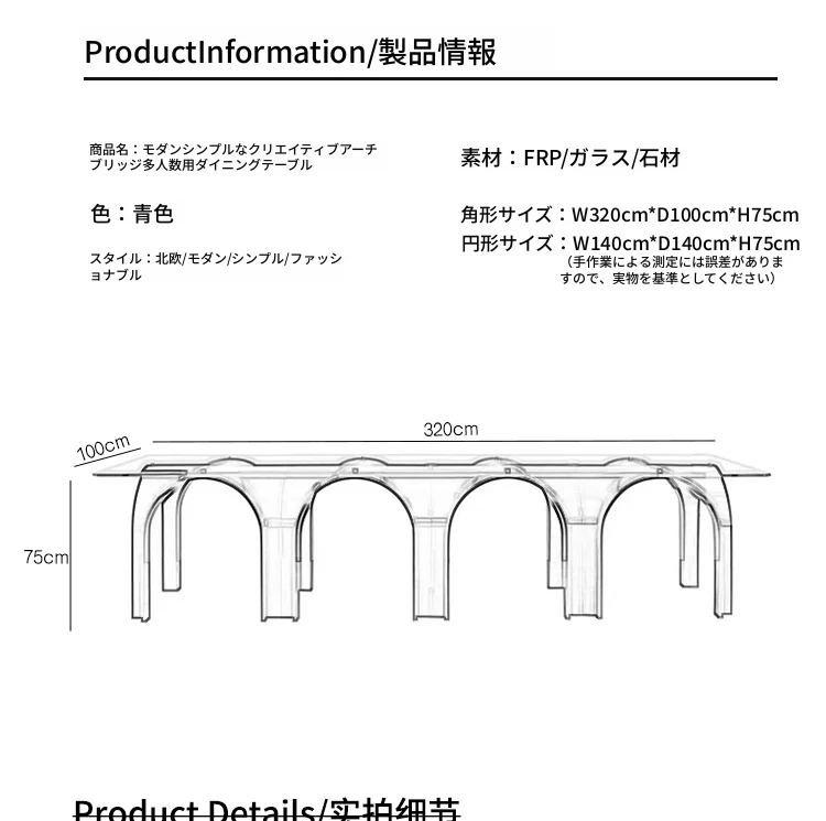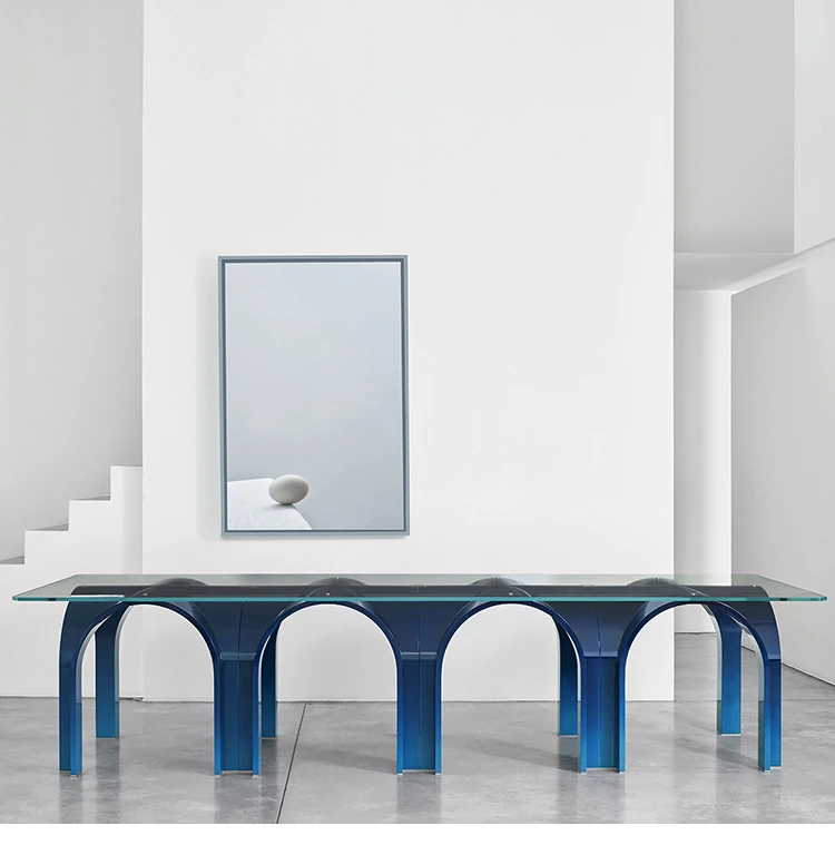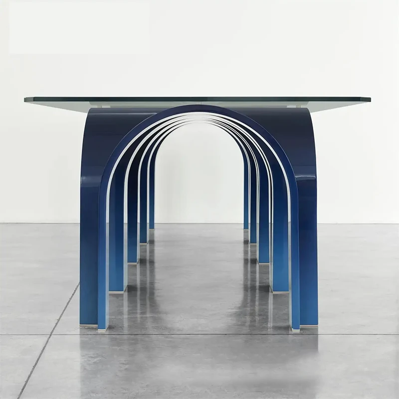 ミニマリストダイニングテーブル|現代的でシンプルなデザインのクリエイティブアーチテーブル|ガラス繊維製|多人数対応|会議やモデルルームに最適なロングテーブル
